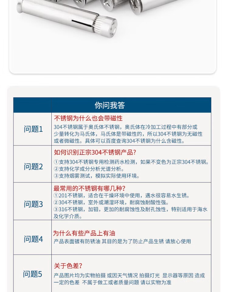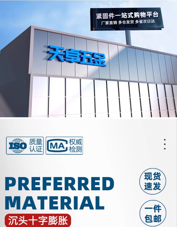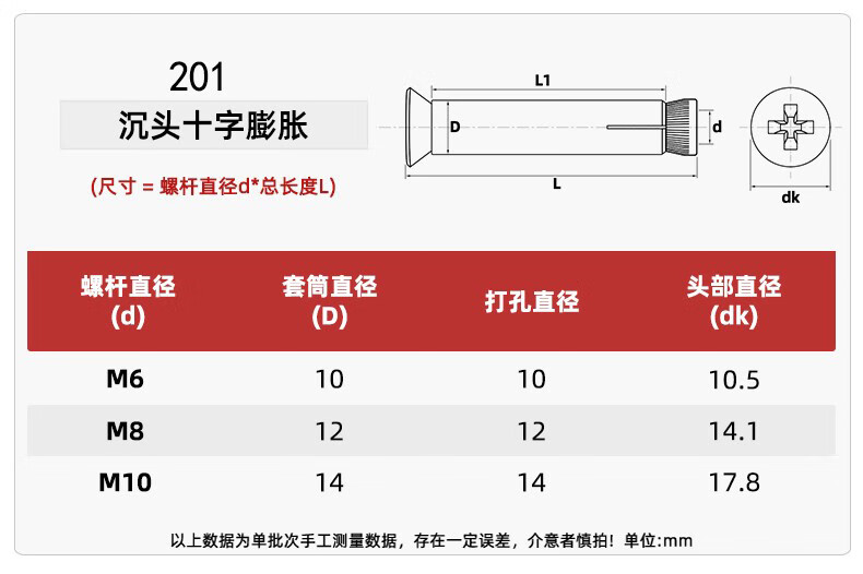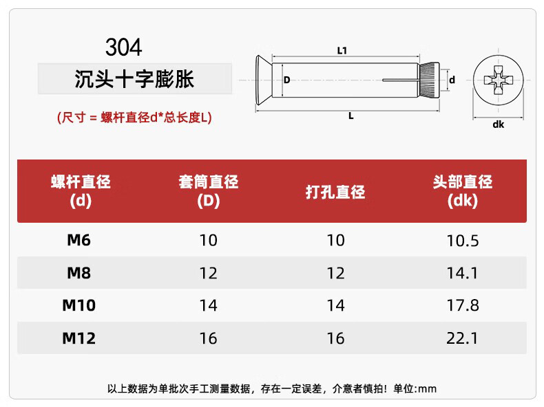 Tianzhuo Hardware National Standard 304/201 Stainless Steel Cross Countersunk Head Internal Expansion Screw Flat Head Bolt Pull Implosion MM6M8M10M12 304 National Standard 6*80 1 piece