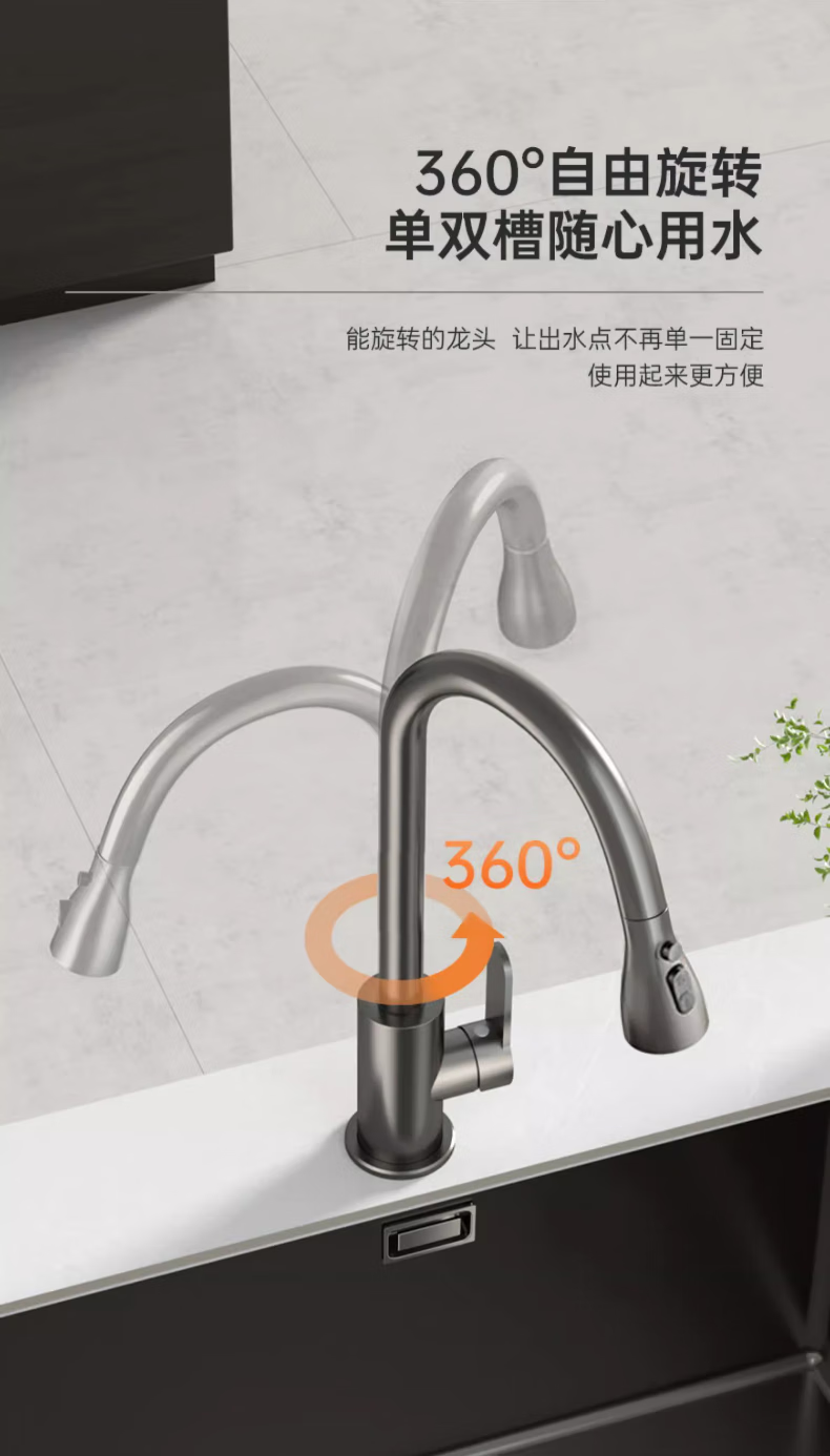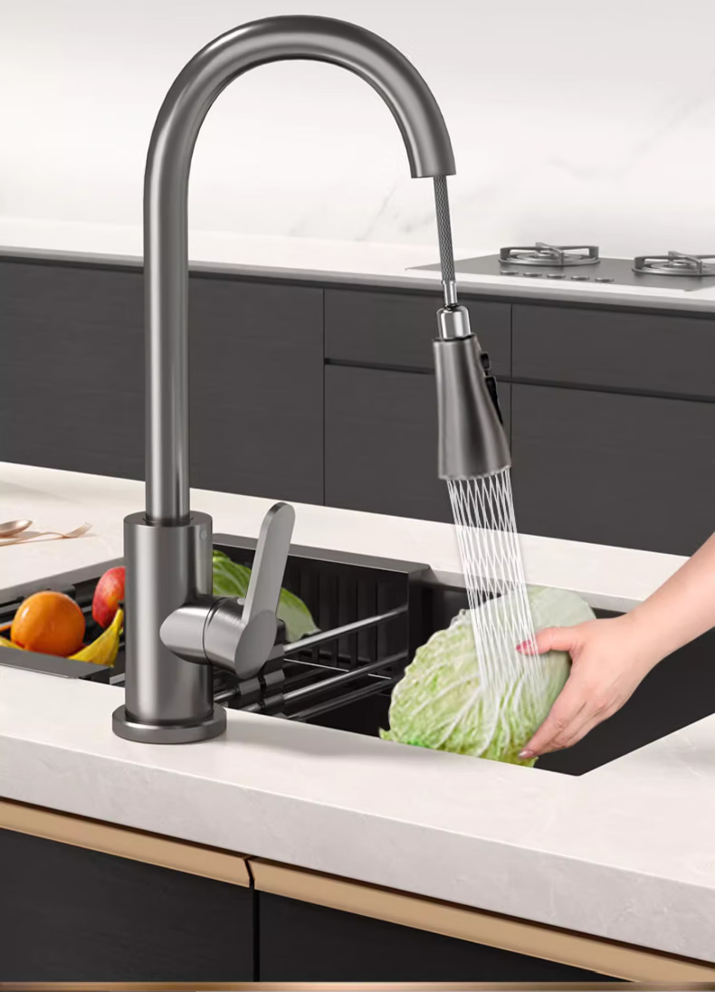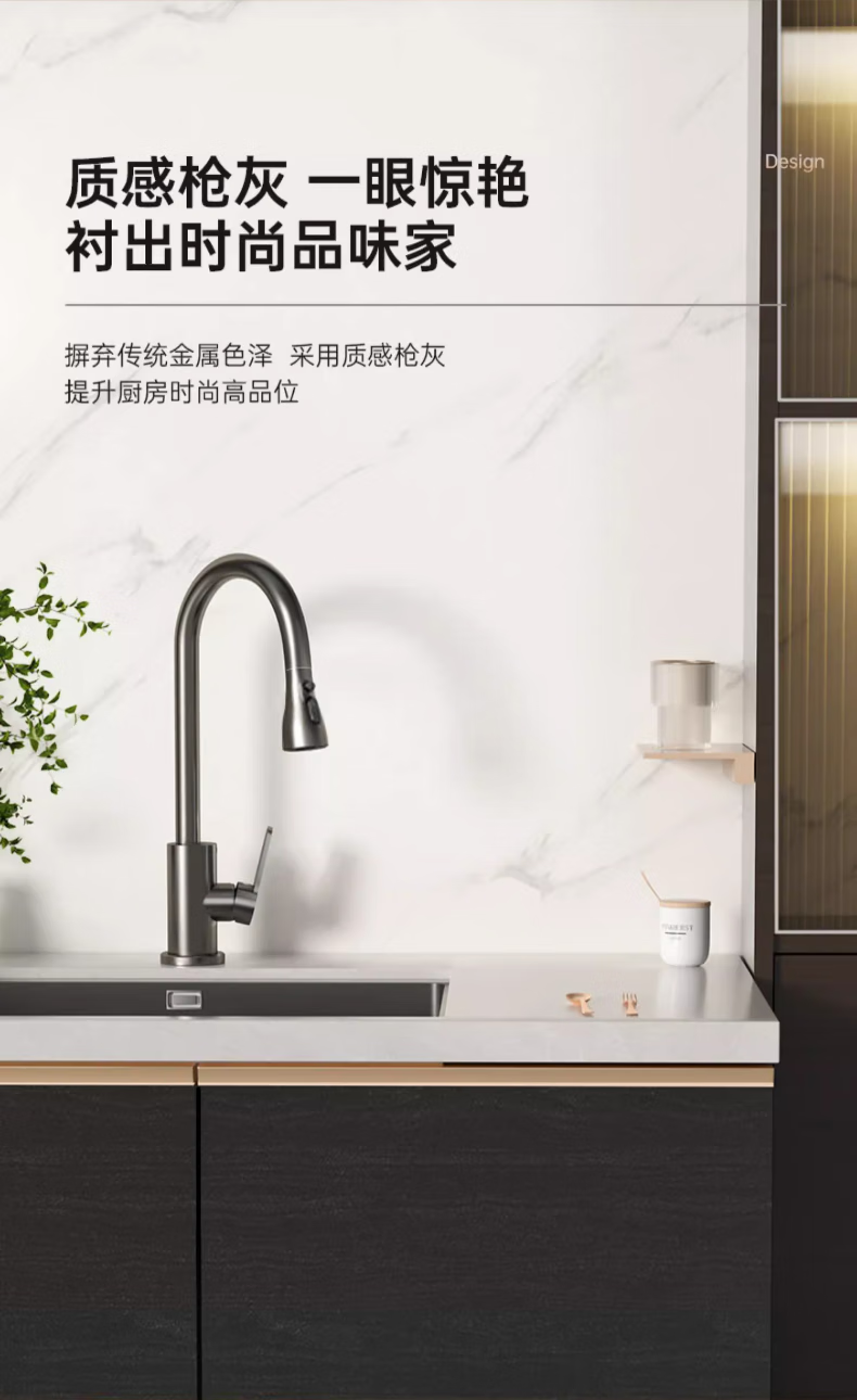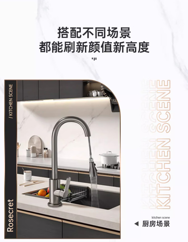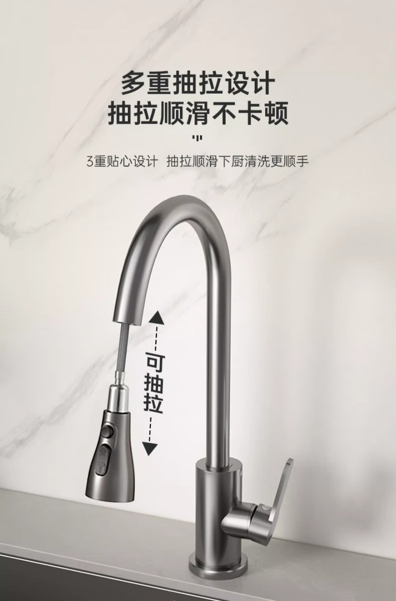Rosecret Germany kitchen faucet pull-out all-copper main body sink sink dishwashing pool hot and cold faucet three-speed balcony laundry pool faucet gun gray universal kitchen sink dual temperature pressurized anti-splash water丨80CM water inlet pipe*2