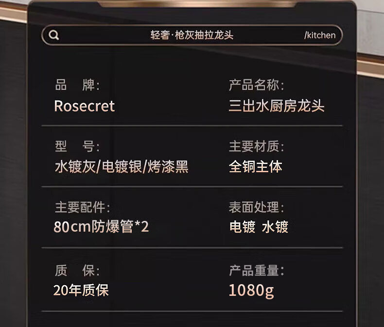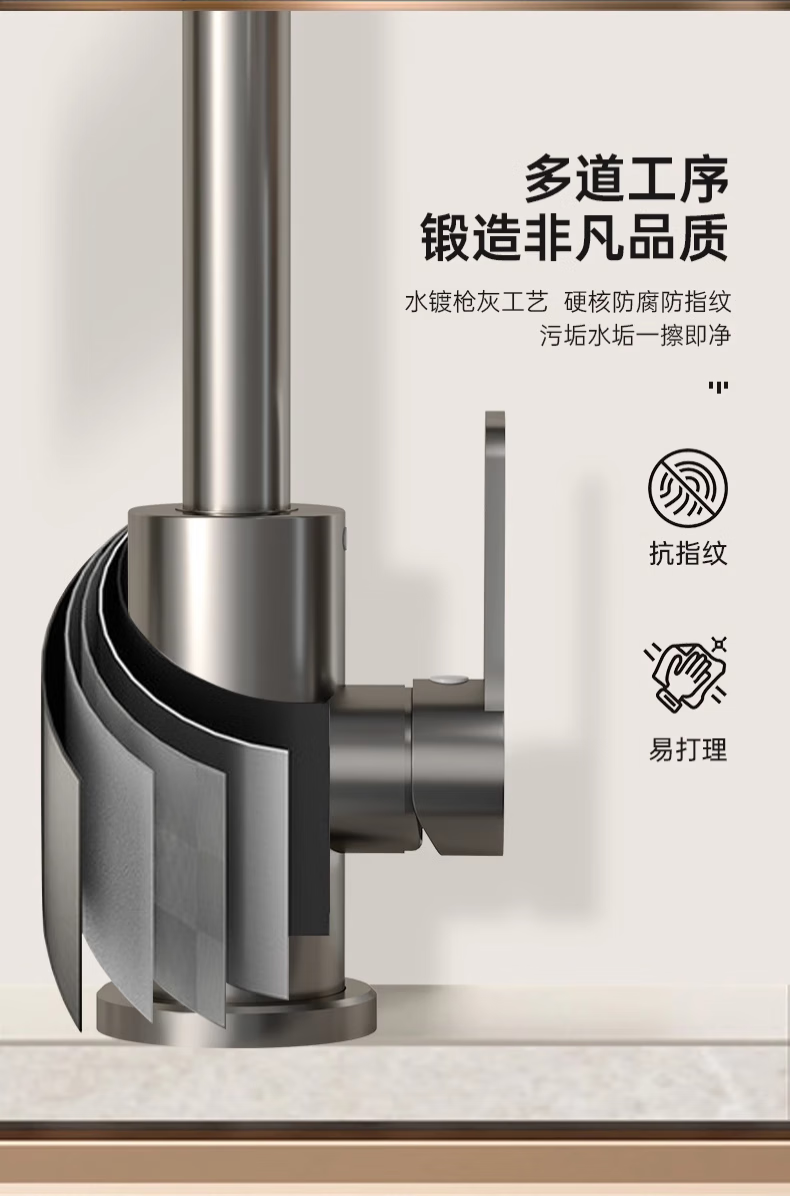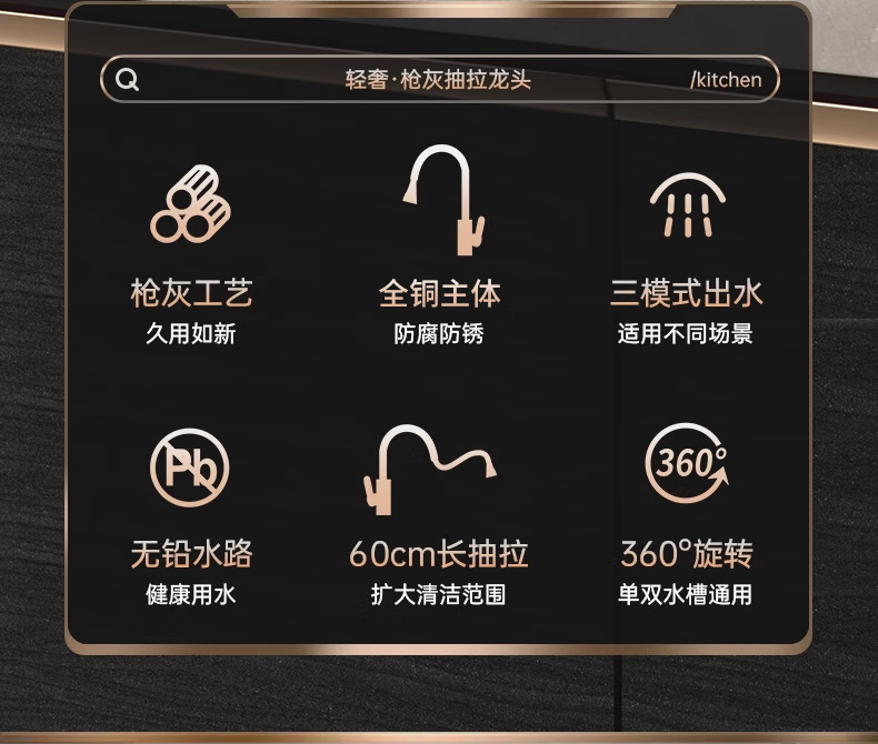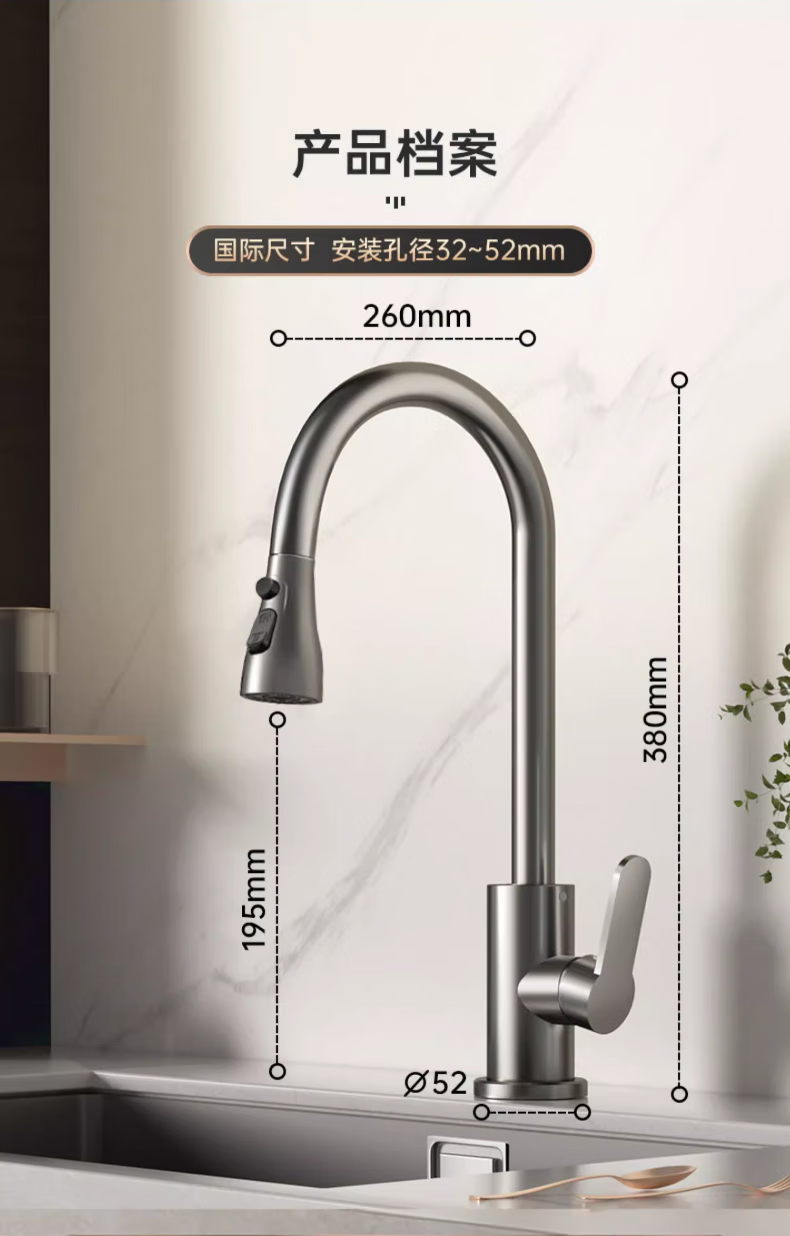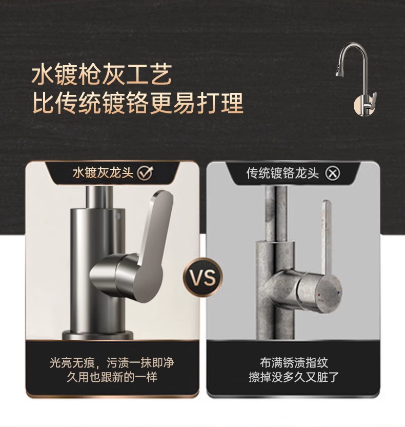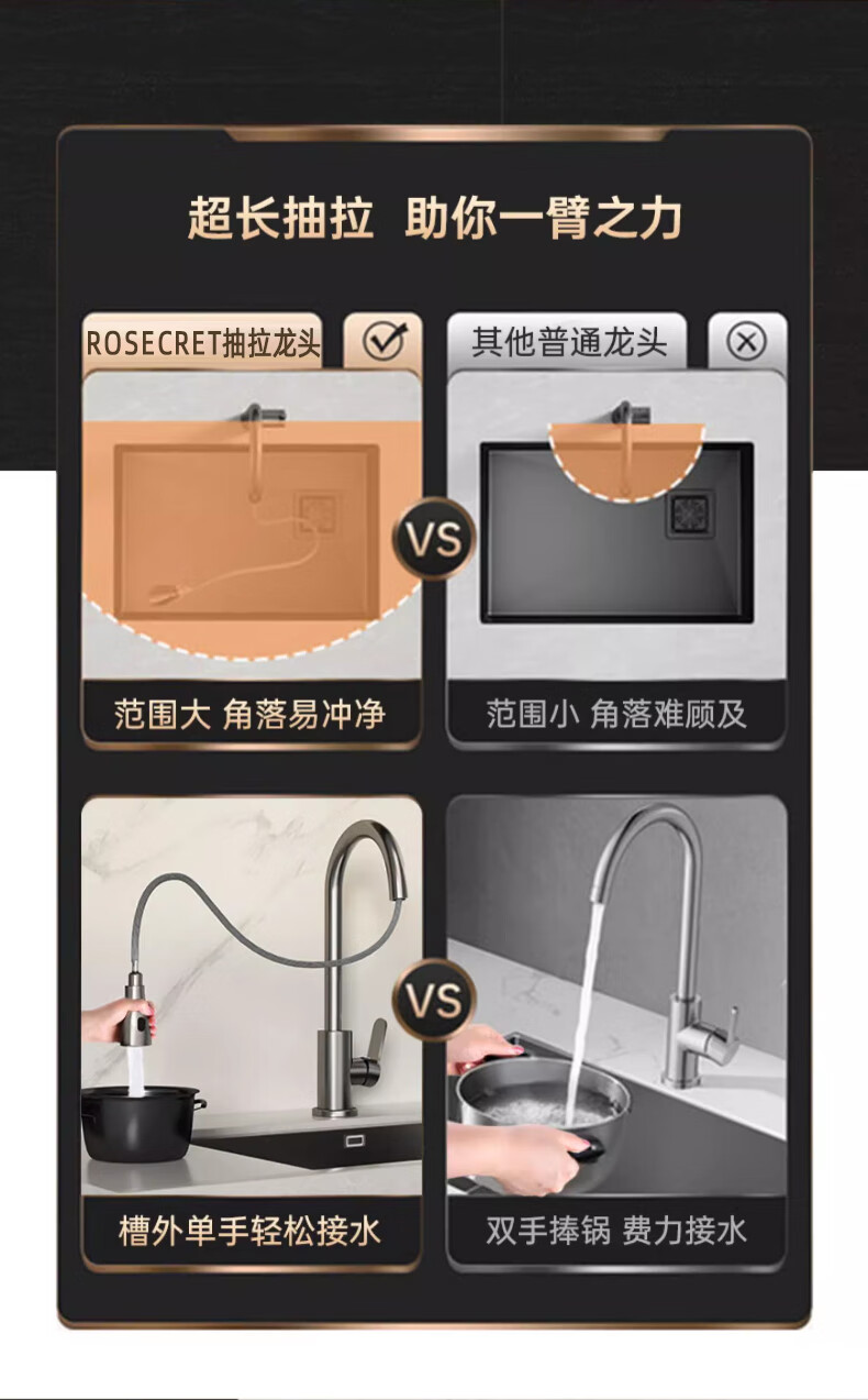 Rosecret Germany kitchen faucet pull-out all-copper main body sink sink dishwashing pool hot and cold faucet three-speed balcony laundry pool faucet gun gray universal kitchen sink dual temperature pressurized anti-splash water丨80CM water inlet pipe*2
