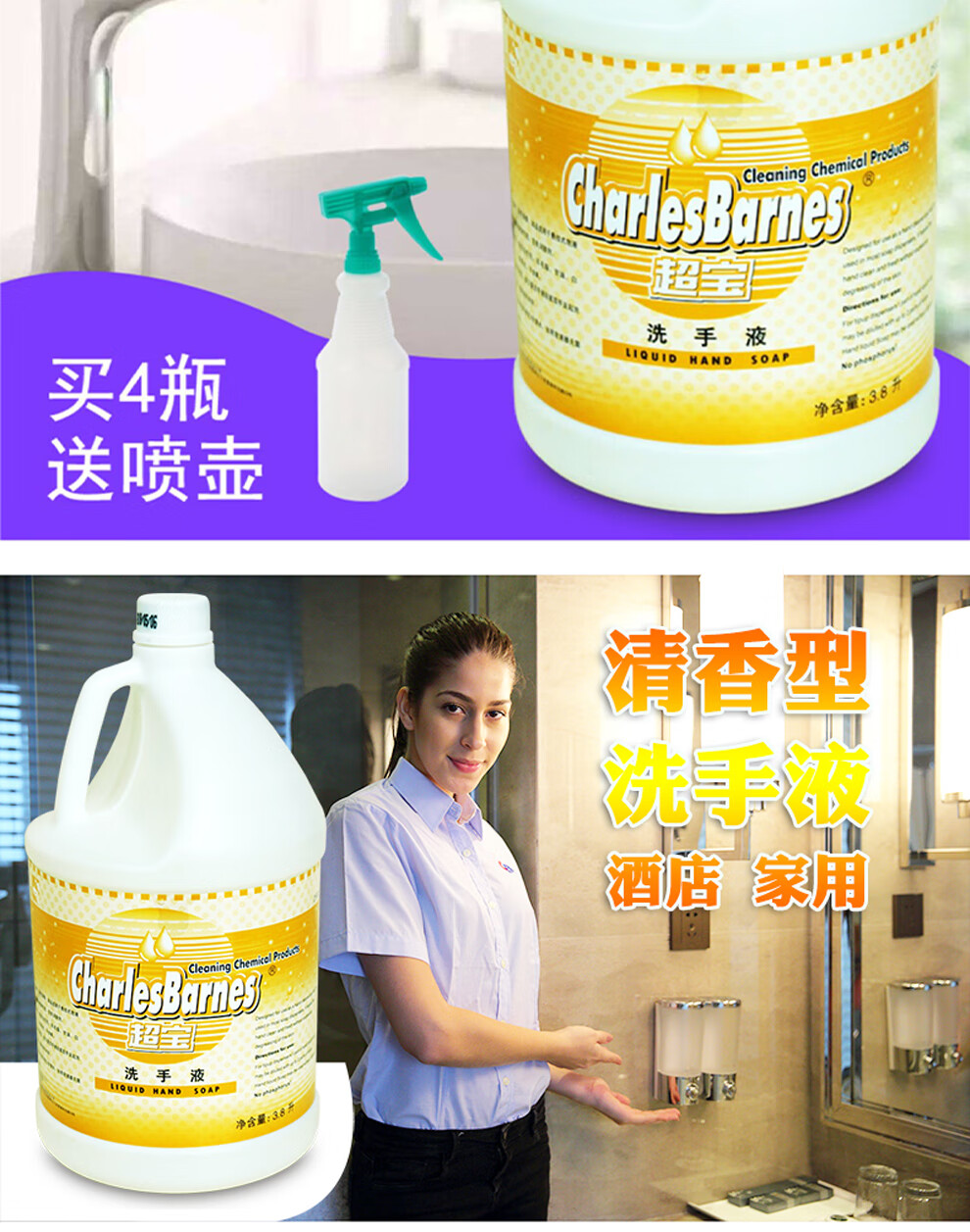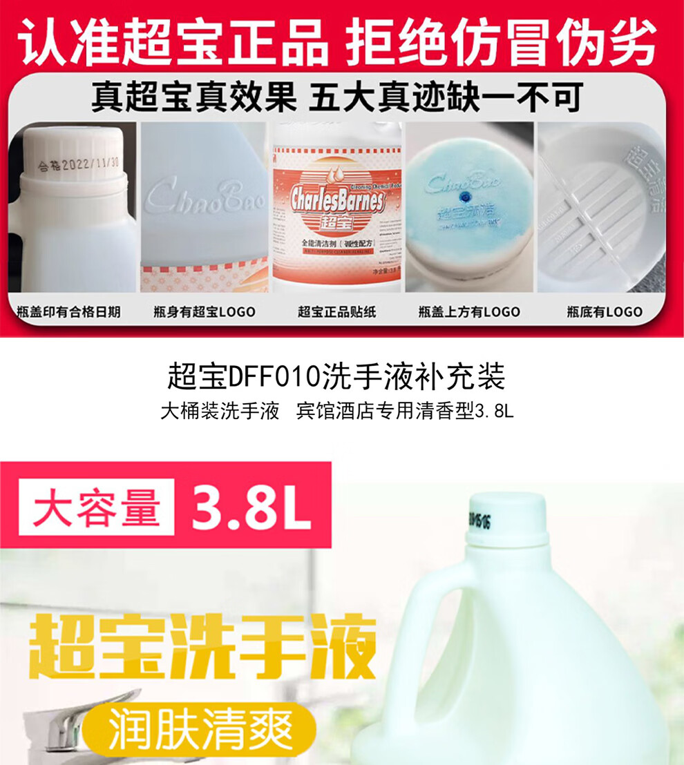 Chaobao DFF010 hand sanitizer 3.8 liter large bottle soap dispenser filling hotel large bucket hand washing detergent fragrance type Chaobao red hand sanitizer / box of 4 bottles (free tools)
