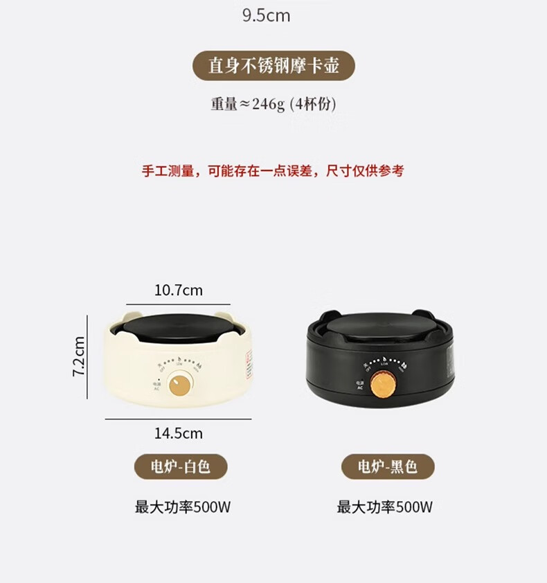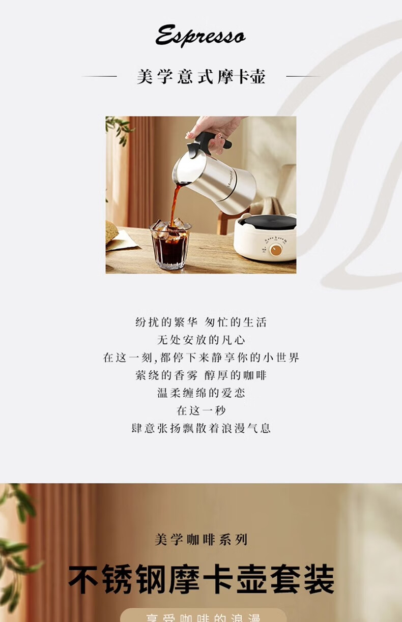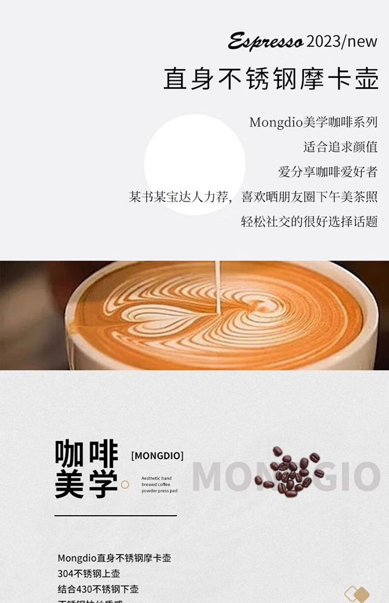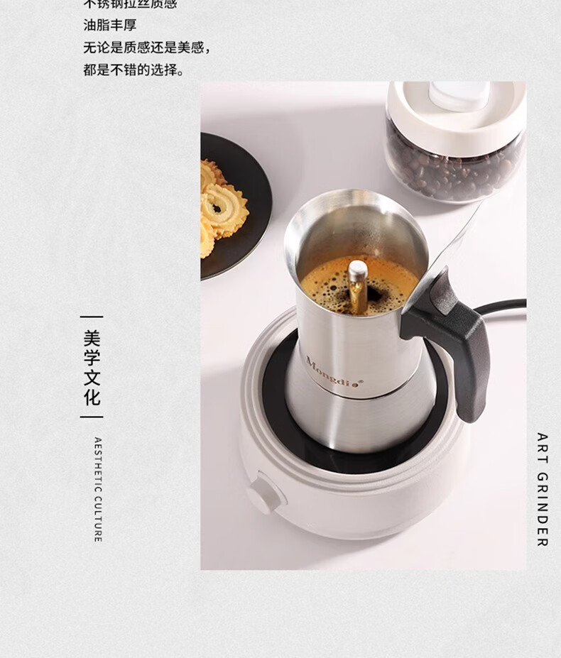 MONDINO stainless steel Moka pot espresso machine household small coffee brewing espresso extraction pot hand-brewed coffee set 2-piece set stainless steel Moka pot 100ml
