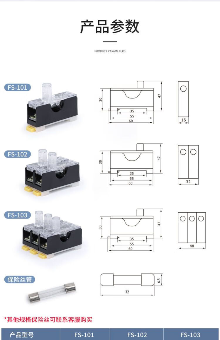 Fuse holder single double triple fuse box with light fuse holder FS-101 rail-type 6*30 fuse box 6X30 FS101_default equipped with 10A fuse
