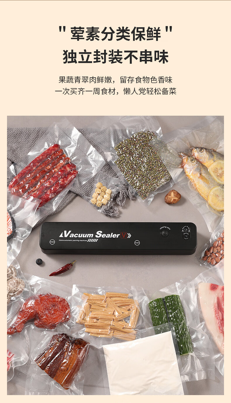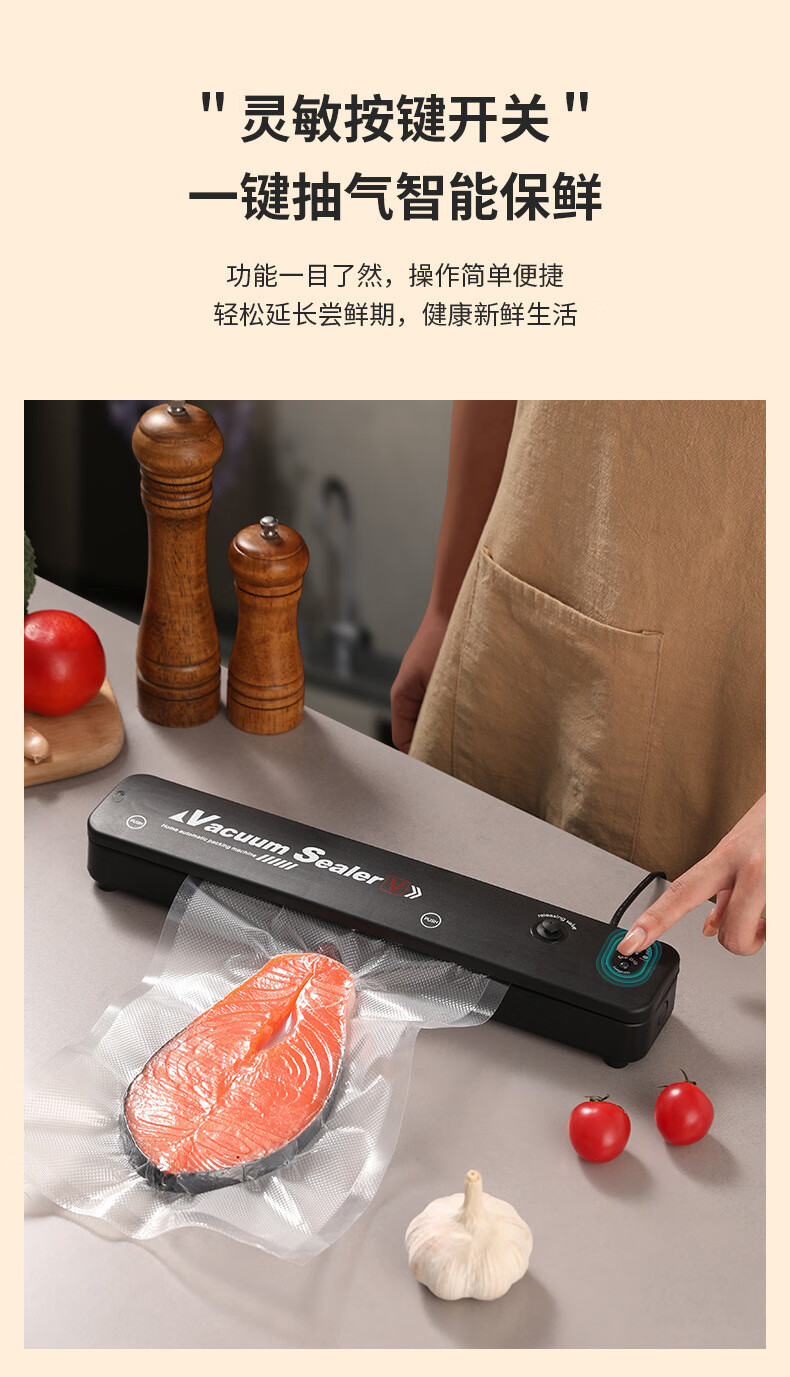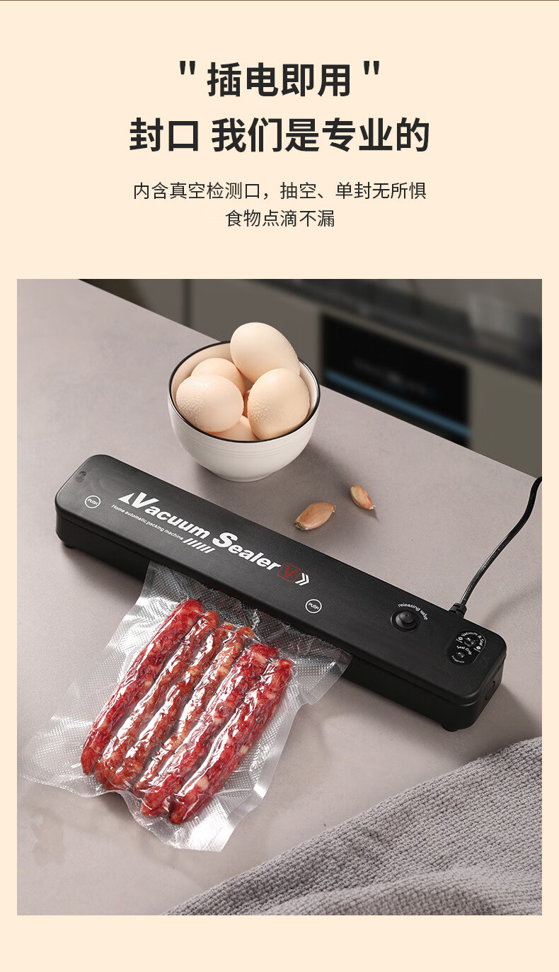 Taipeng vacuum compression sealing machine plastic sealing fresh-keeping and air-extracting small household food packaging fully automatic sealing cooked food black + 10 17*25 vacuum bags 35cm