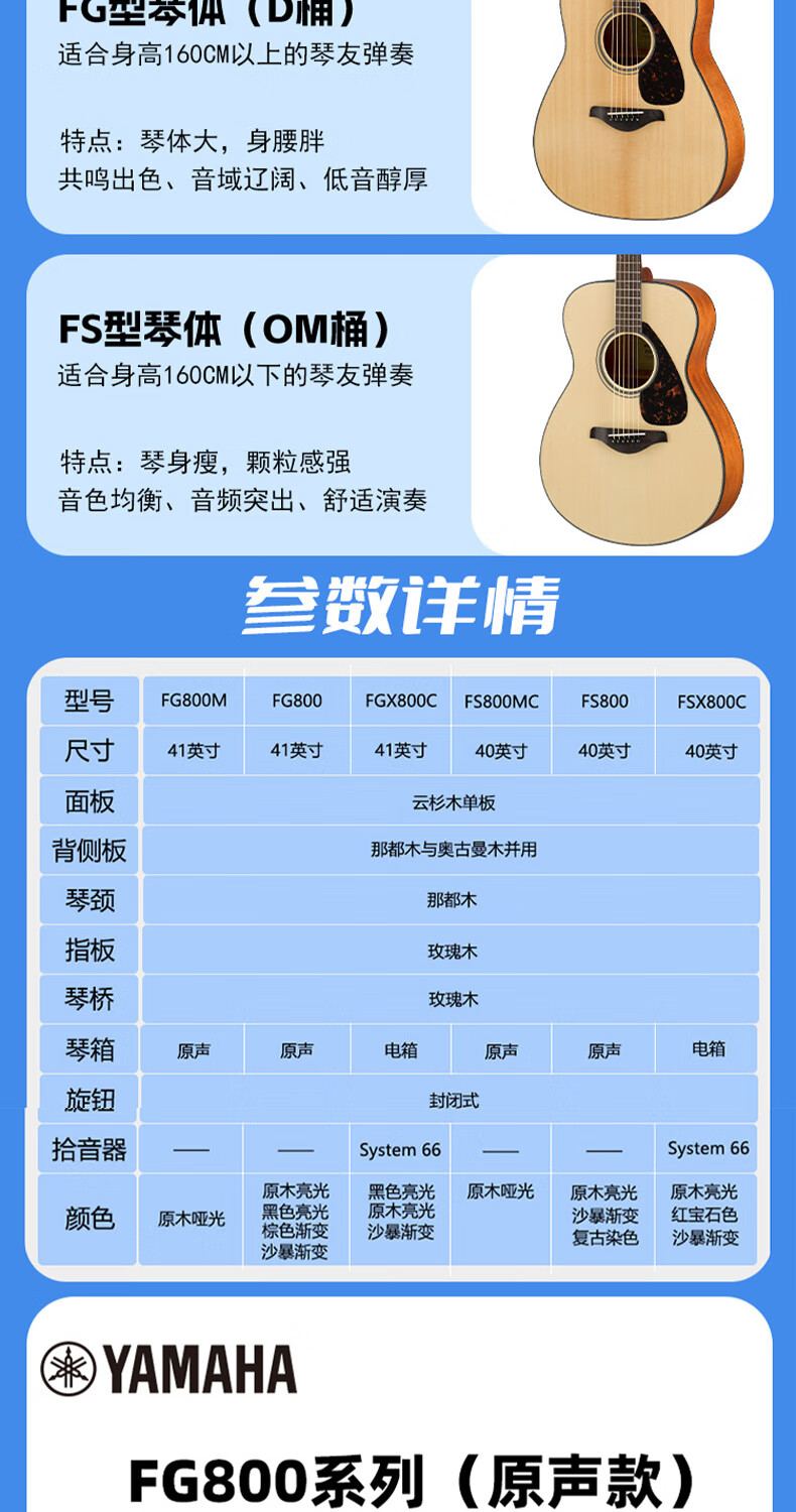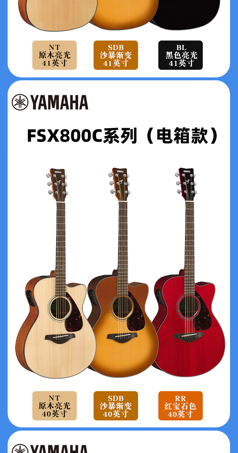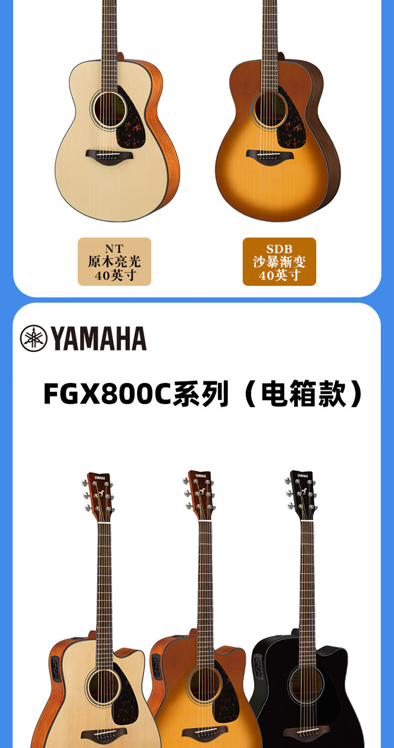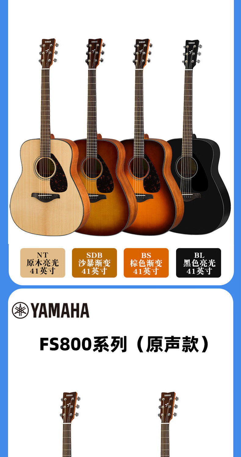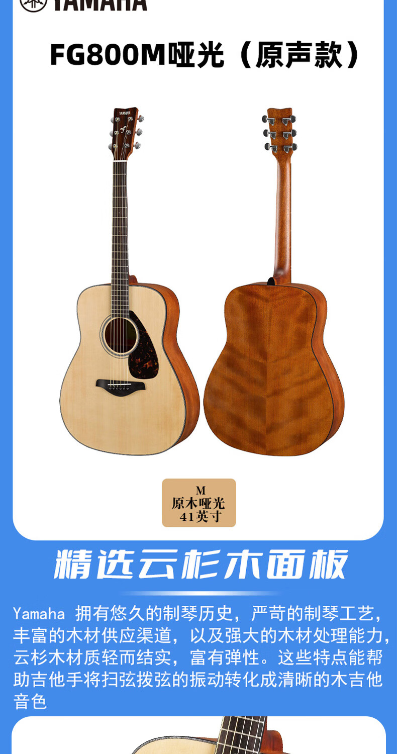 Yamaha FG800/FS800 single-board folk guitar for beginners, entry-level single-wood guitar for male and female students, fingerstyle electric box FG800 wood color-bright 41 inches
