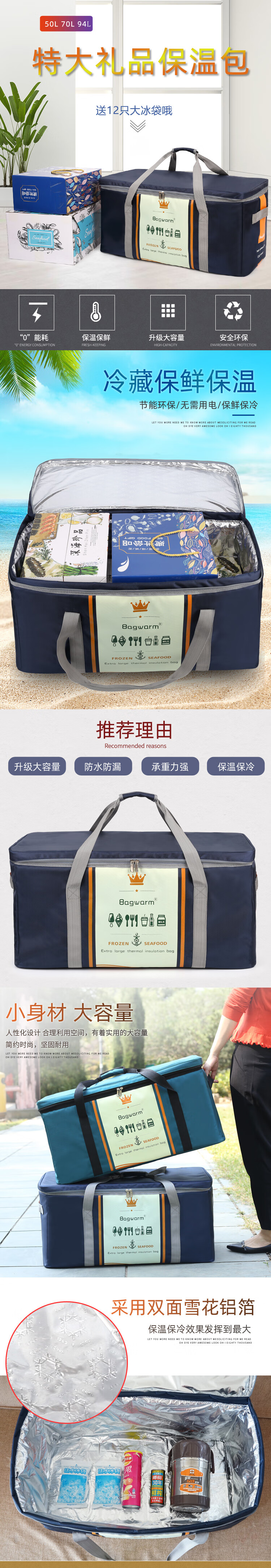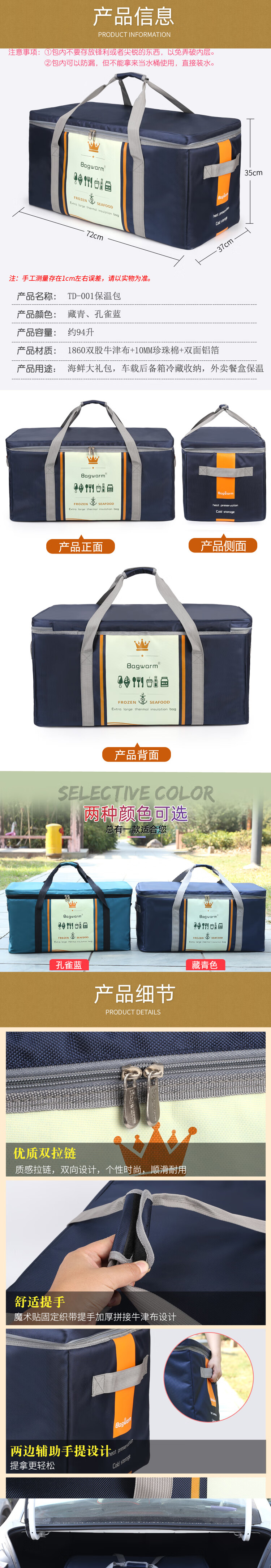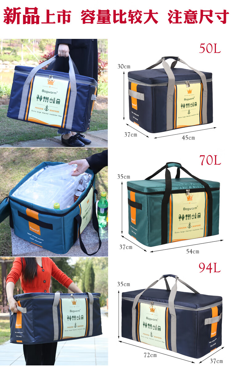 Gongma Extra Large Thick Insulated Bag Waterproof Cake Cooler Bag Stall Cooler Bag Outdoor Picnic Bag Takeaway Insulated Box 94L Peacock Blue (Free 12 Ice Bags)