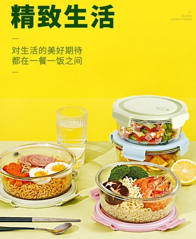 Xinmeiya microwaveable glass lunch box large-capacity lunch box insulated lunch box set for office workers and students 480 ml*2 for microwave ovens