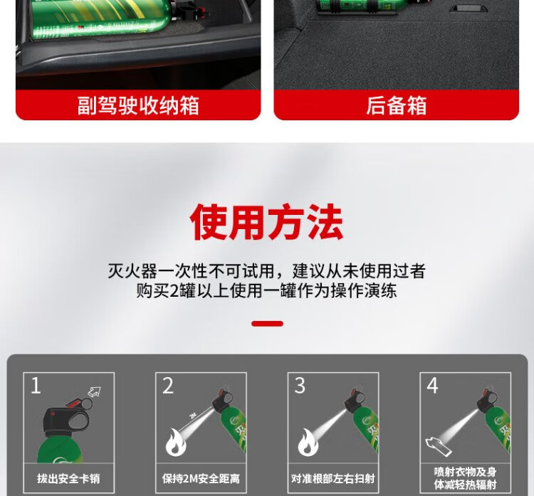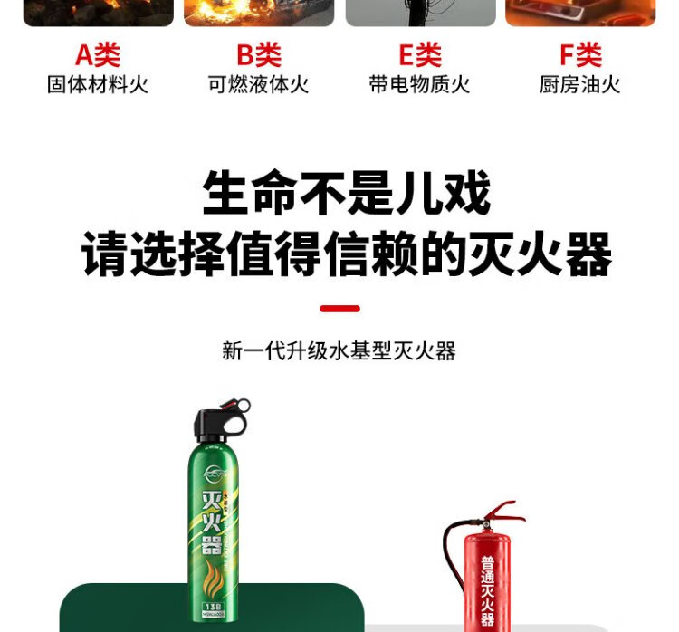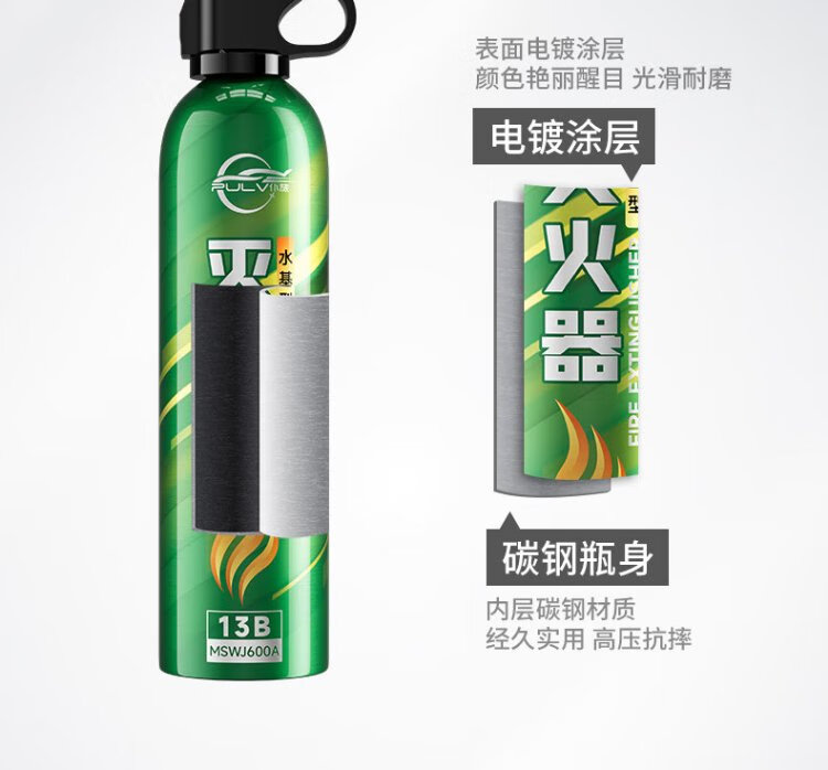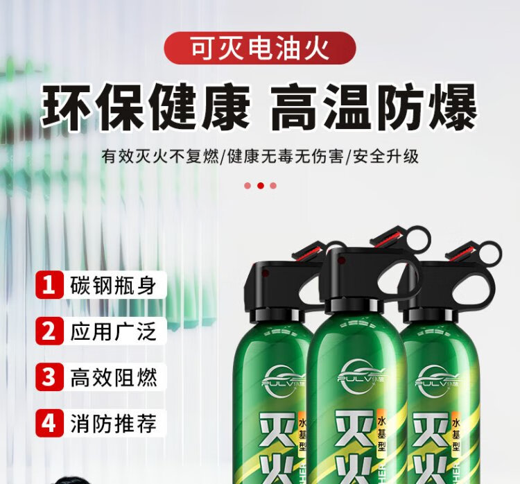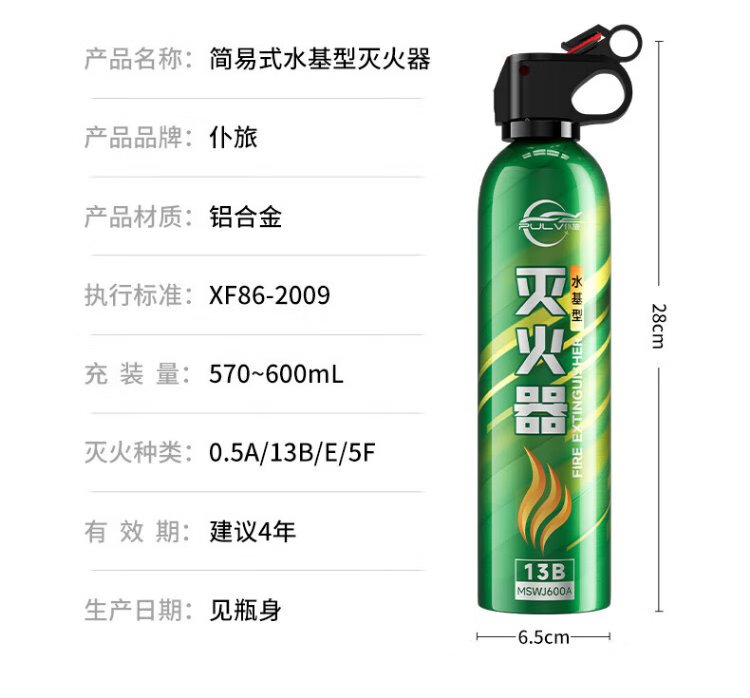 Pulv car water-based fire extinguisher New national standard 3c certified high temperature resistant and explosion-proof 13B automotive home portable fire extinguisher 620ml water-based *1 bottle novice trial