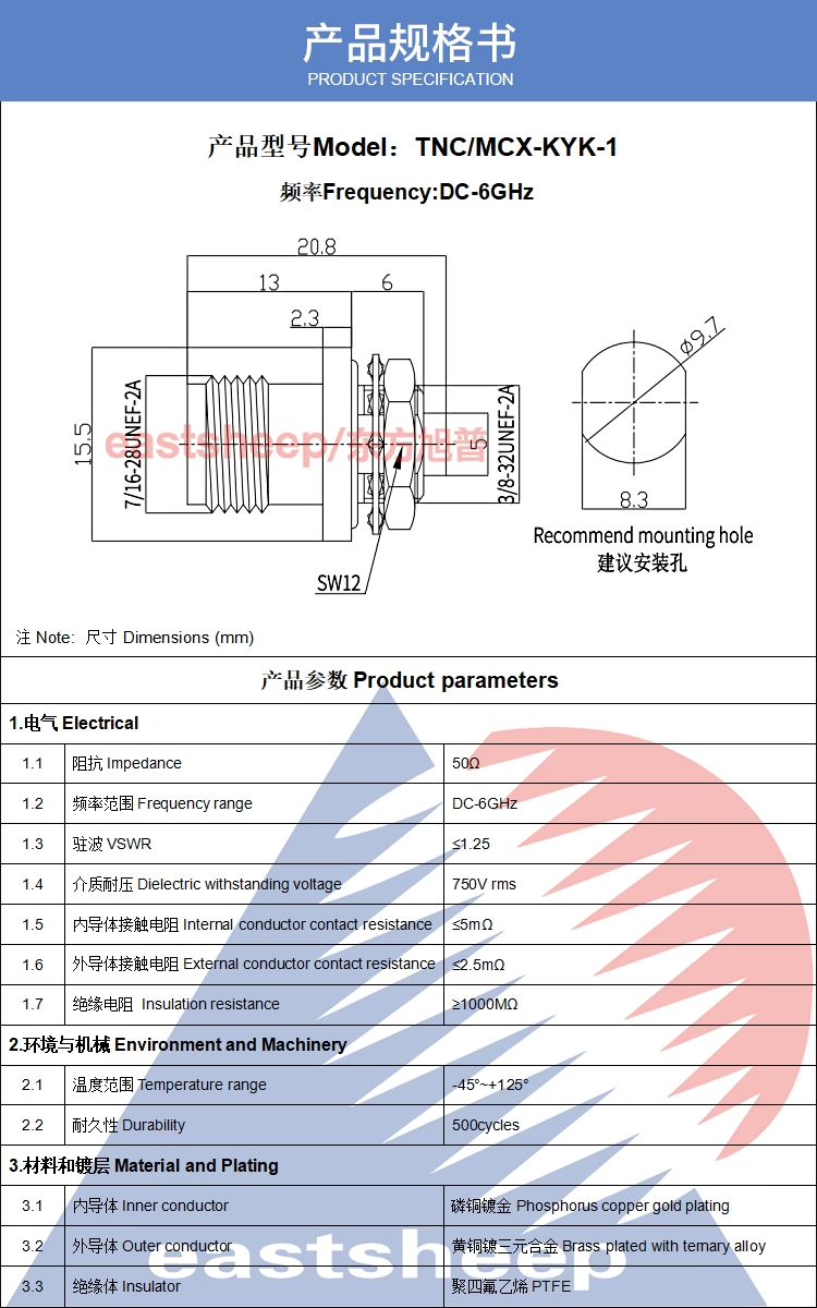 Oriental Xupu GPS antenna adapter TNC/MCX-KYK-1 TNC female to MCX female chassis fixed TNC/MCX-KYK-1