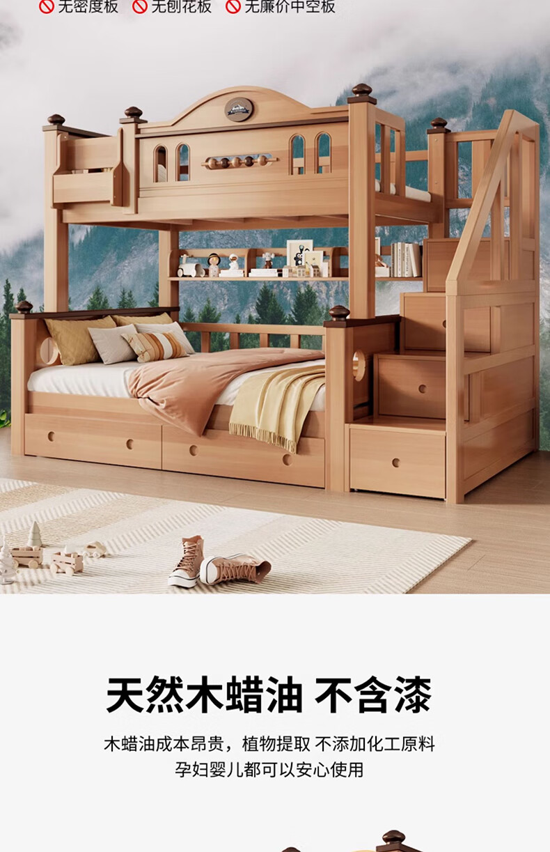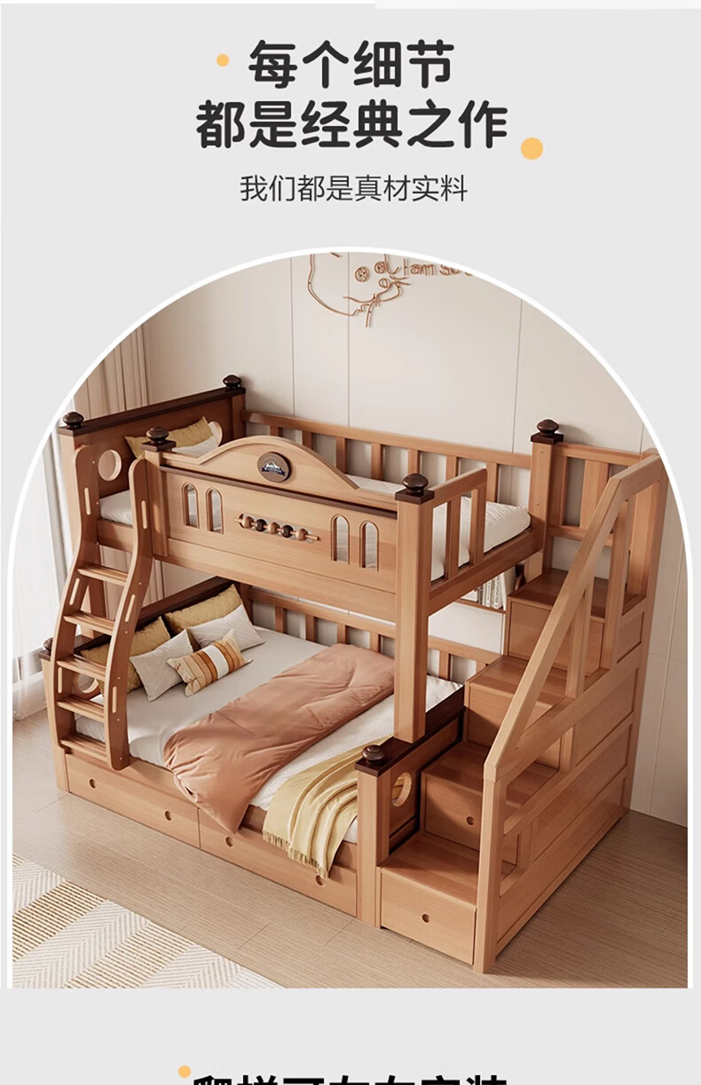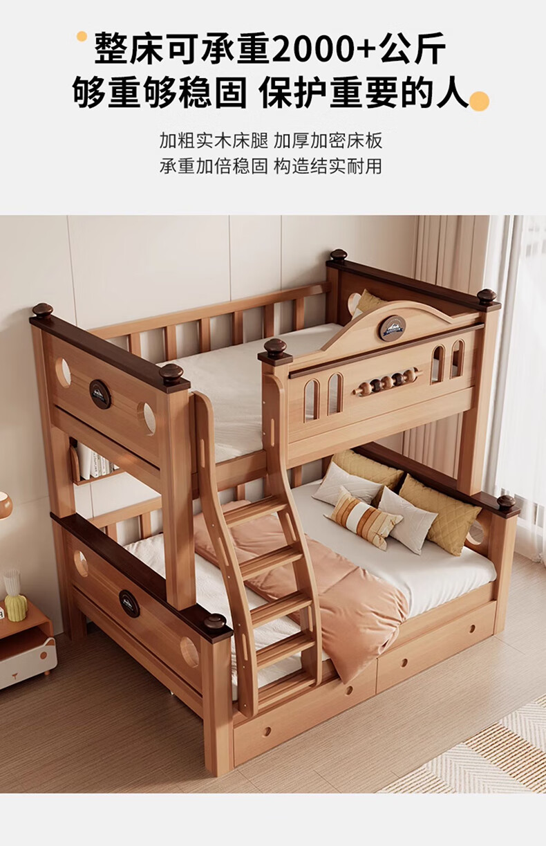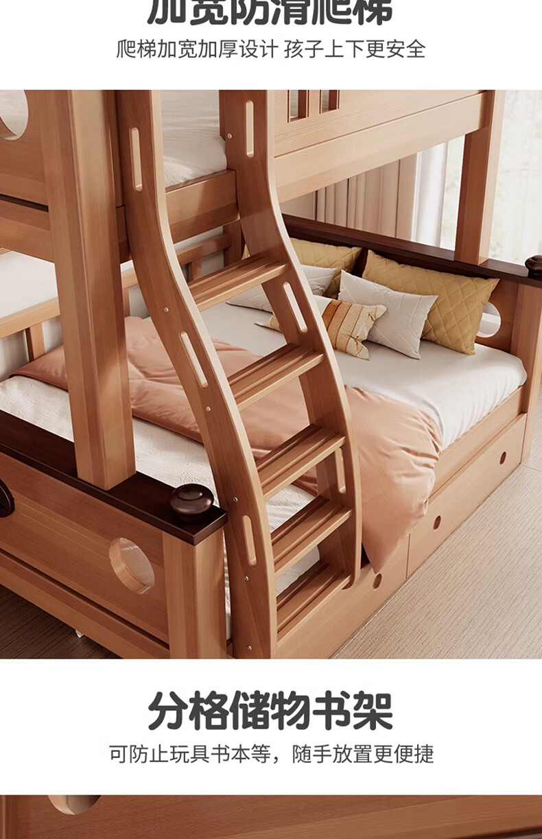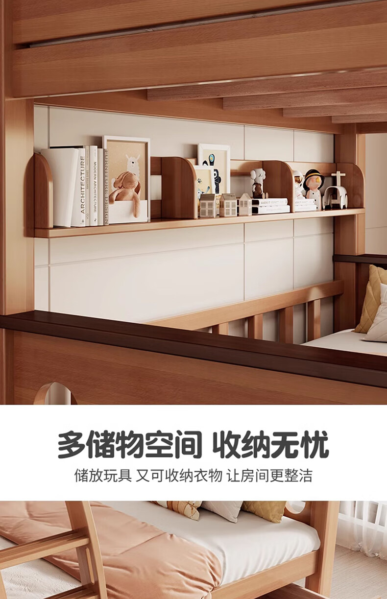 Ziwei all solid wood bunk bed children's bed high and low bed small apartment two-story wooden bed catalpa wood double bed bunk bed ladder type + bookshelf 10*10 bed legs 1350mm*2000mm