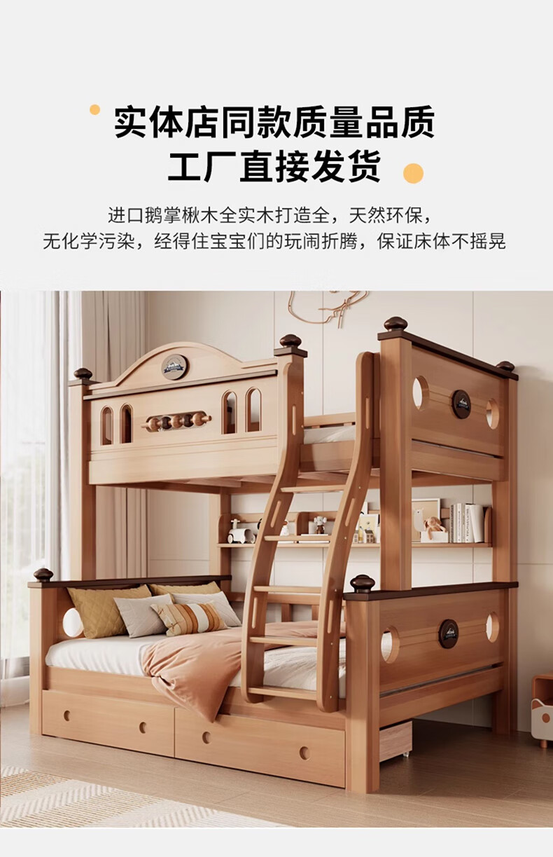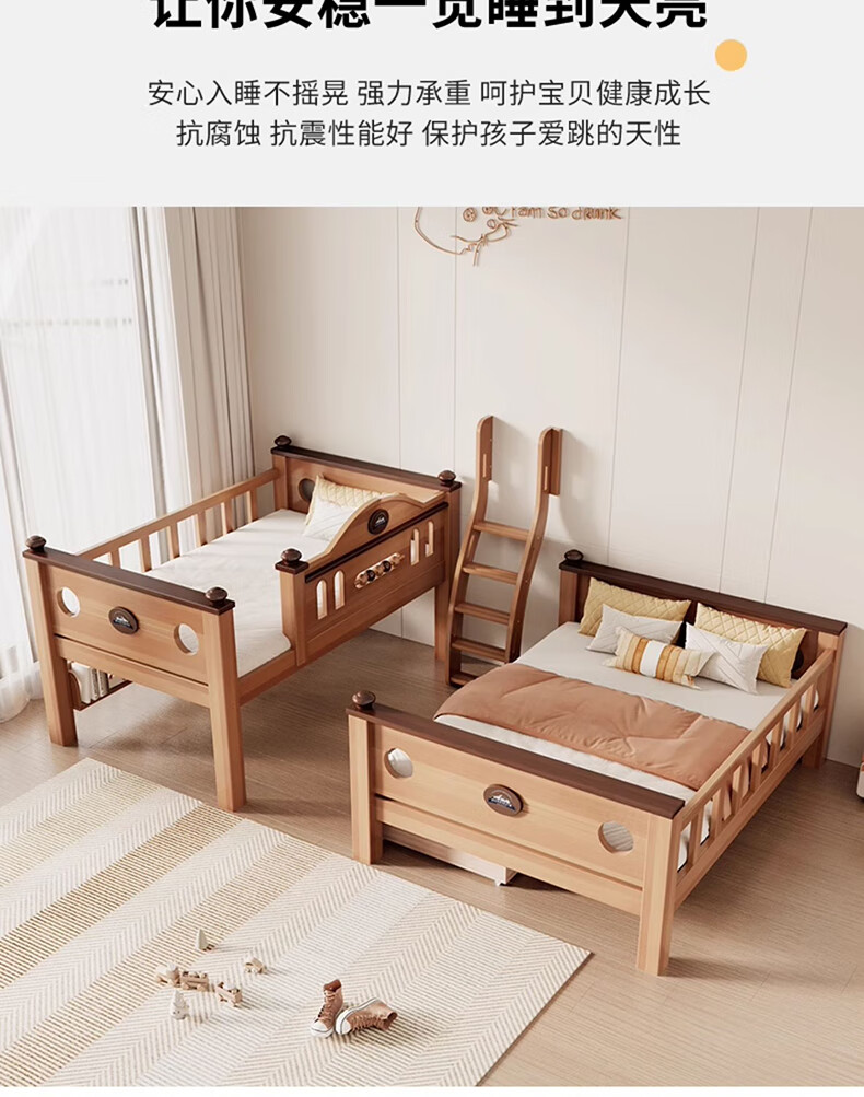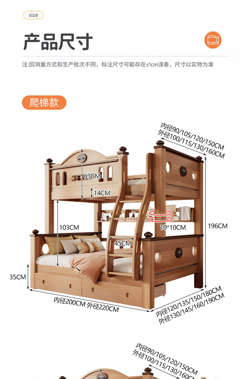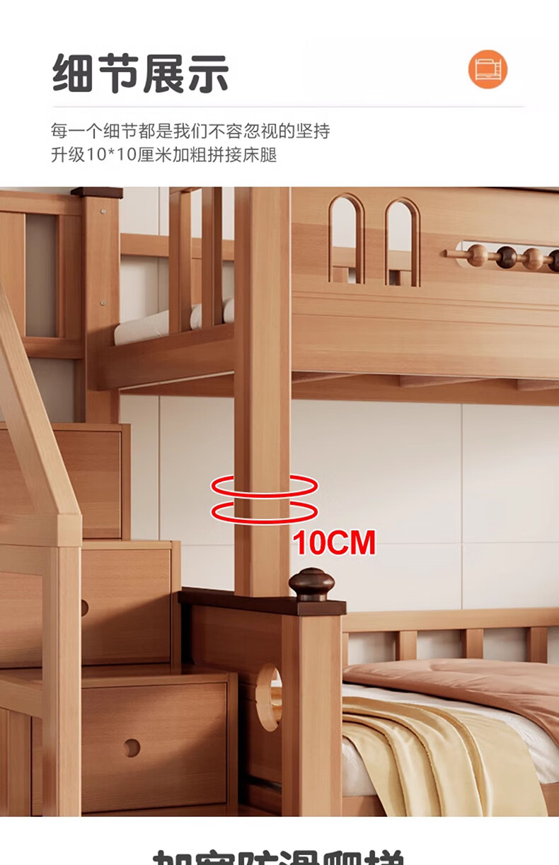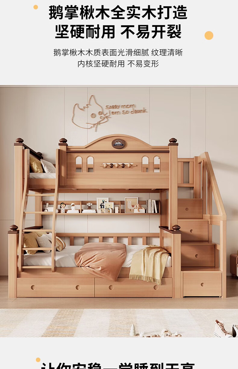 Ziwei all solid wood bunk bed children's bed high and low bed small apartment two-story wooden bed catalpa wood double bed bunk bed ladder type + bookshelf 10*10 bed legs 1350mm*2000mm