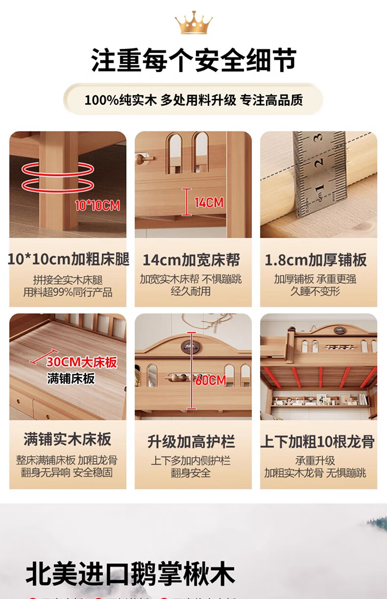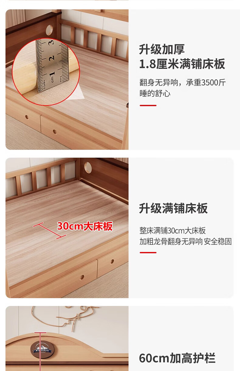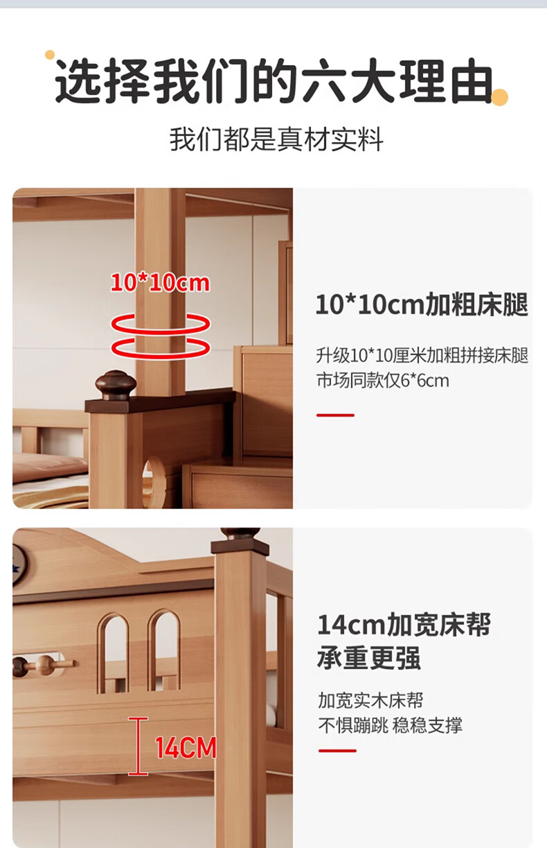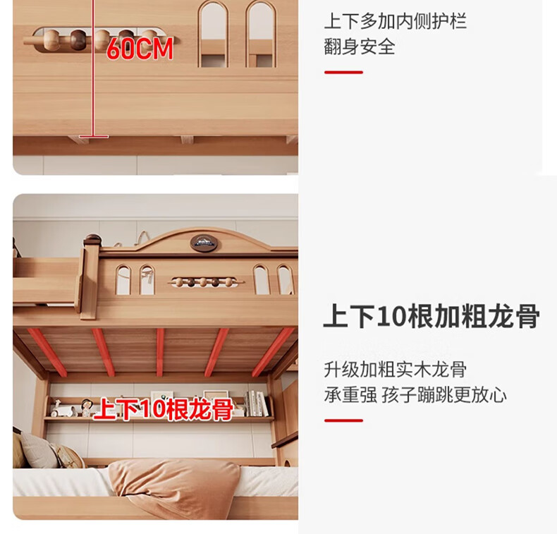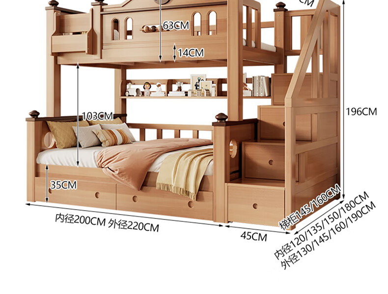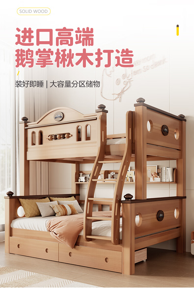 Ziwei all solid wood bunk bed children's bed high and low bed small apartment two-story wooden bed catalpa wood double bed bunk bed ladder type + bookshelf 10*10 bed legs 1350mm*2000mm