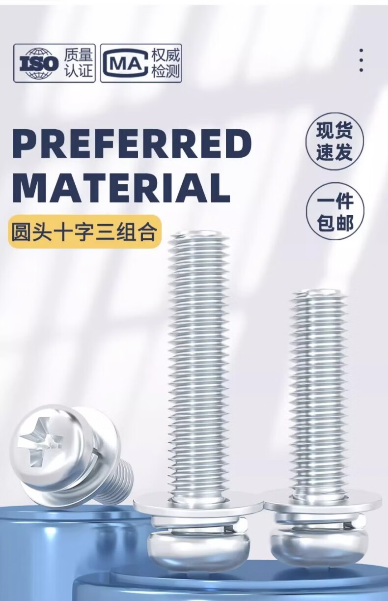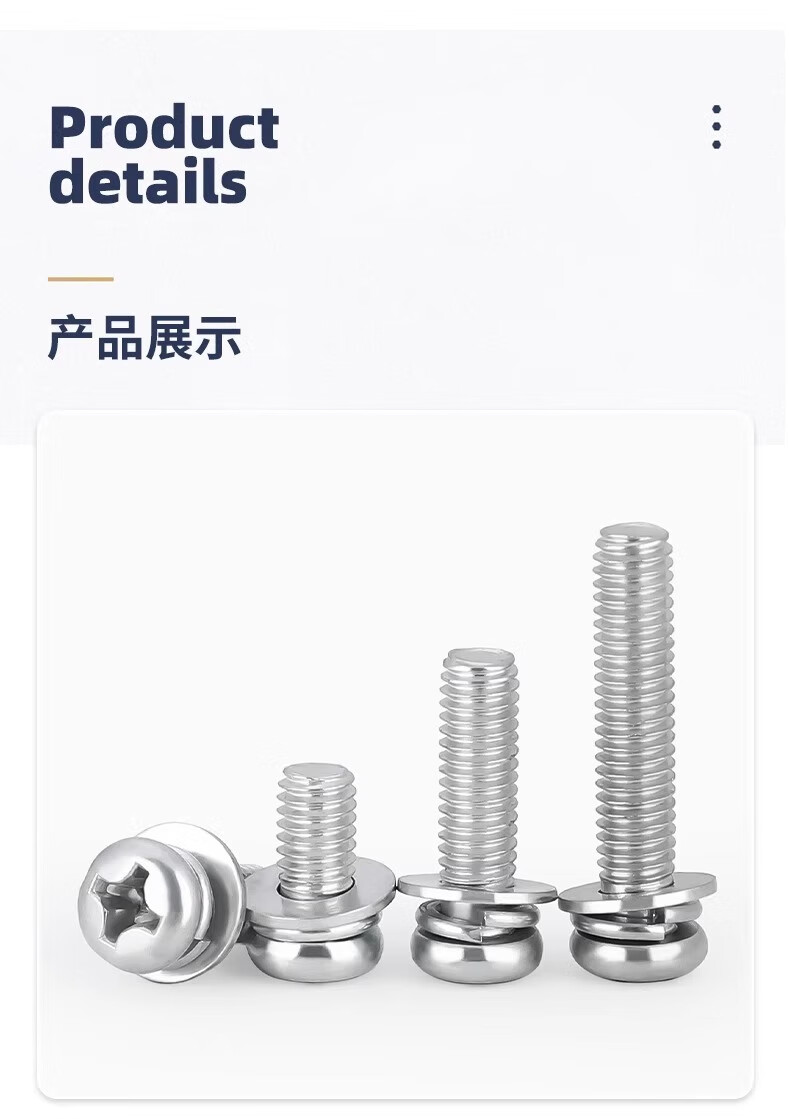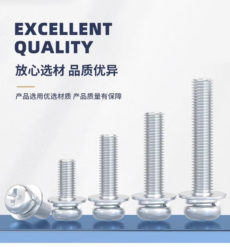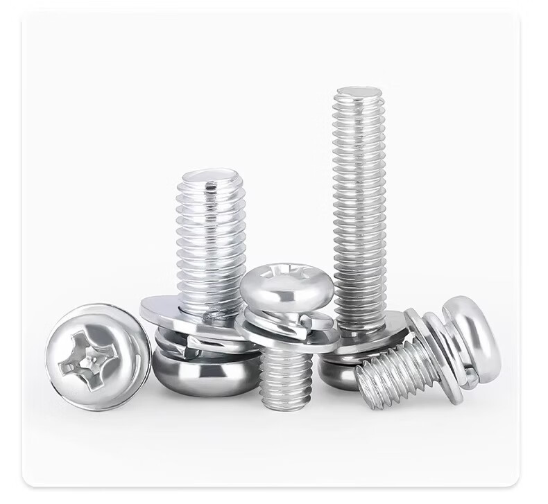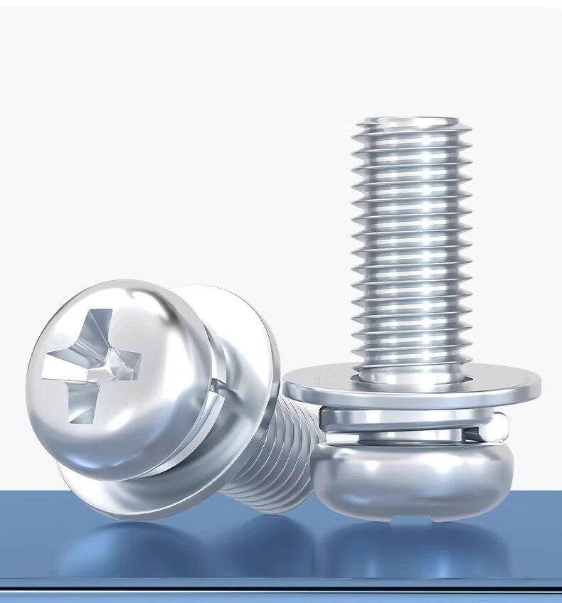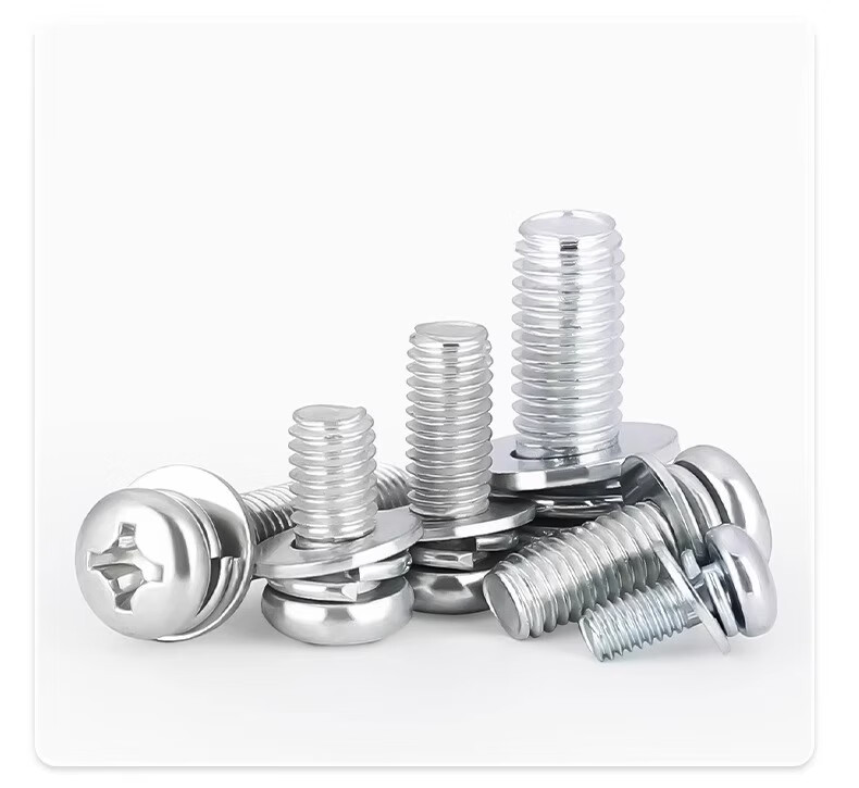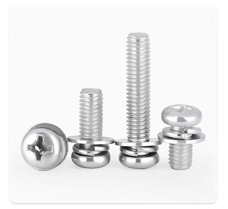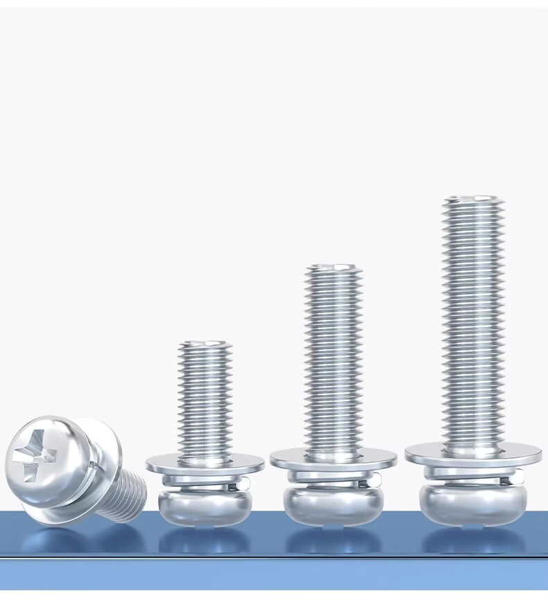 Fengji galvanized round head cross three combination screw pan head with flat elastic washer combination screw M2M2.5M3M4M5M6mm M4*10 50 pieces