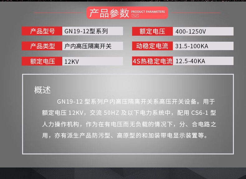 Indoor high-voltage isolating switch GN19-24C/400A GN19-12C/630A wall-mounted isolating switch GN19-12/400A phase spacing 210