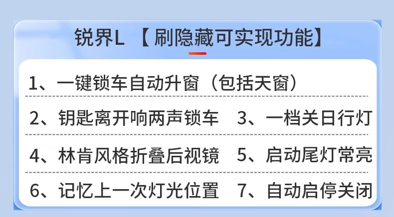 Cherulong Xinruijie L remote car brushing service locks the car, raises the window, automatically starts and stops, closes the driving computer hidden function activation, remote car brushing service fee