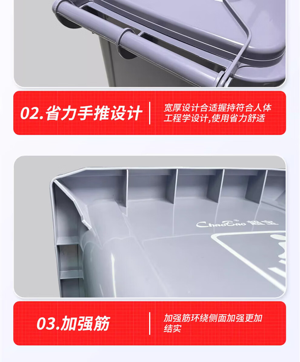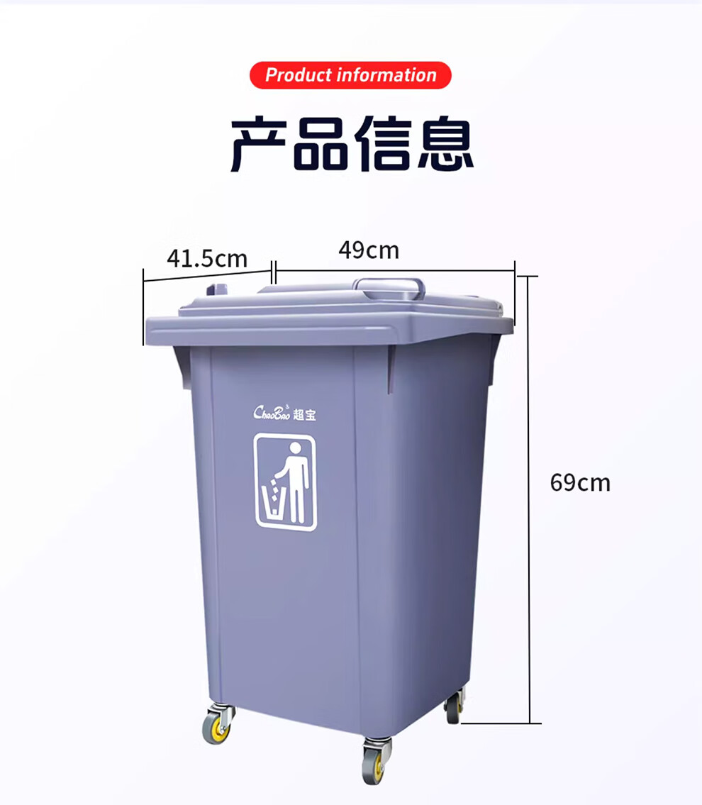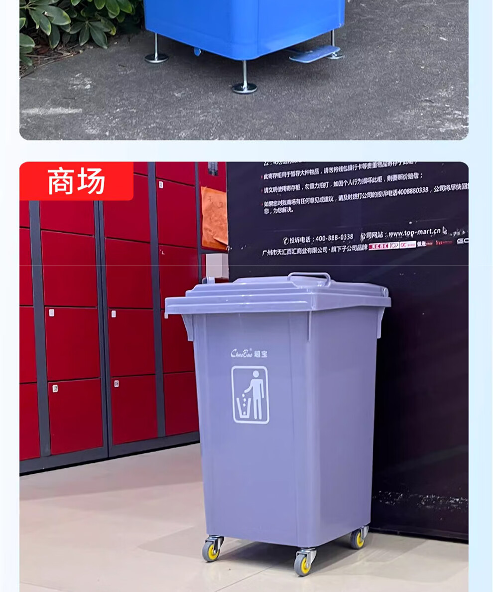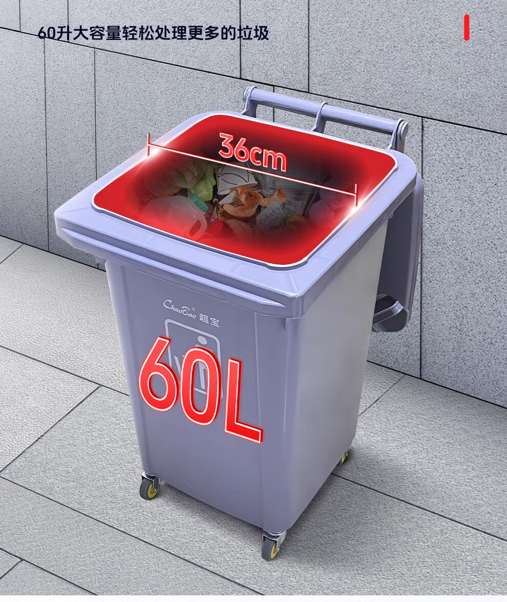 Baiyun Chaobao Clean B-001 thickened trash can 60 liters with four wheels removable plastic square bucket property community indoor and outdoor villa kitchen with lid meal waste bin removable green trash can 60 liters (contact customer service for customization)