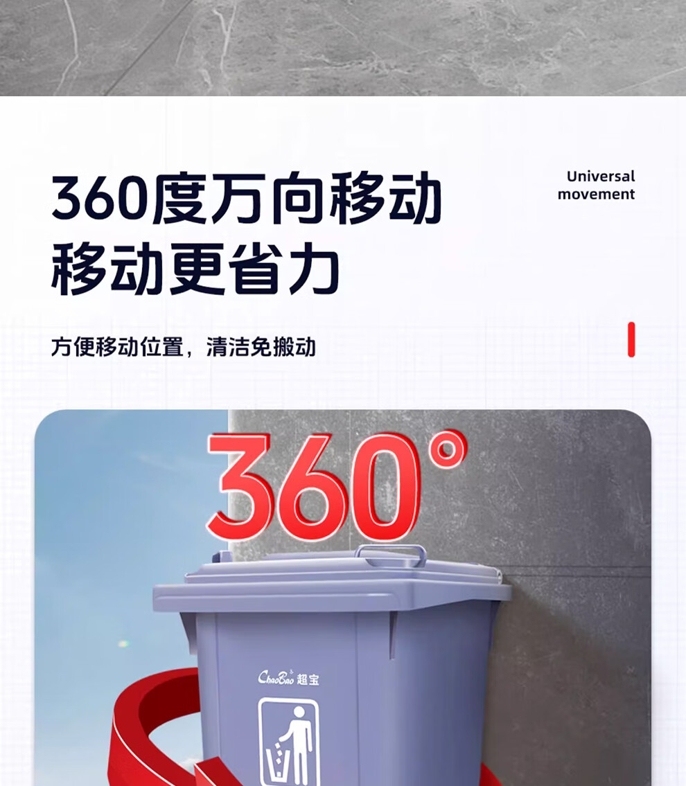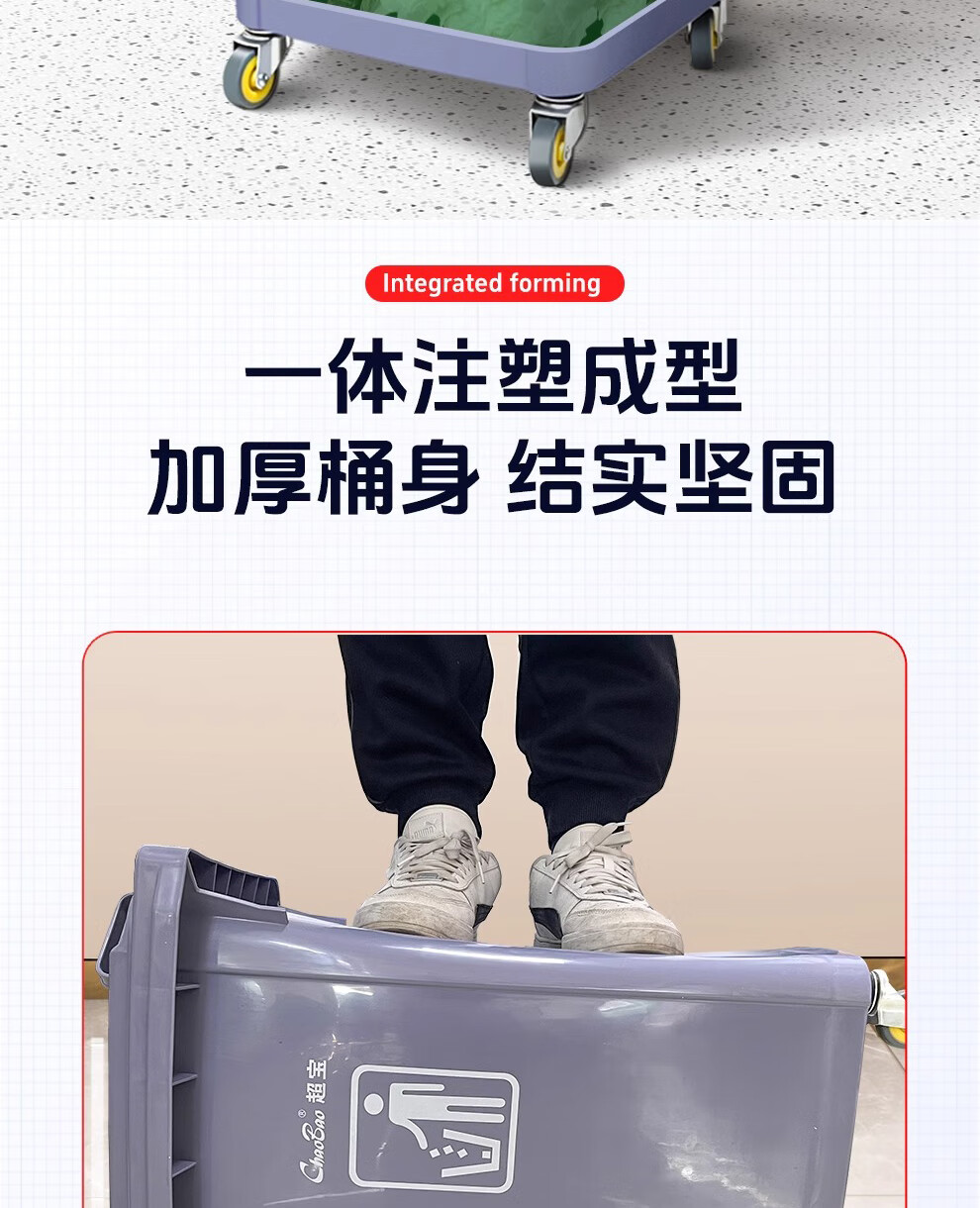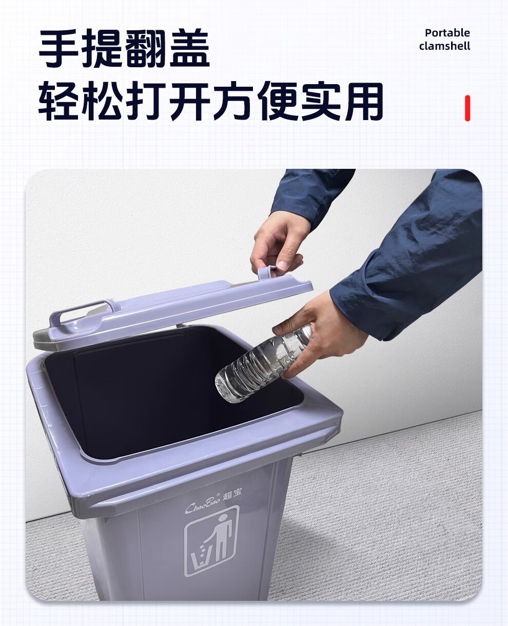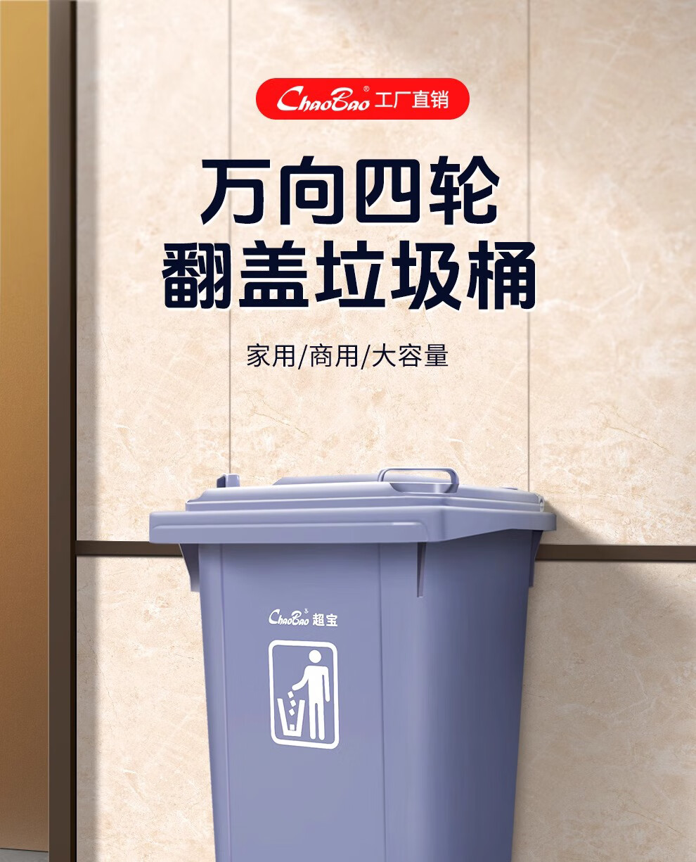 Baiyun Chaobao Clean B-001 thickened trash can 60 liters with four wheels removable plastic square bucket property community indoor and outdoor villa kitchen with lid meal waste bin removable green trash can 60 liters (contact customer service for customization)