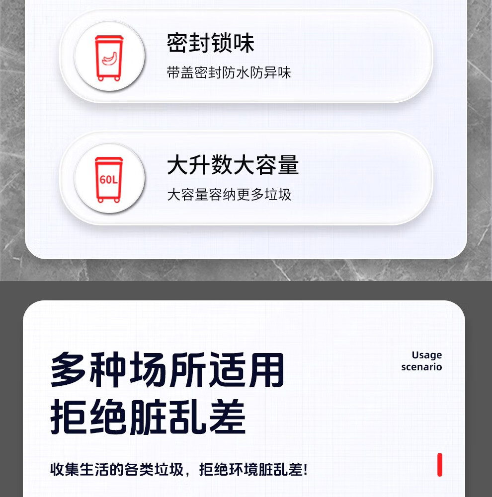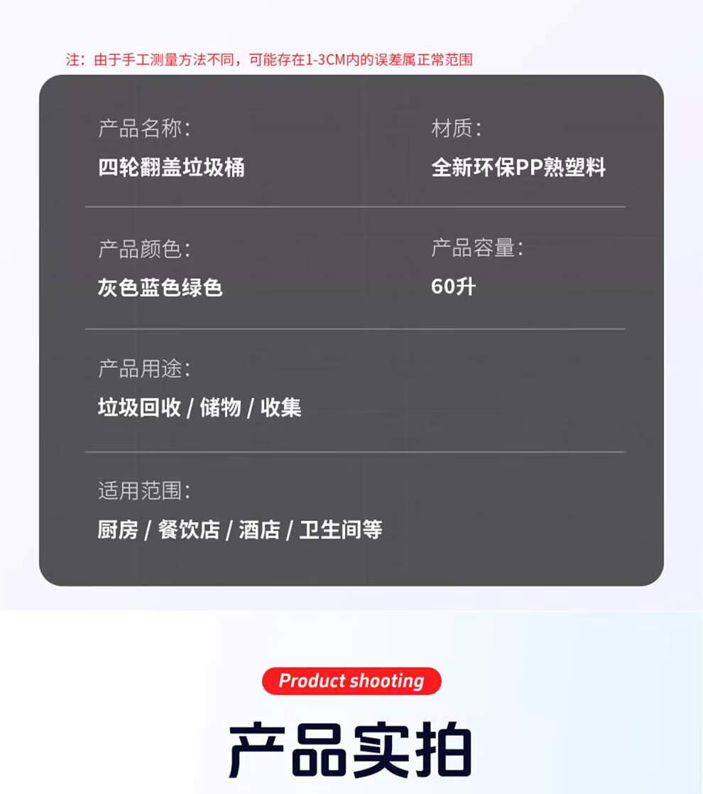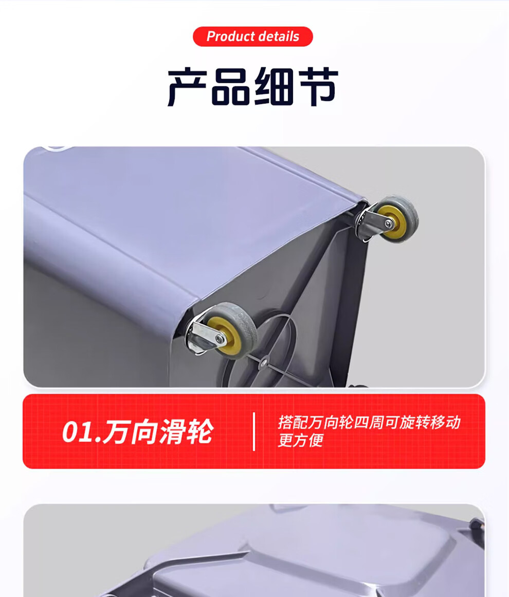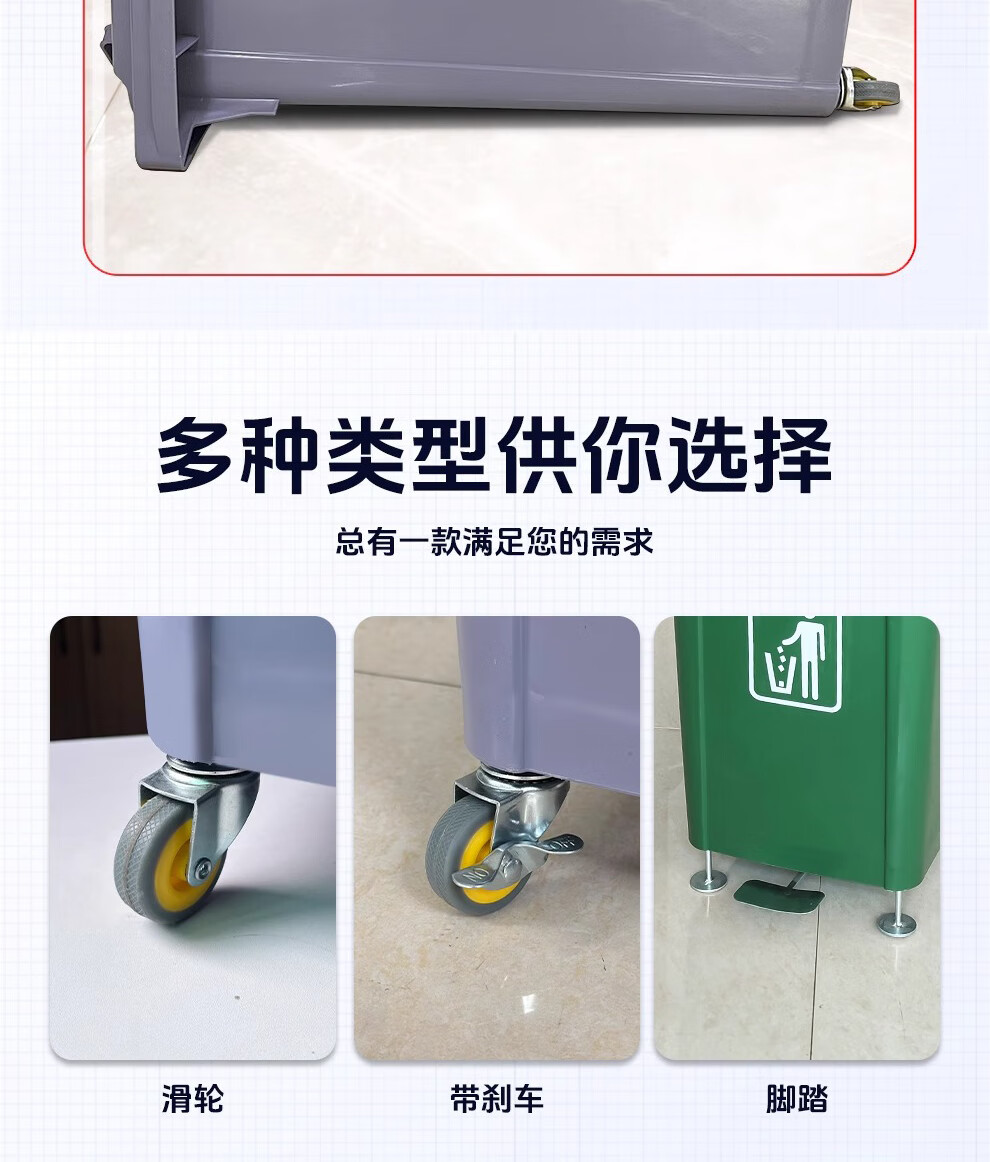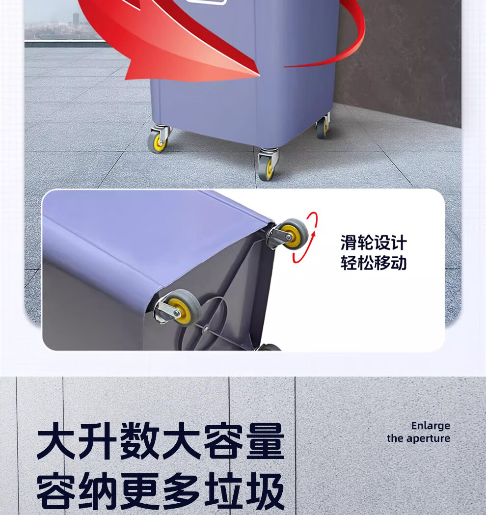 Baiyun Chaobao Clean B-001 thickened trash can 60 liters with four wheels removable plastic square bucket property community indoor and outdoor villa kitchen with lid meal waste bin removable green trash can 60 liters (contact customer service for customization)
