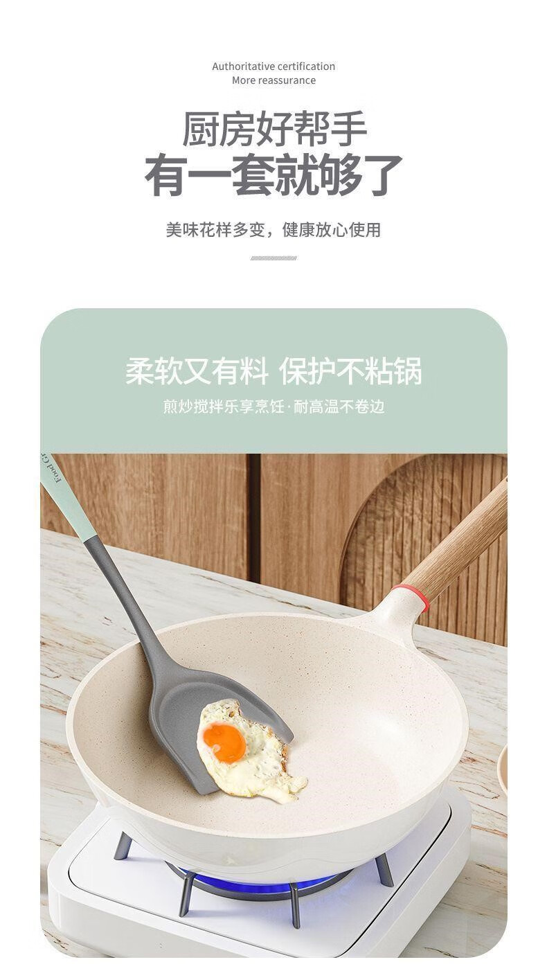 Kim Sister-in-law food-grade silicone spatula, special non-stick spatula for household cooking, high-temperature resistant kitchen utensil set, food-grade silicone/two-piece spatula + soup spoon