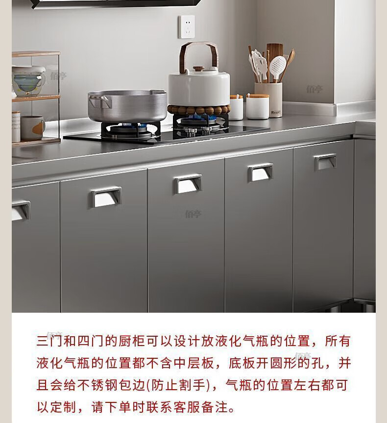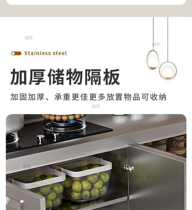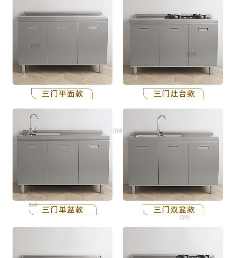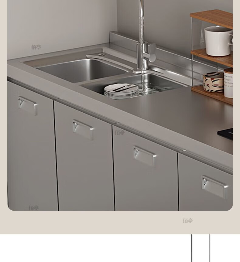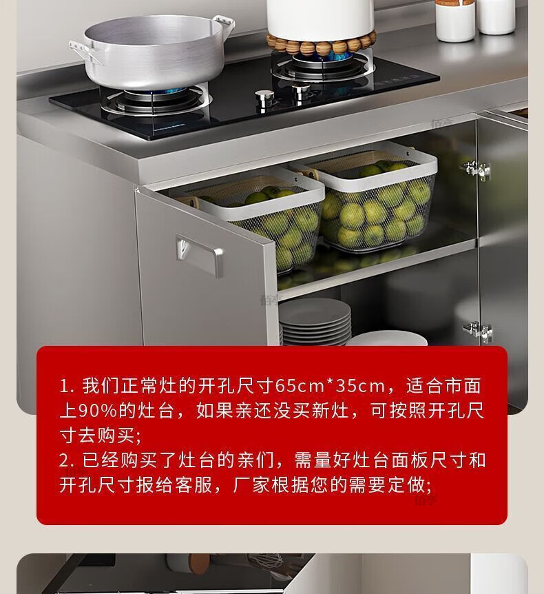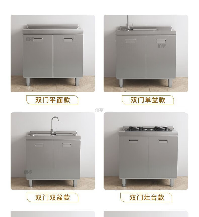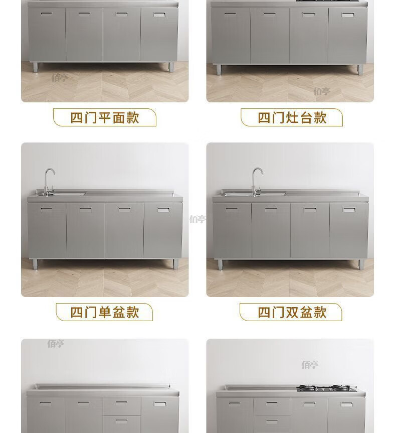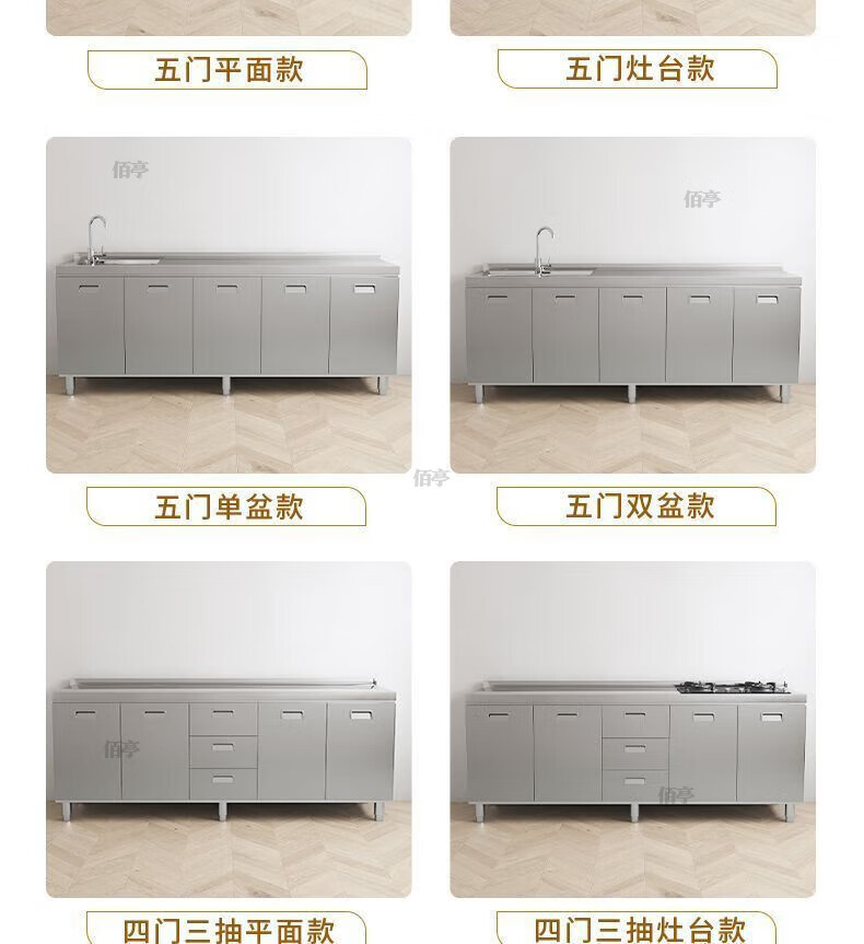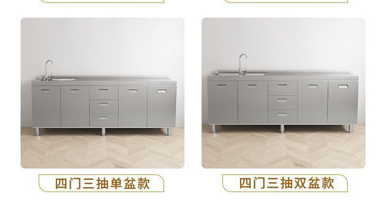 Baiting 2025 New Overall Thickened Stainless Steel Cabinet No Installation Integrated Kitchen Stove Cabinet Small Apartment 160cm Four Doors Double Basins (Remarks Left and Right) 304 Thickened Stainless Steel No Installation