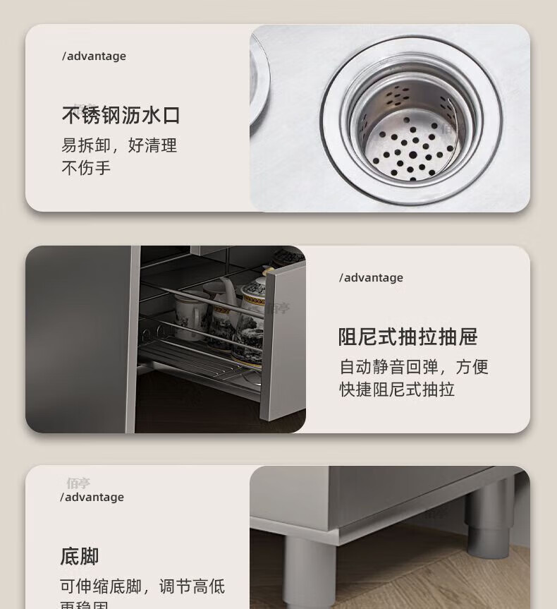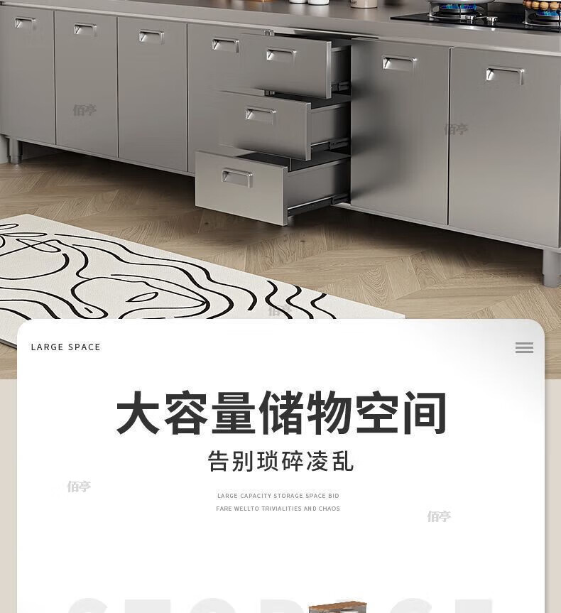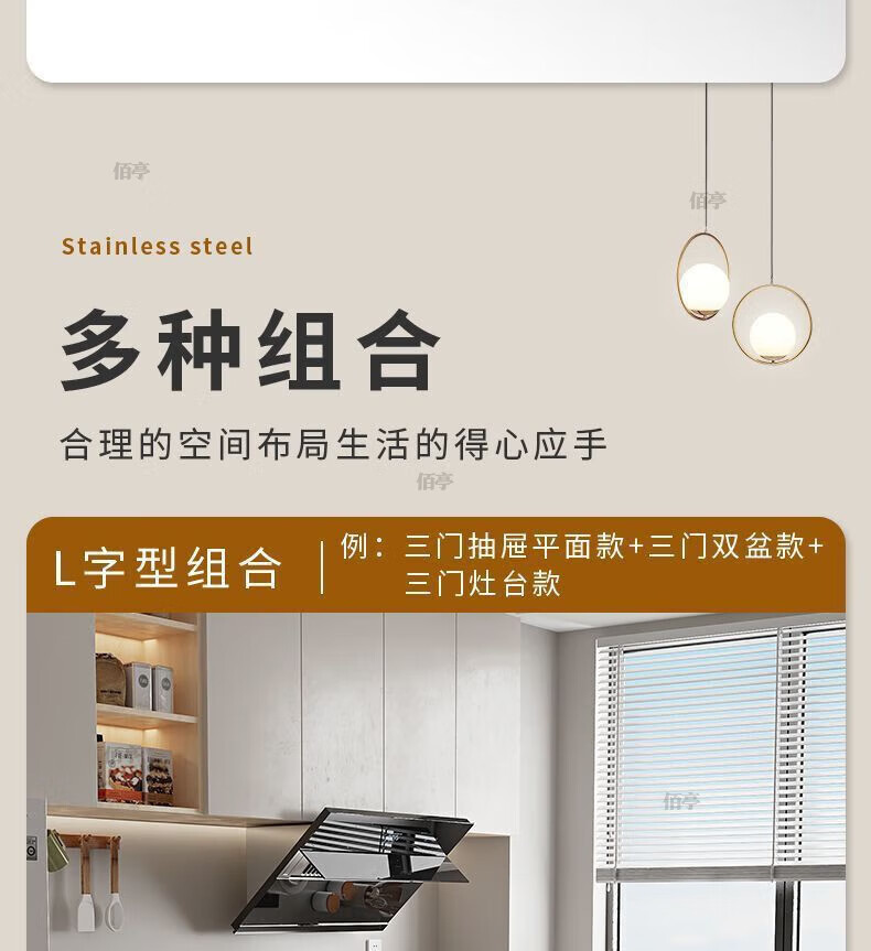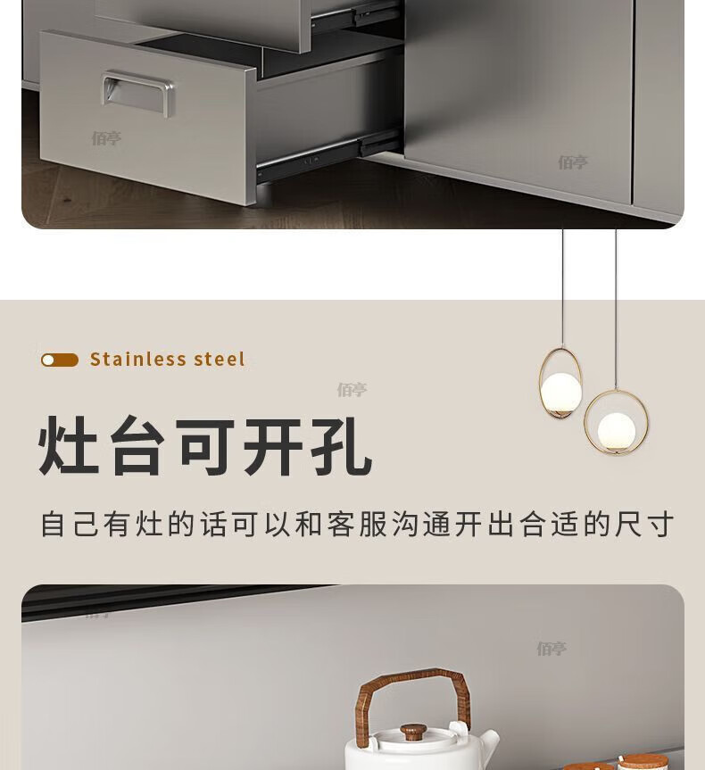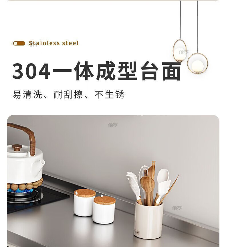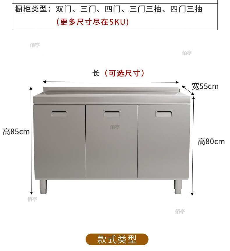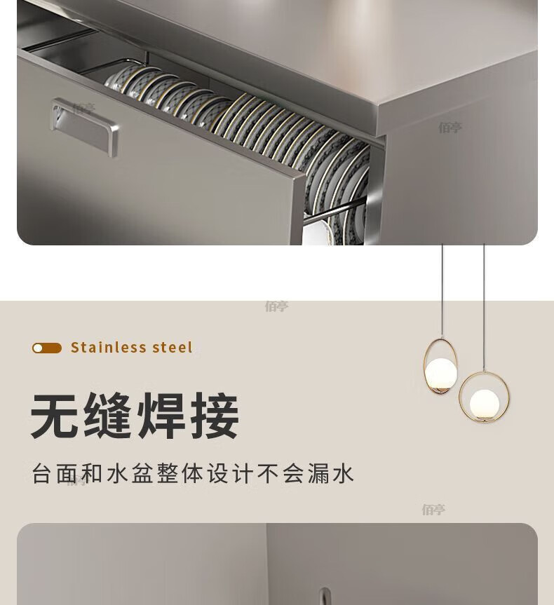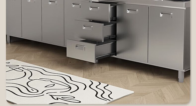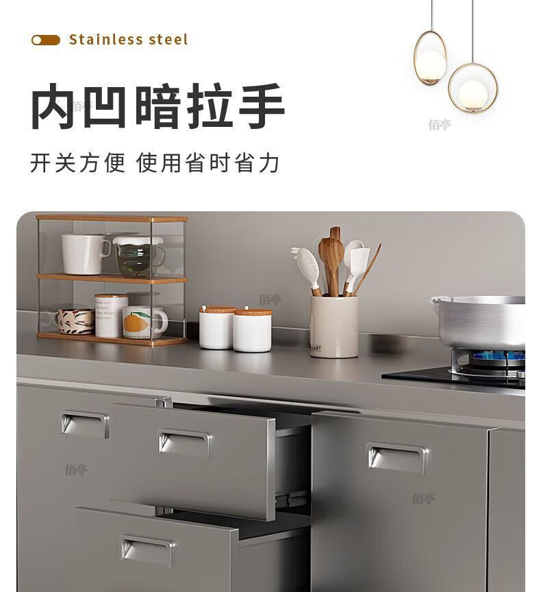 Baiting 2025 New Overall Thickened Stainless Steel Cabinet No Installation Integrated Kitchen Stove Cabinet Small Apartment 160cm Four Doors Double Basins (Remarks Left and Right) 304 Thickened Stainless Steel No Installation