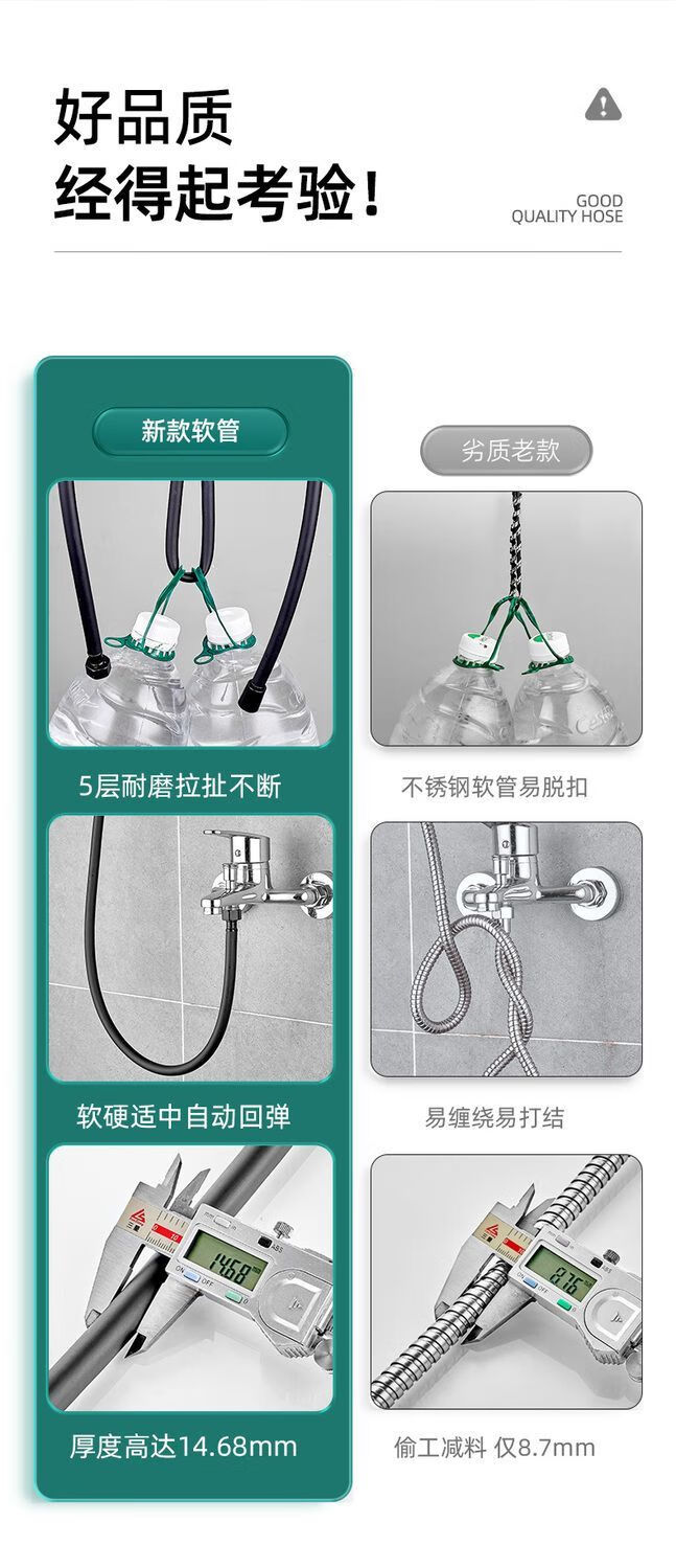 Xiaodeng Anti-Tangle Shower Hose Universal Explosion-proof Shower Water Heater Household Outlet Pipe Rain Shower HFH Yaohei Set 2 2 Meter Anti-Tangle Pipe + 5 Flowers