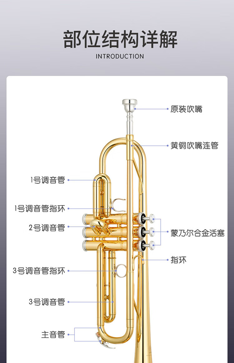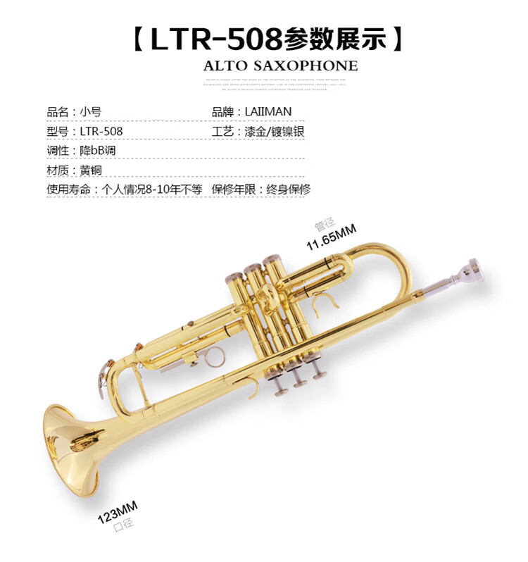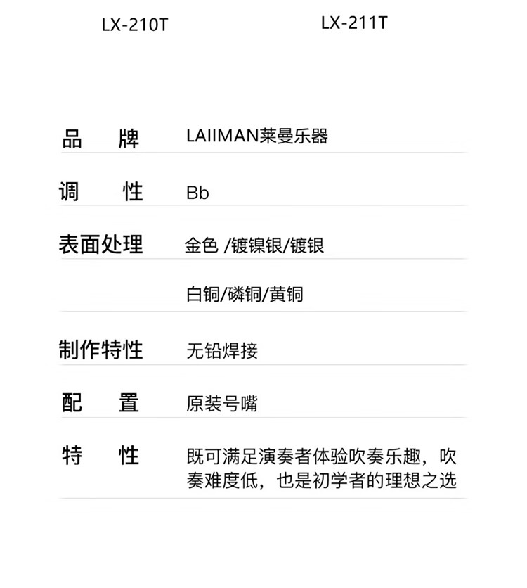 LAIIMAN French Lyman B-flat three-tone trumpet instrument for students, children, adults, beginners, professional teaching performance, high-quality selection