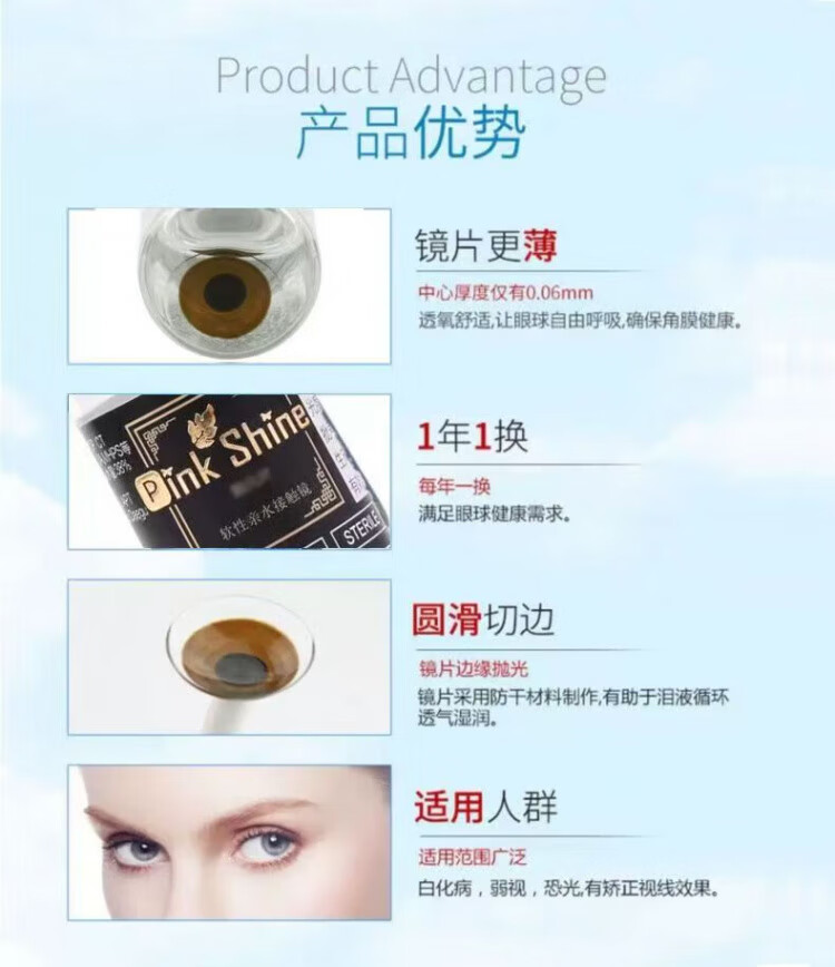 Vbnm South Korea imported medical cosmetic film shading concealer contact lens iris blind film vision contact lens yearly disposable small diameter pinkshine (South Korea) No. 2 color 14.0