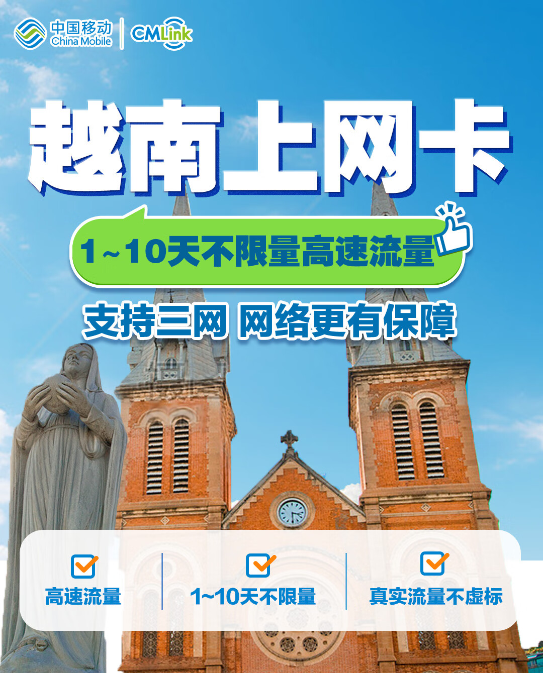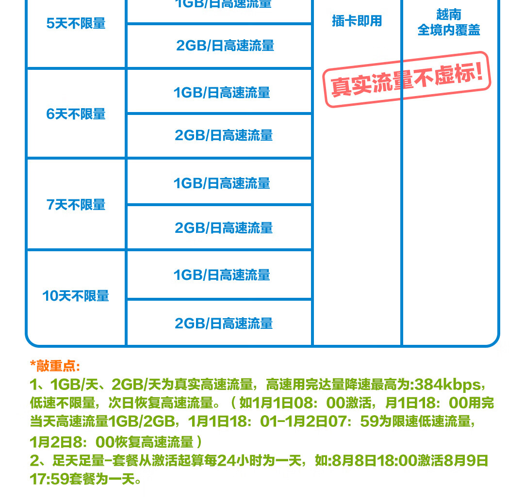 Vietnam traffic card China Mobile CMLink high-speed network universal travel SIM card 5 days 1GB/day - high speed + unlimited