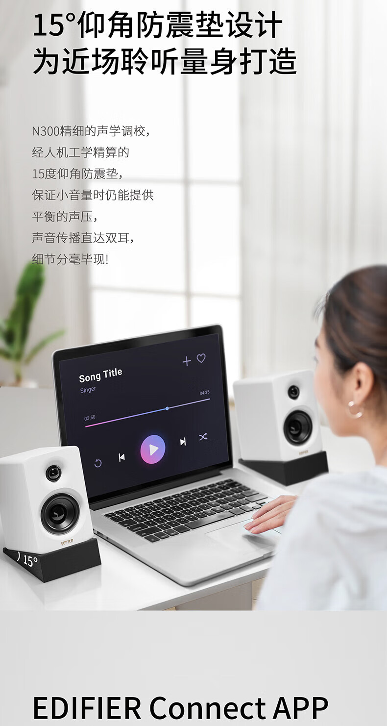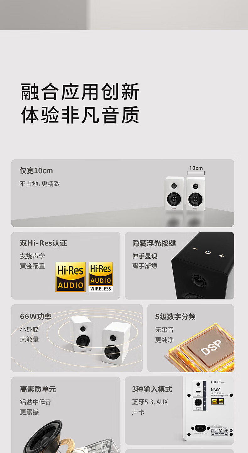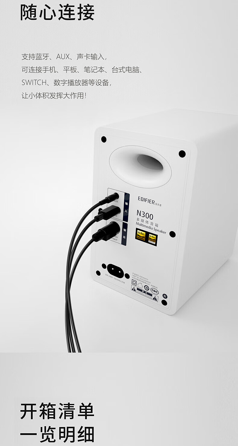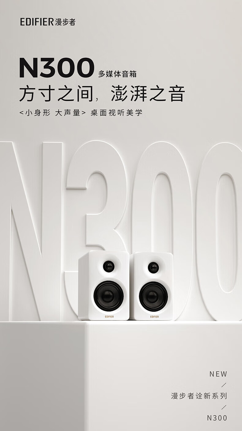 Edifier (EDIFIER) N300 Wireless Bluetooth Desktop Computer Speaker Home Active Desktop 2.0 Speaker Exquisite and Compact HIFI Sound Quality Double Gold Label Certified Valentine's Day Gift Silk White + Audio Cable + Foot Mats