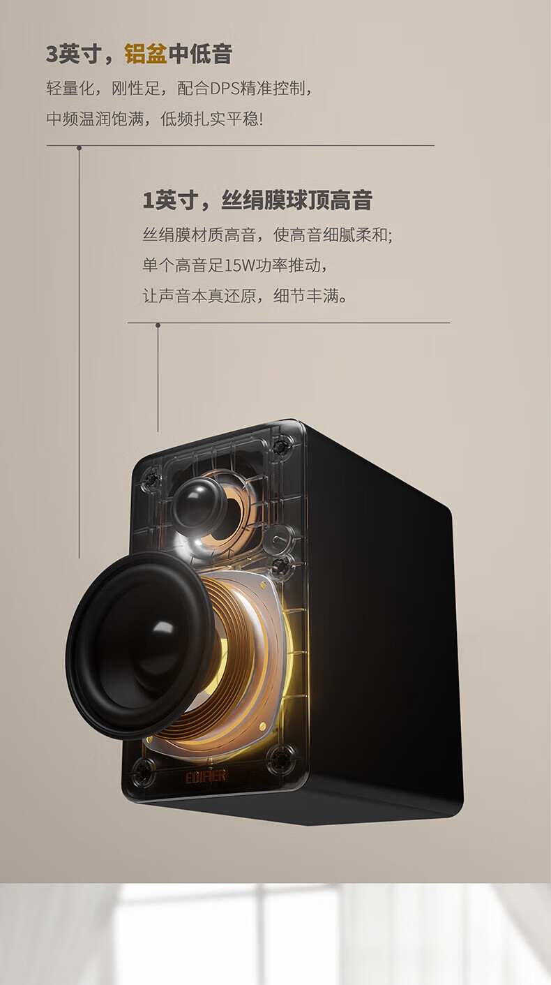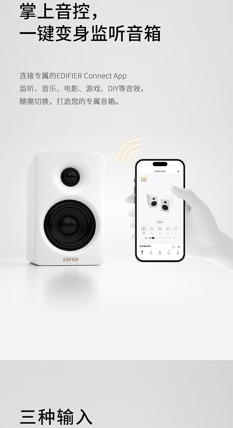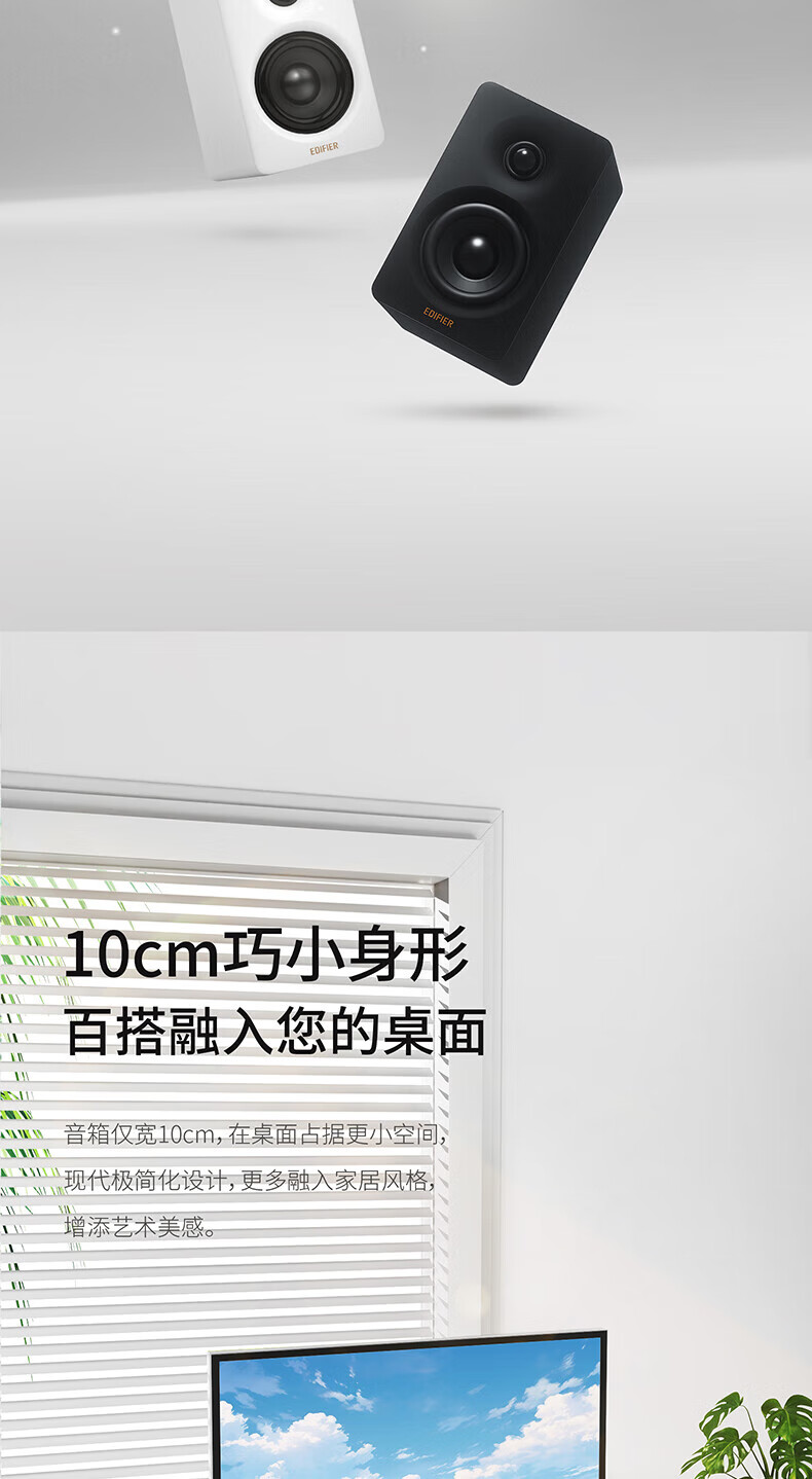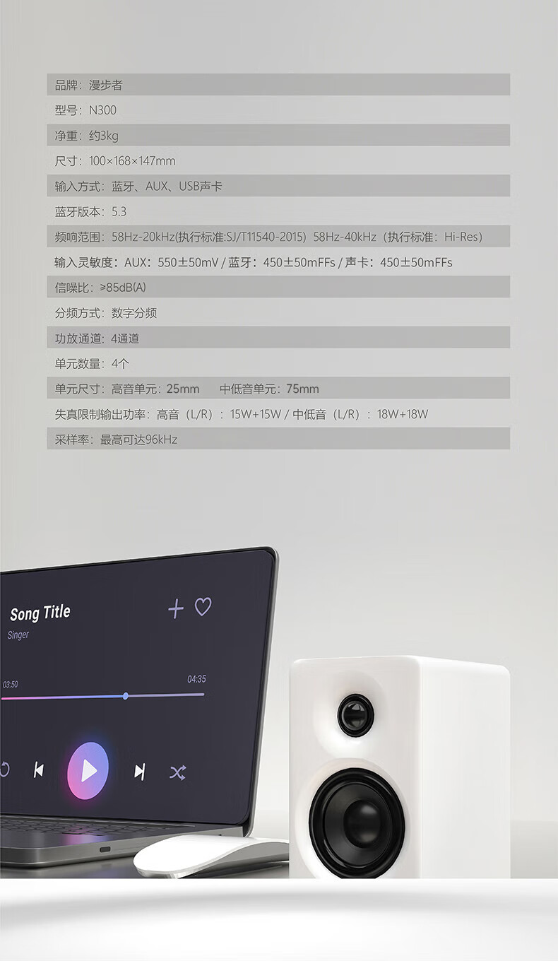 Edifier (EDIFIER) N300 Wireless Bluetooth Desktop Computer Speaker Home Active Desktop 2.0 Speaker Exquisite and Compact HIFI Sound Quality Double Gold Label Certified Valentine's Day Gift Silk White + Audio Cable + Foot Mats