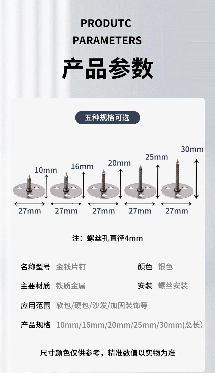 Meng Qier's 1-car triangular nail, Tribulus non-reversible nail, triangular nail, three-hole nail, flat head thumbtack, large head nail, random nail length for furniture, 5-pcs