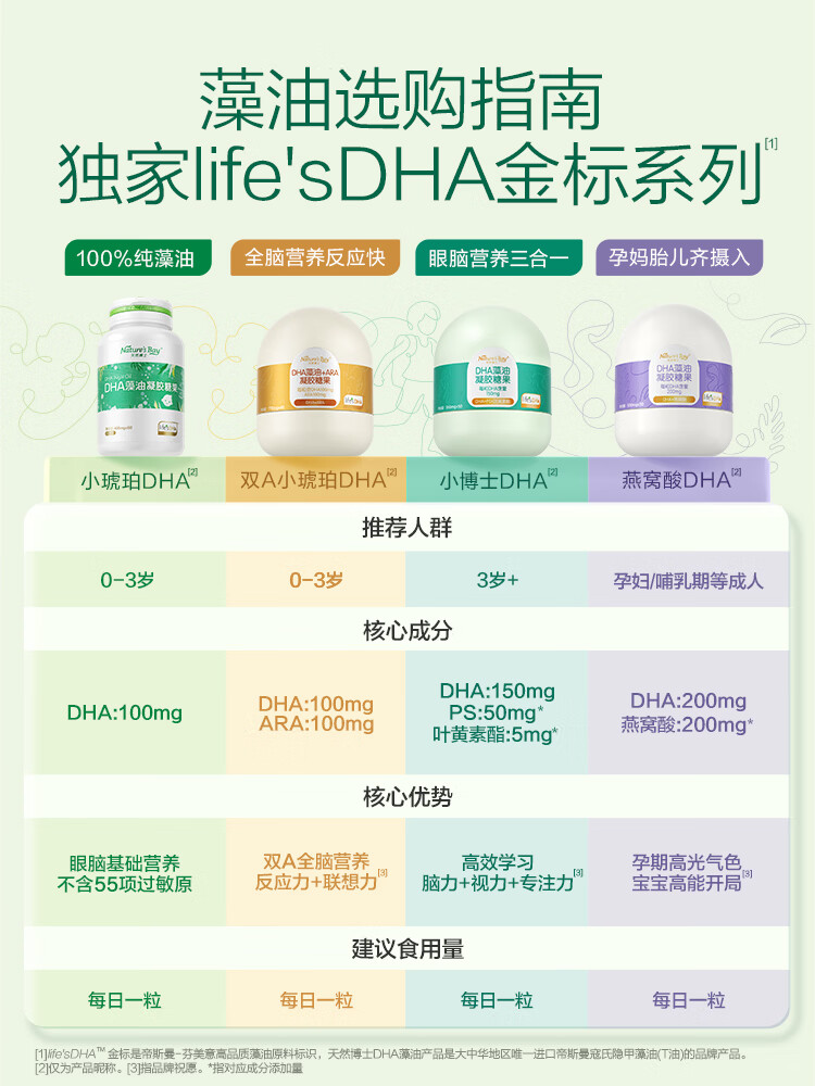 Natural Doctor Little Amber DHA Algae Oil DHA Infants, Children, Adults Edible Gold Label Algae Oil for Eye and Brain Nutrition Popular Gift Box Gold Label Algae Oil 180 capsules*1 box