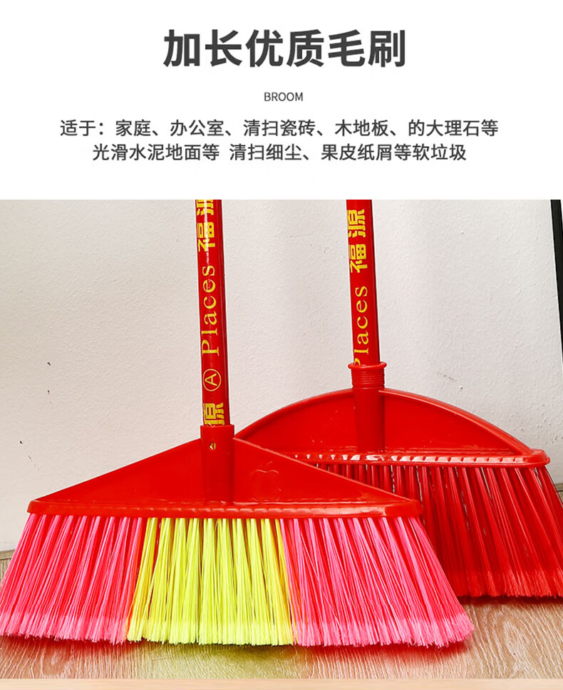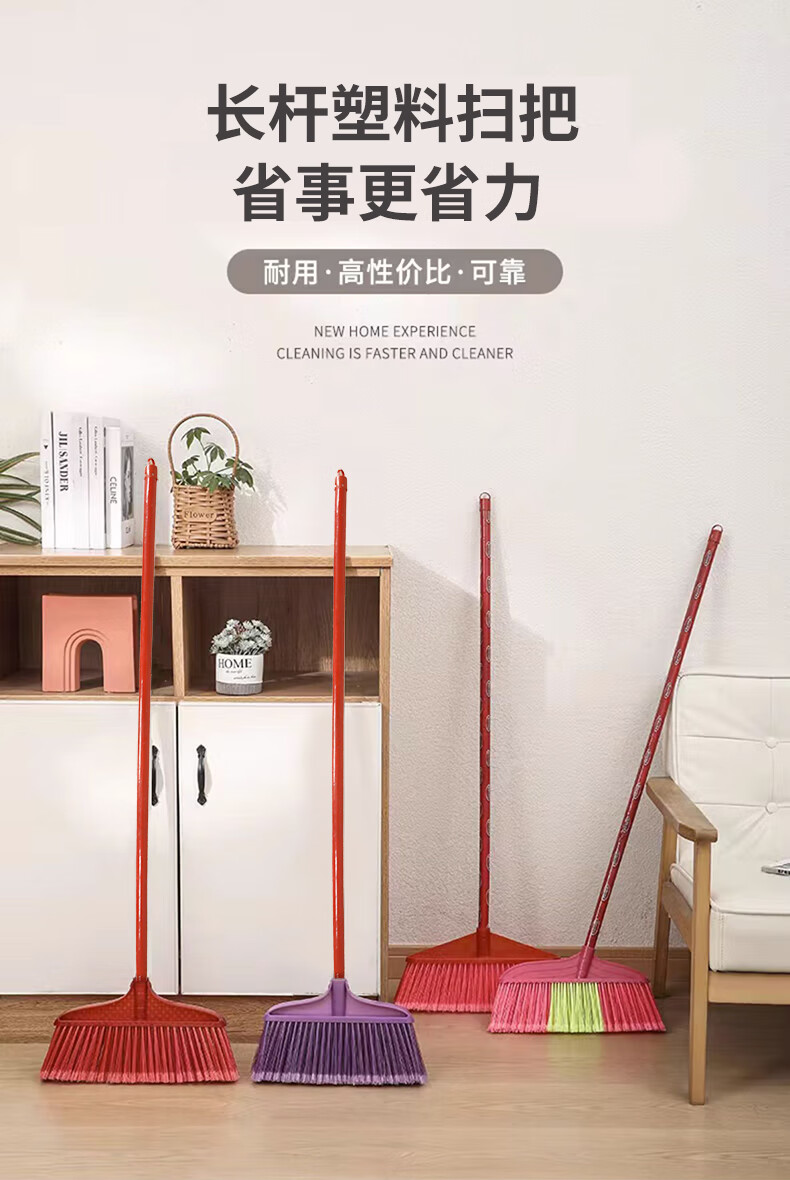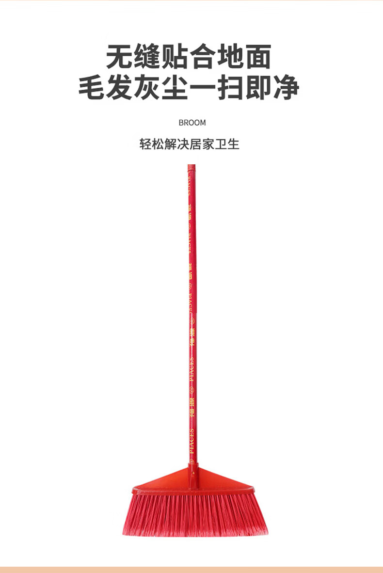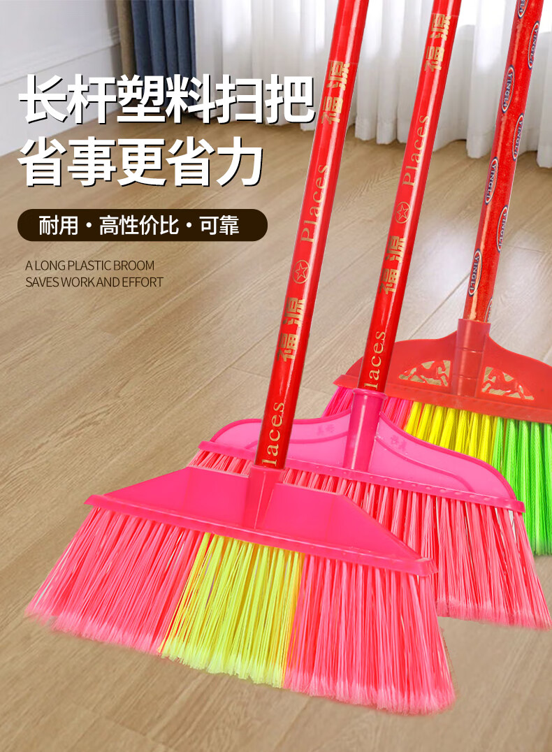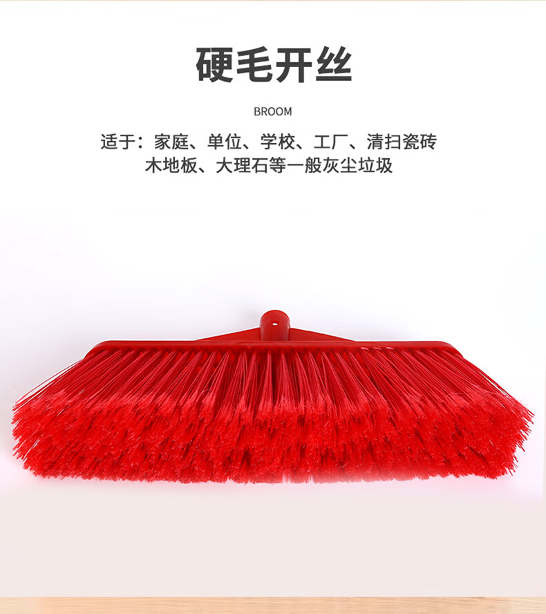 Yigongding hard-bristle plastic broom, outdoor sanitation property cleaning broom, sweeping broom, square head, four rows of wired bristles (with wooden handle)