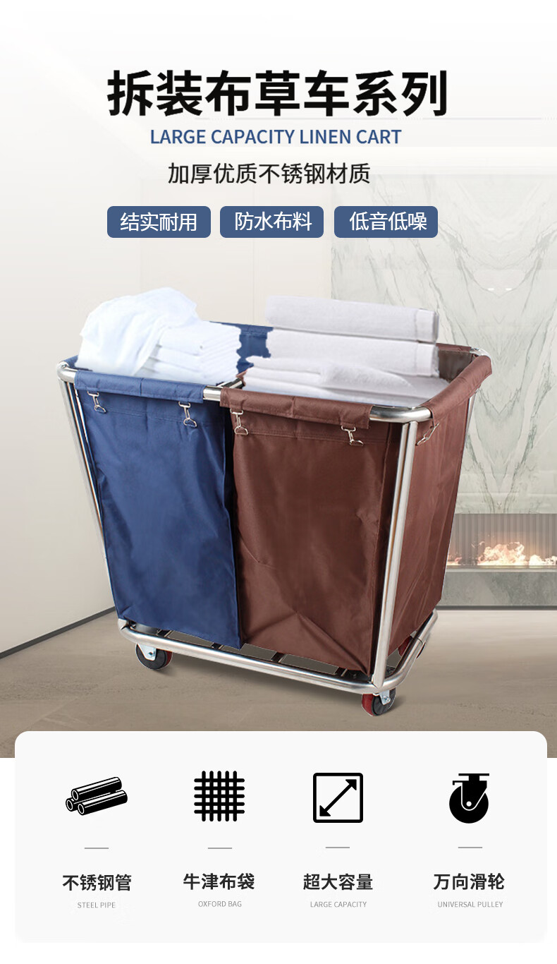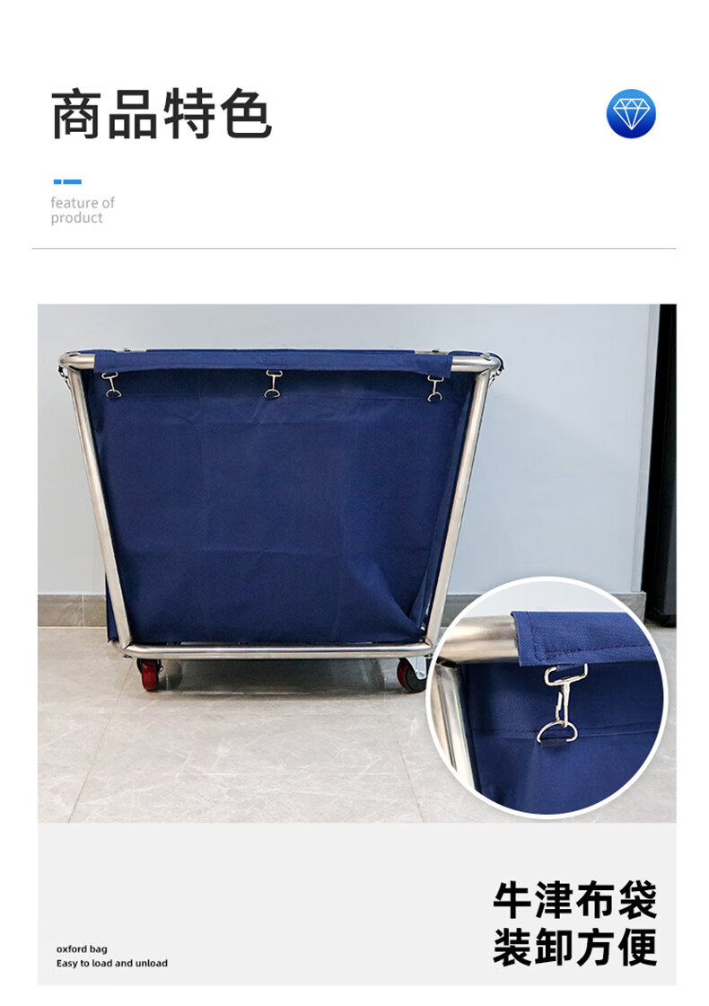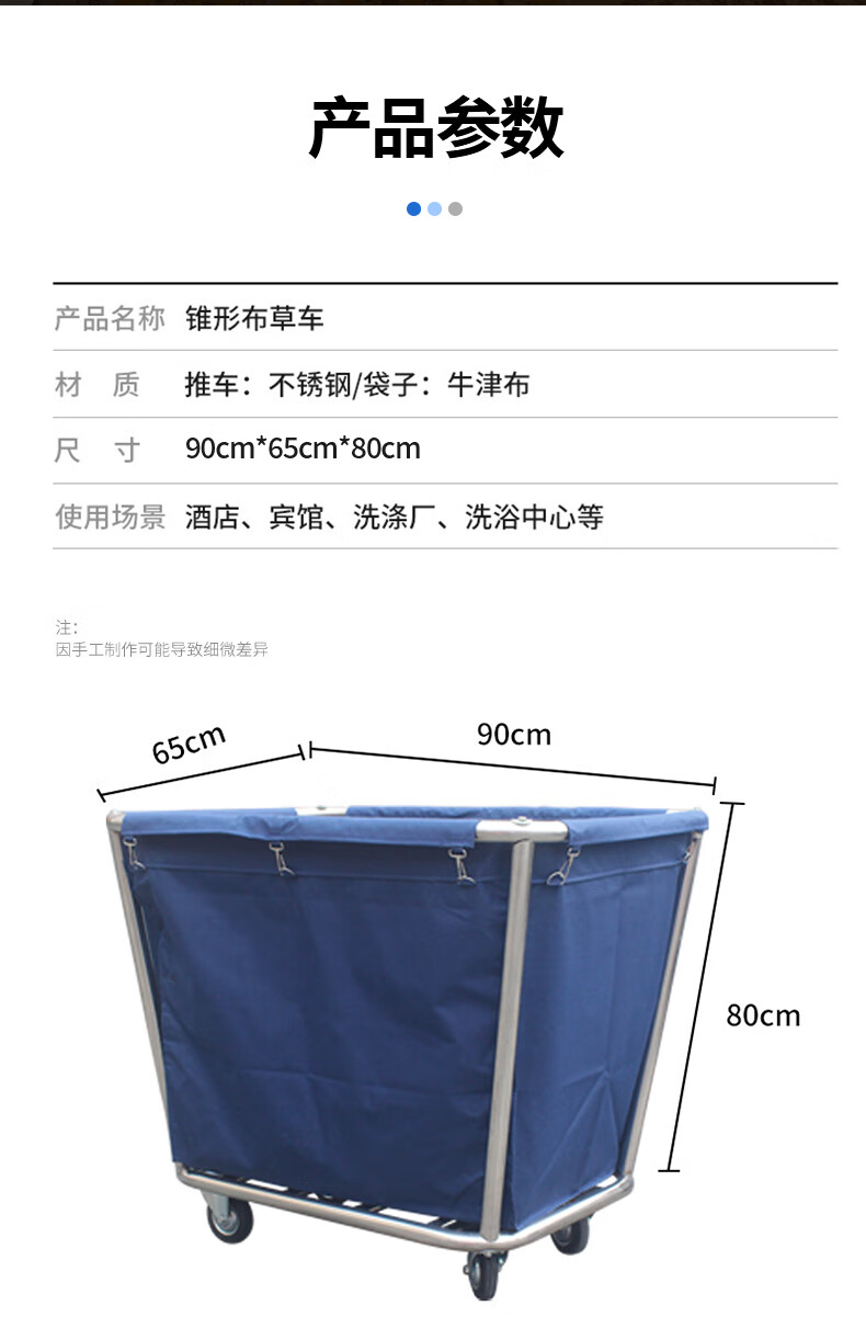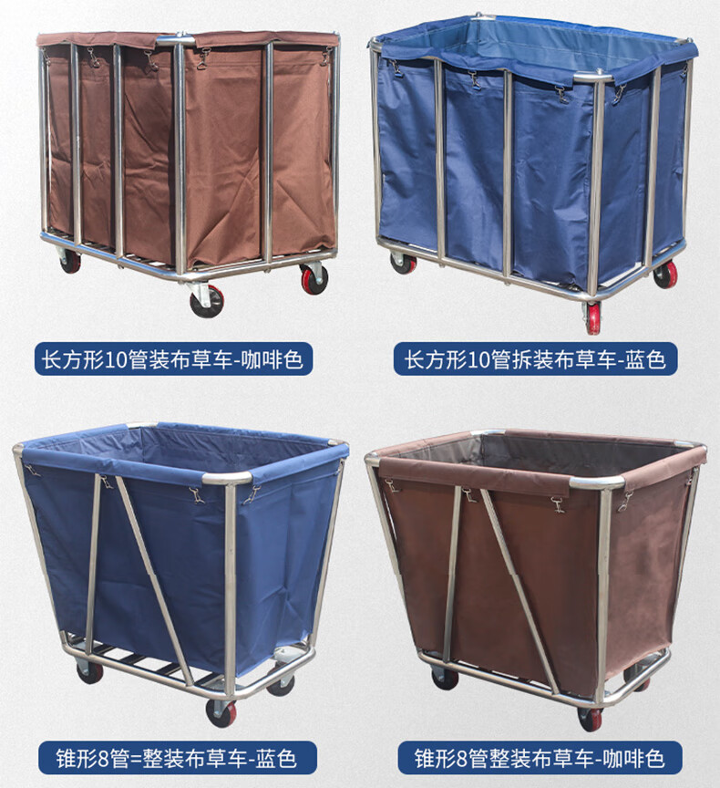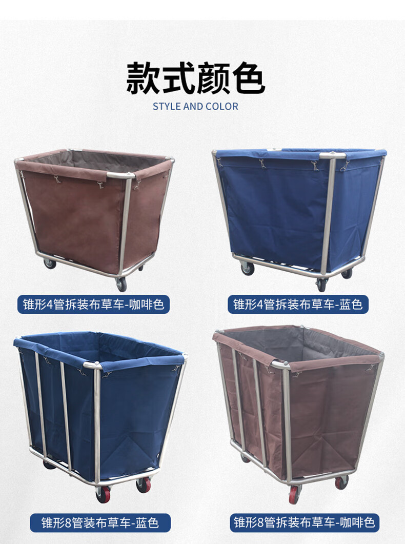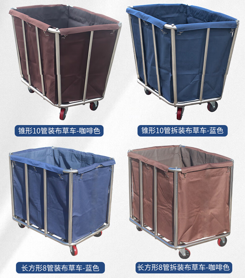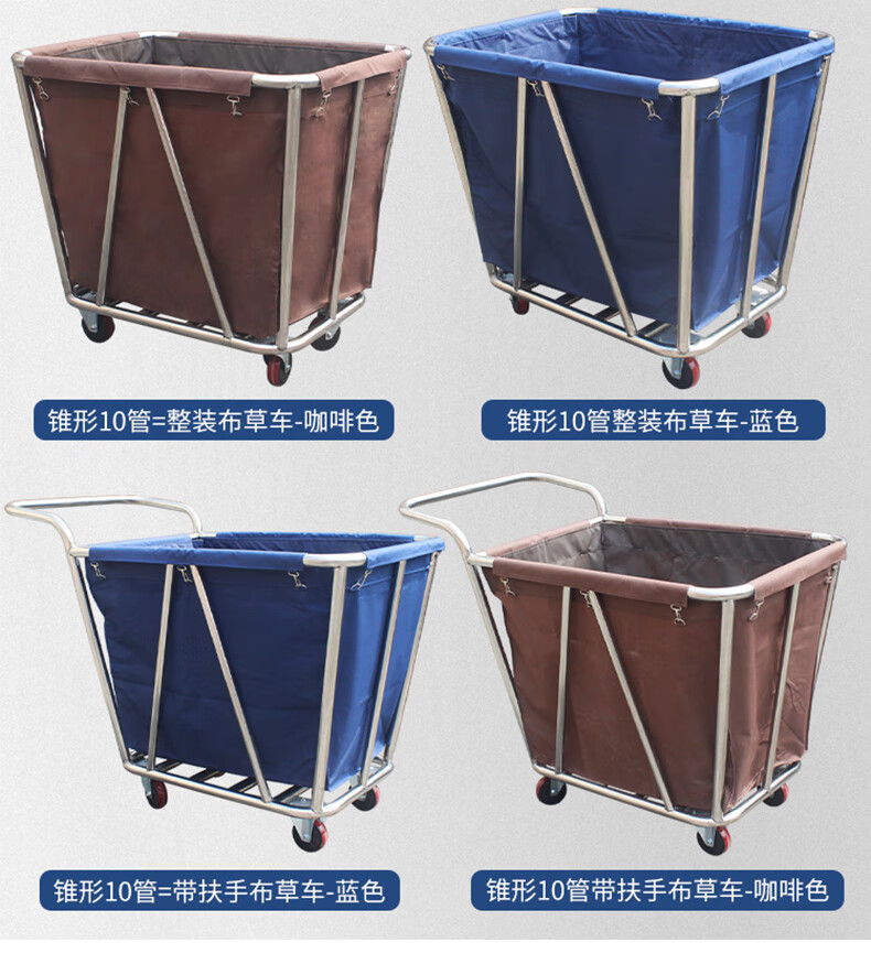 Yigongding cone-shaped linen cart hotel room multi-functional stainless steel service cart cleaning cleaning work cart laundry room recycling cart disassembly 4-tube blue