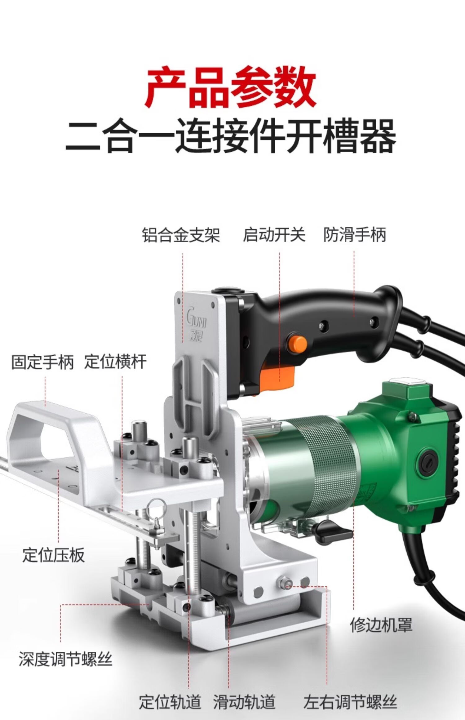 Minxi two-in-one slotter connector invisible piece slotting machine woodworking trimming machine slotting bracket opening artifact abrasive tool aluminum alloy + positioning crossbar + gift