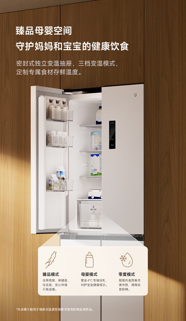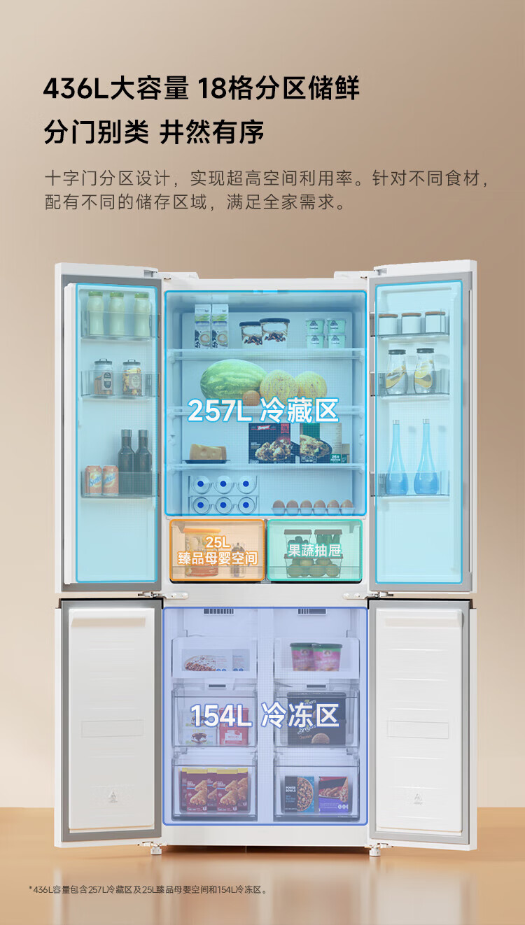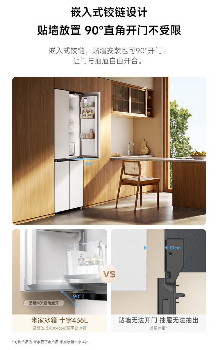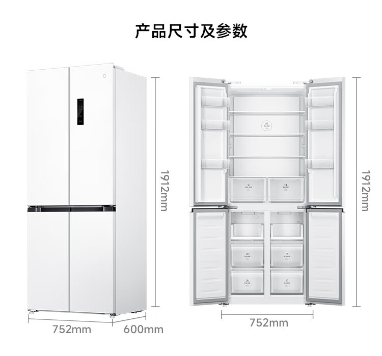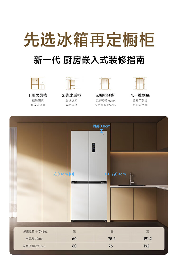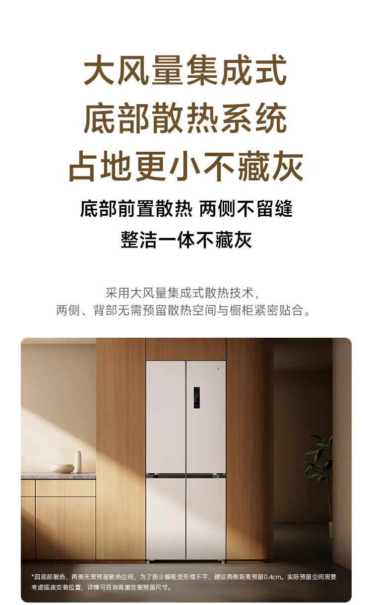 Xiaomi (MI) Mijia 436L cross-door four-door 60cm ultra-thin flat-embedded zero-embedded large-capacity household refrigerator first-class energy-efficiency silver ion sterilization trade-in BCD-436WMBI Mijia refrigerator separate fresh storage cross 436L