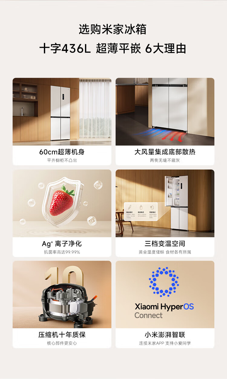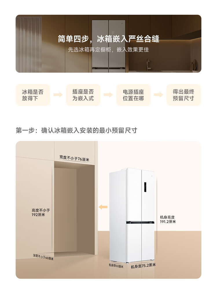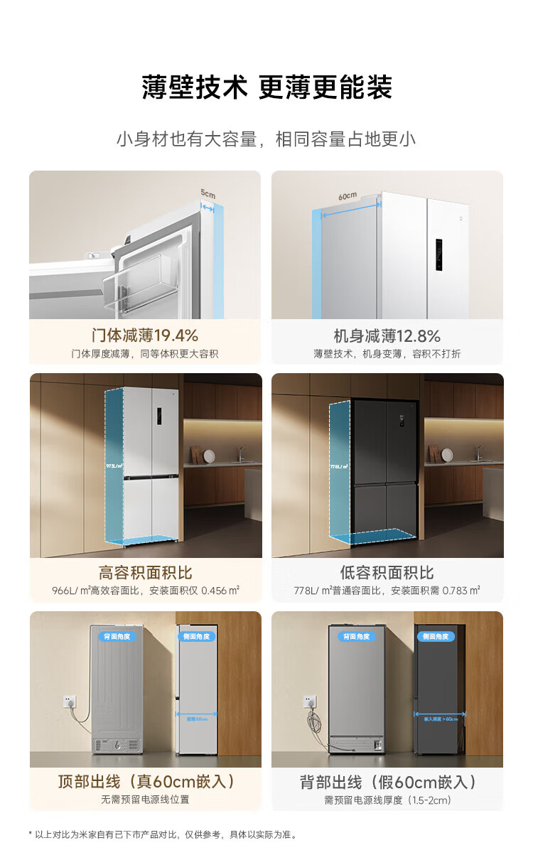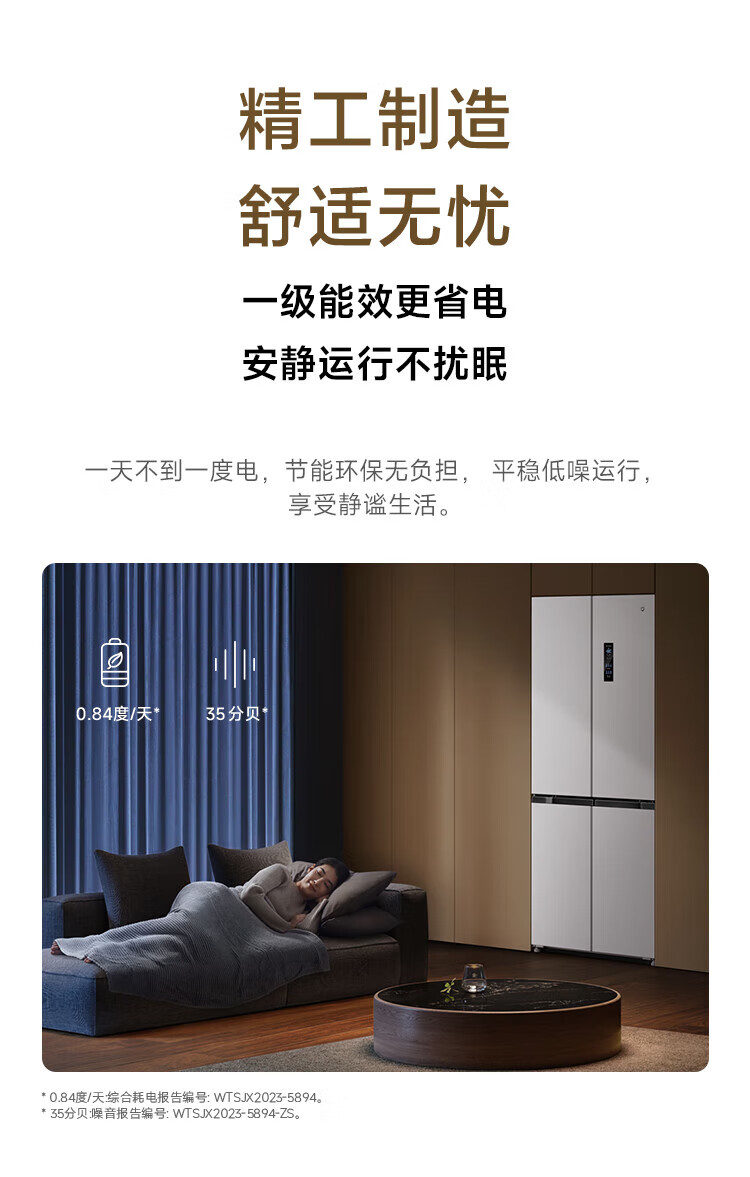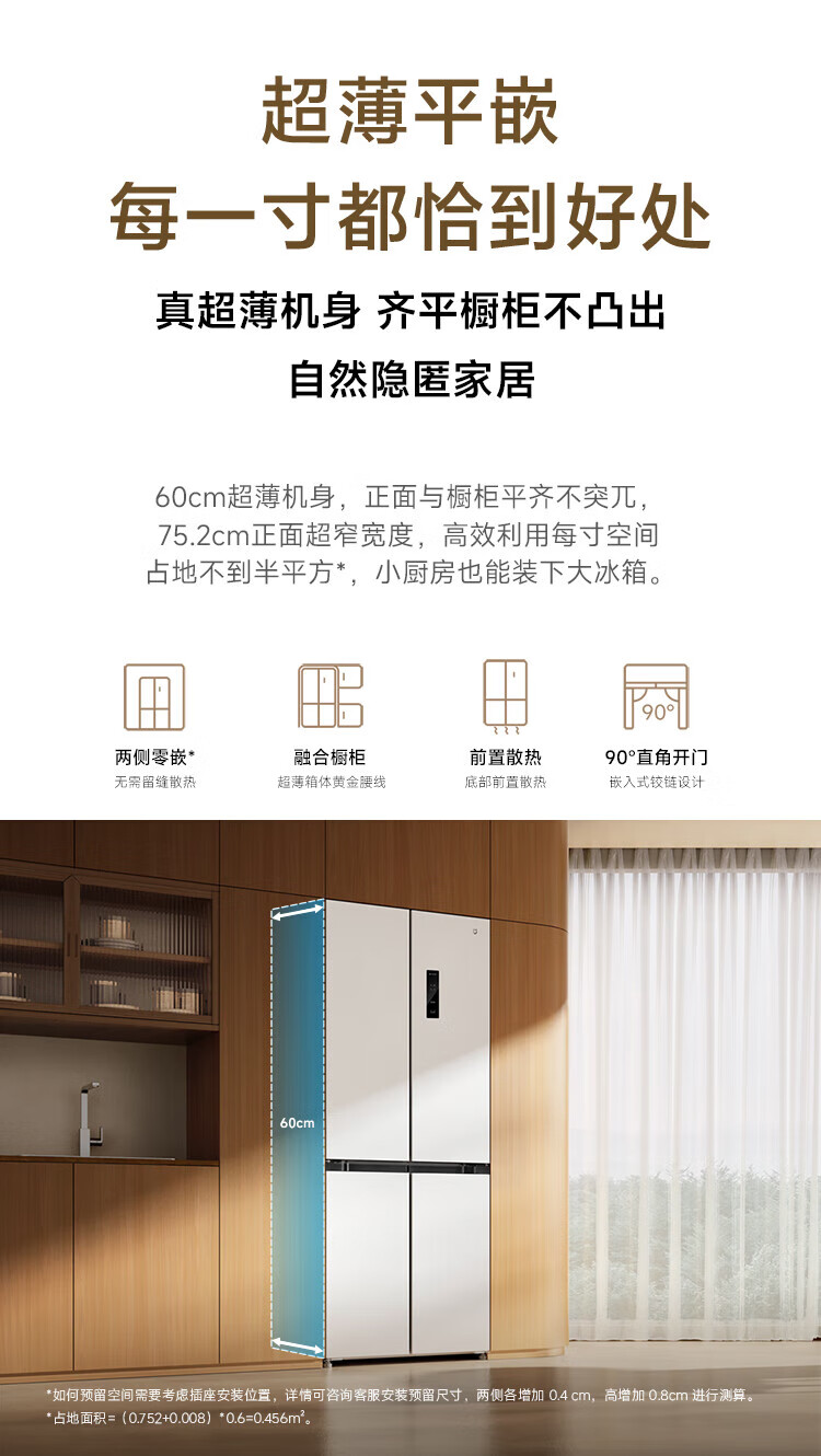 Xiaomi (MI) Mijia 436L cross-door four-door 60cm ultra-thin flat-embedded zero-embedded large-capacity household refrigerator first-class energy-efficiency silver ion sterilization trade-in BCD-436WMBI Mijia refrigerator separate fresh storage cross 436L