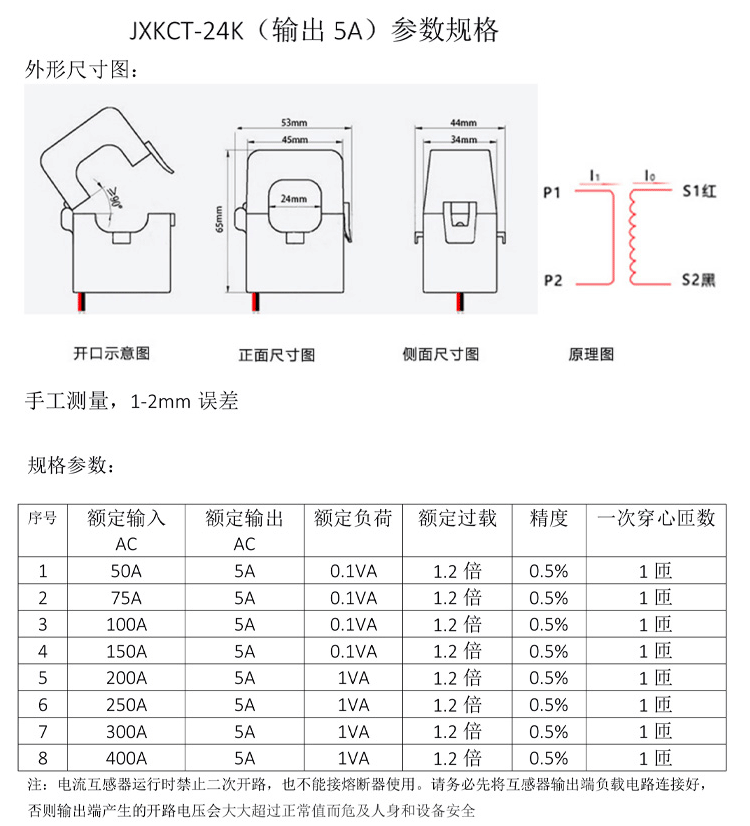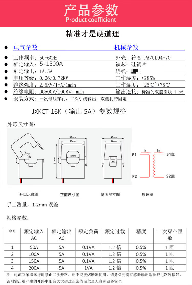 Open/buckle/open and close three-phase AC ammeter small KCT24/36 open current transformer 0.5 level JXKCT16 100A/5A