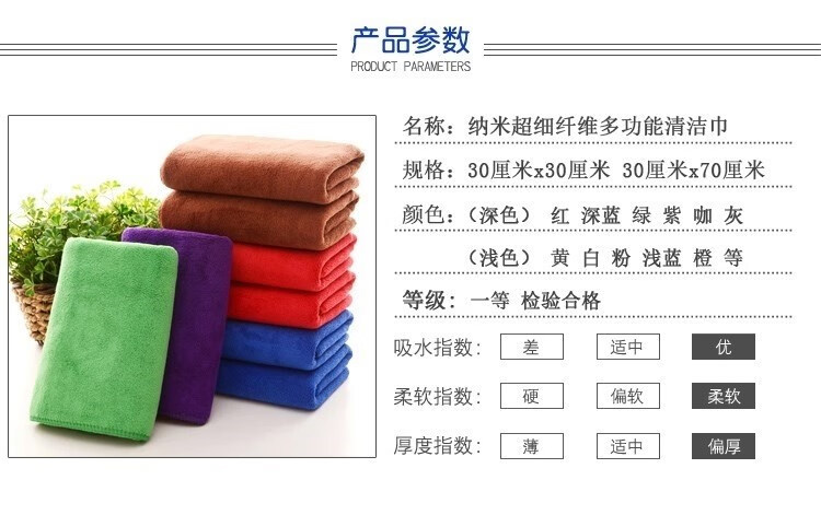 Five-color rags for hotel rooms, housekeeping cleaning, special hotel lint-free towels, glass wiping cloths, 30x30 medium thick, dark blue, 10 pack