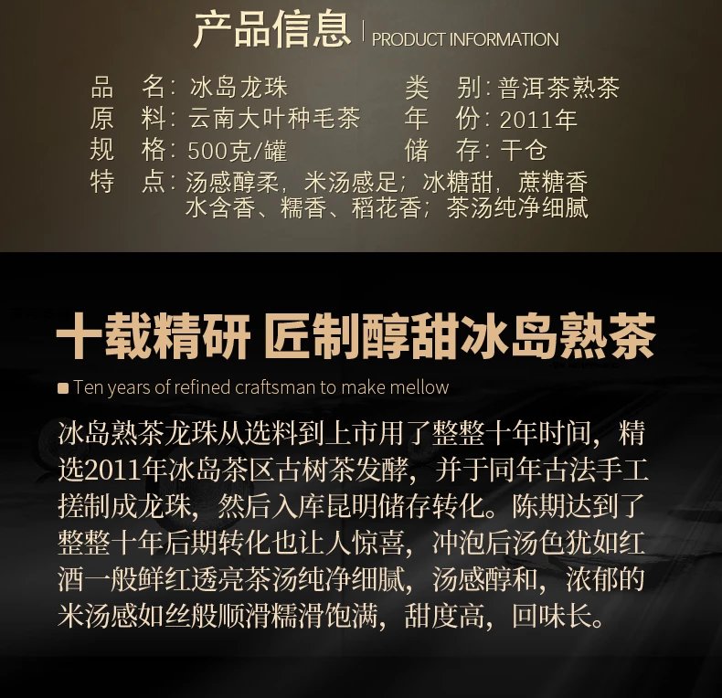 Yanhai Tea Ripe Tea 2011 Lincang Icelandic Ancient Tree Pure Ingredients Ripe Tea Dragon Ball 500g Canned 500g