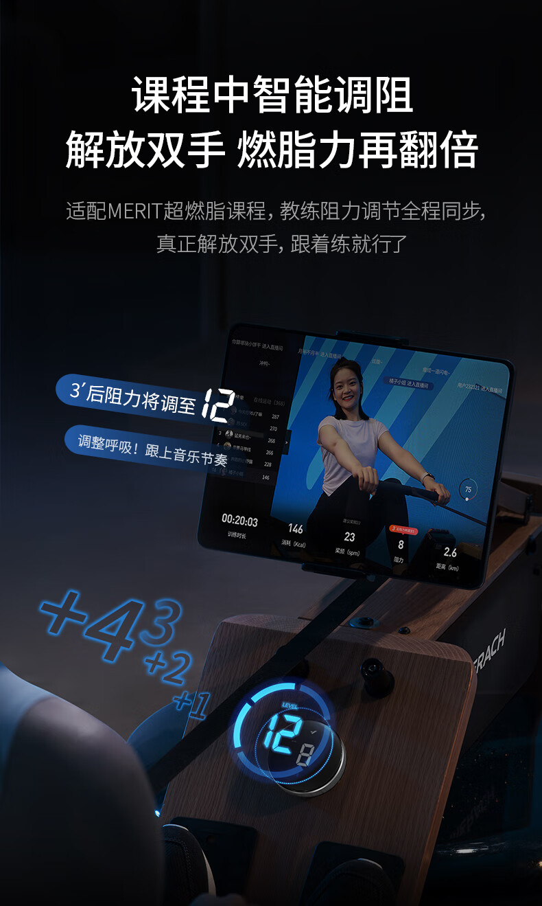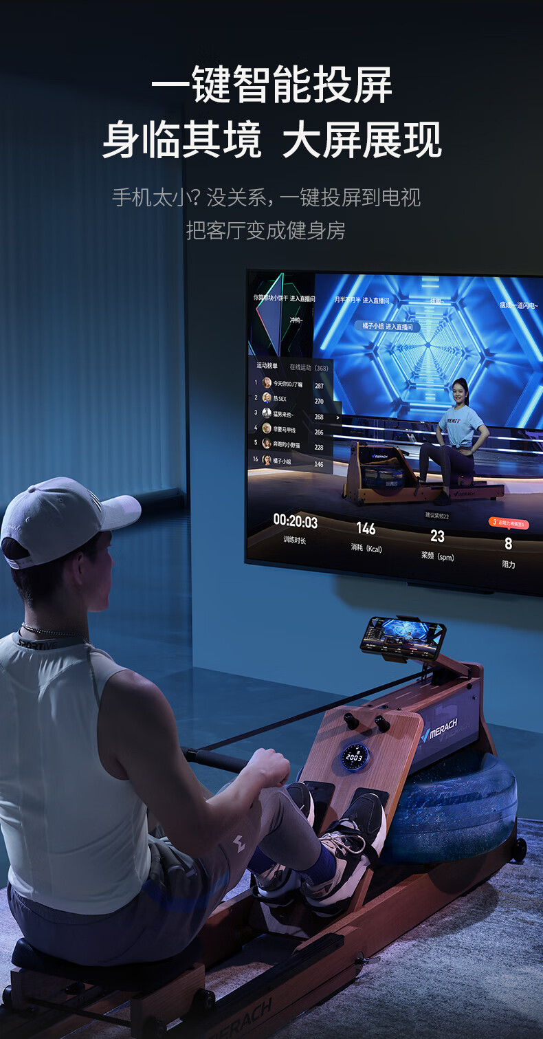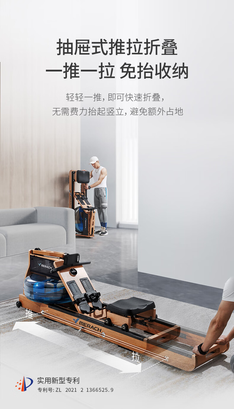 MERACH Rowing Machine Home Water Resistance Magnetic Control Intelligent Adjustment Fitness Equipment Indoor Exercise 950 Plug-in/Folding Version/Support HUAWEI HiLink