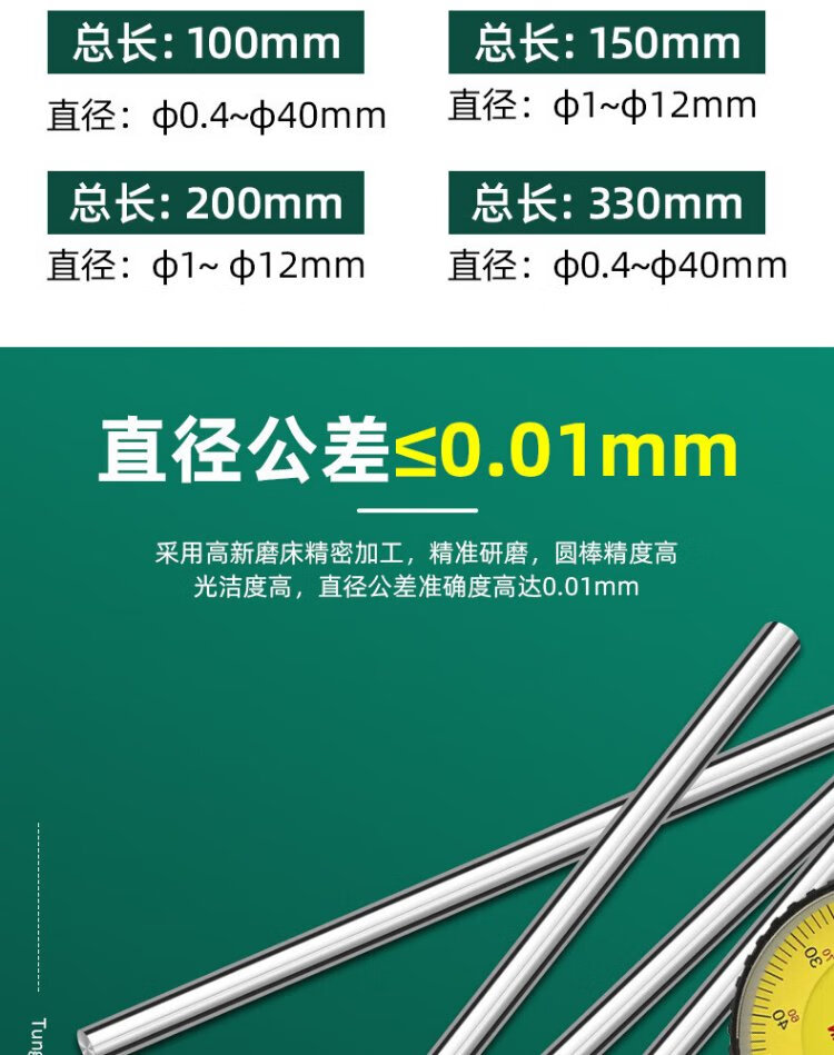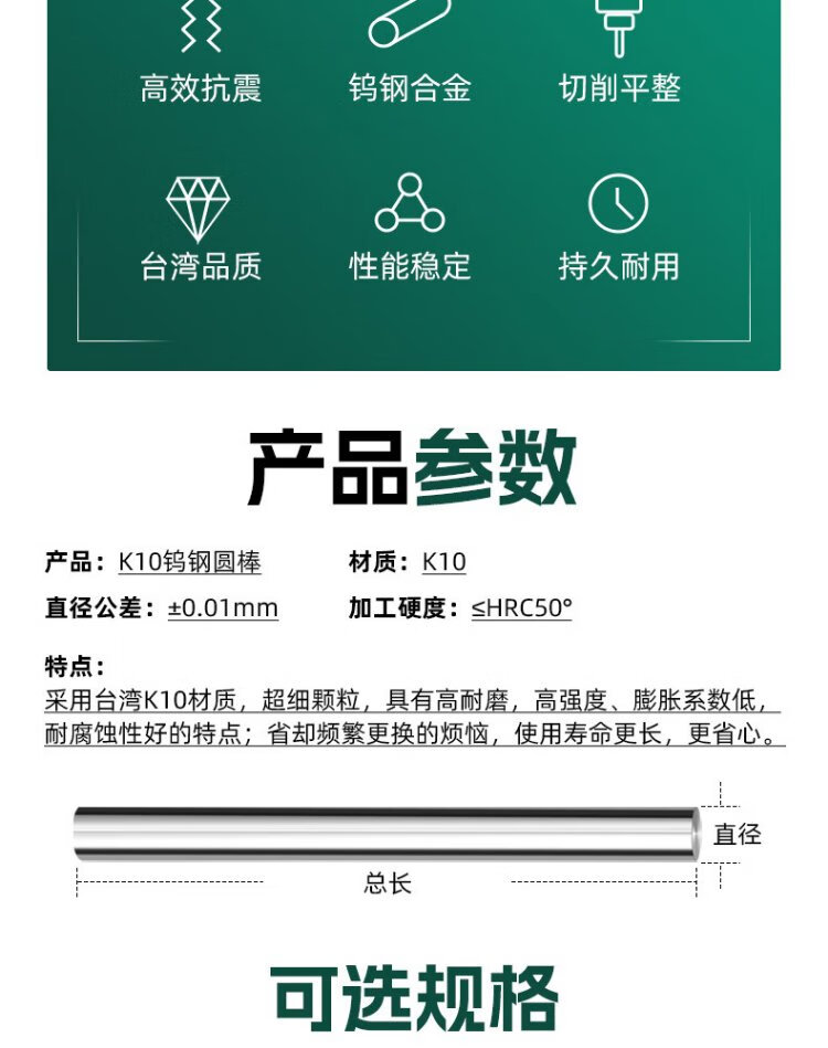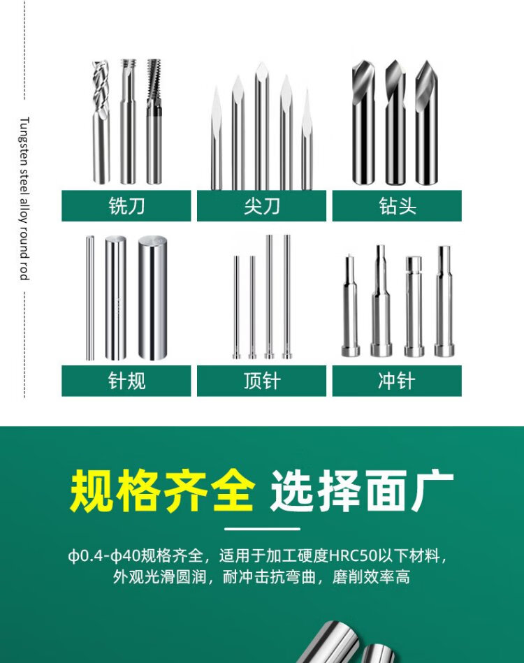 Non-standard K10 tungsten steel rod round rod diameter 0.4-40mm carbide rod length 100mm precision ground alloy rod 16*100-K10 Taiwan model