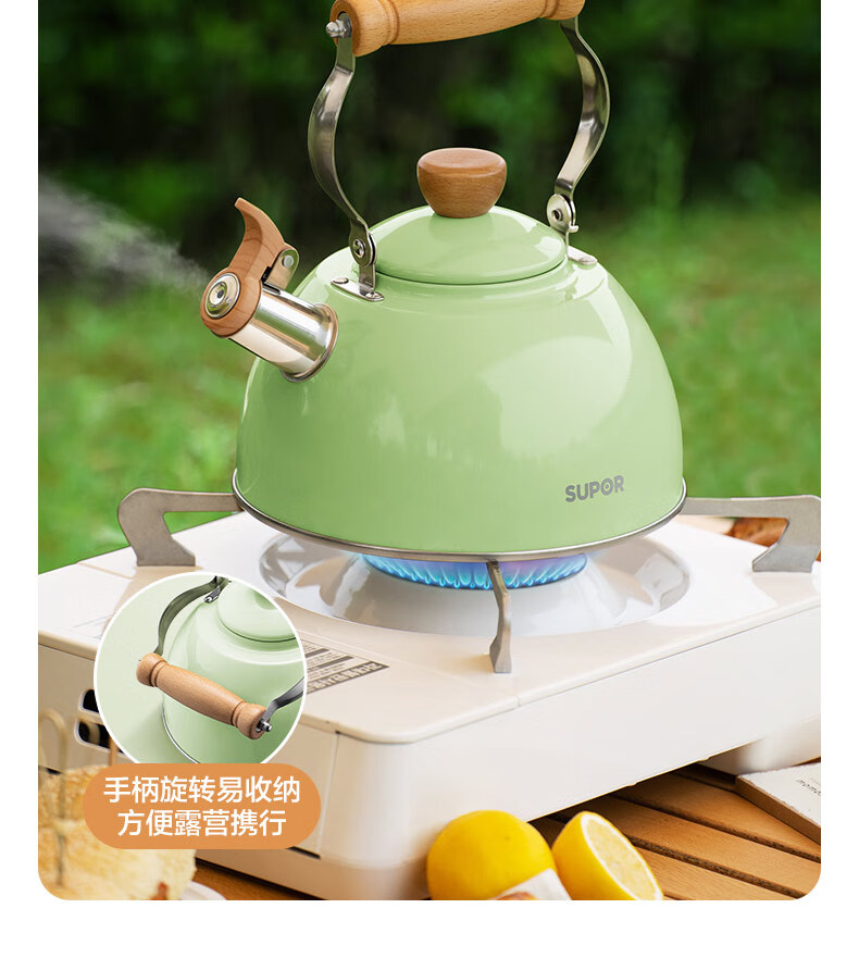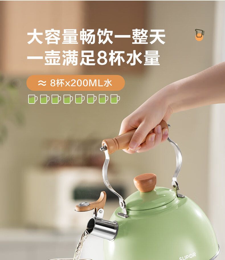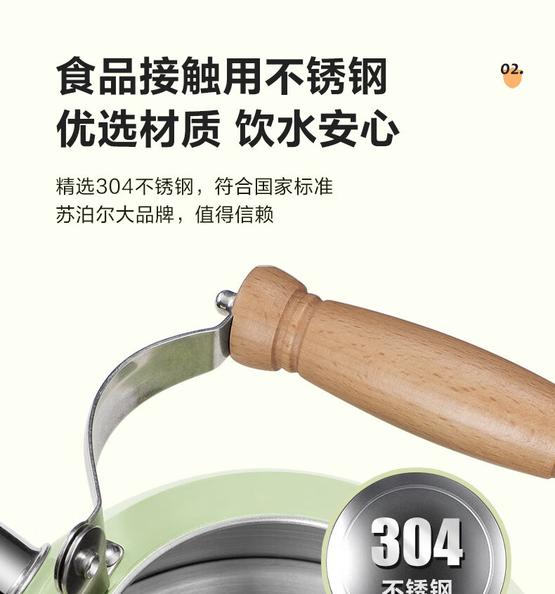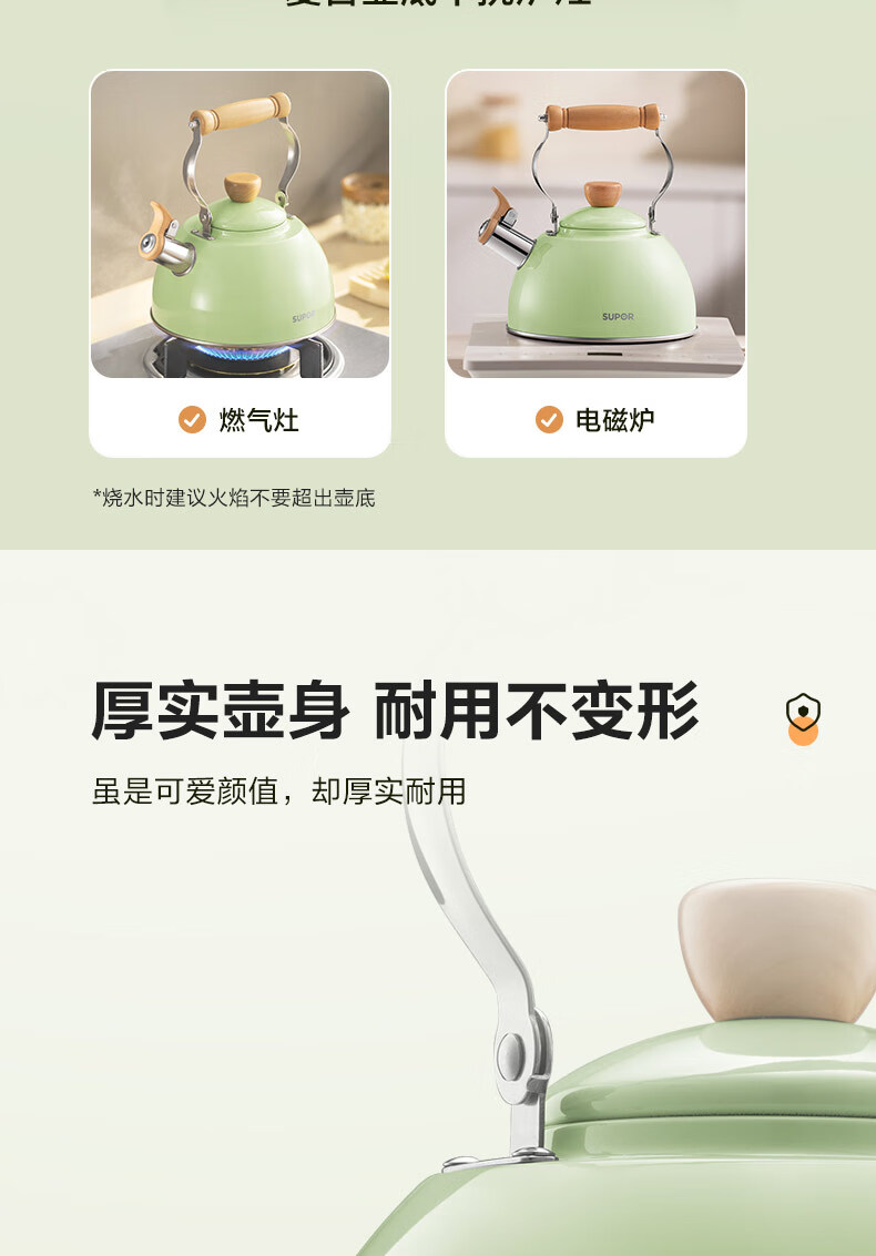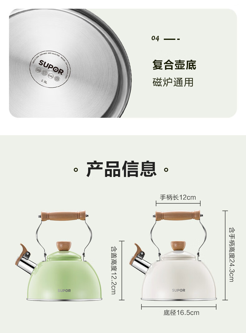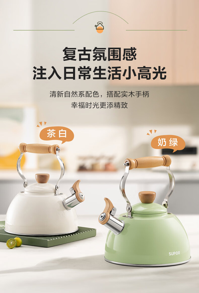Supor kettle household 304 stainless steel large capacity thickened whistle hot kettle gas stove induction cooker universal white 2.5L