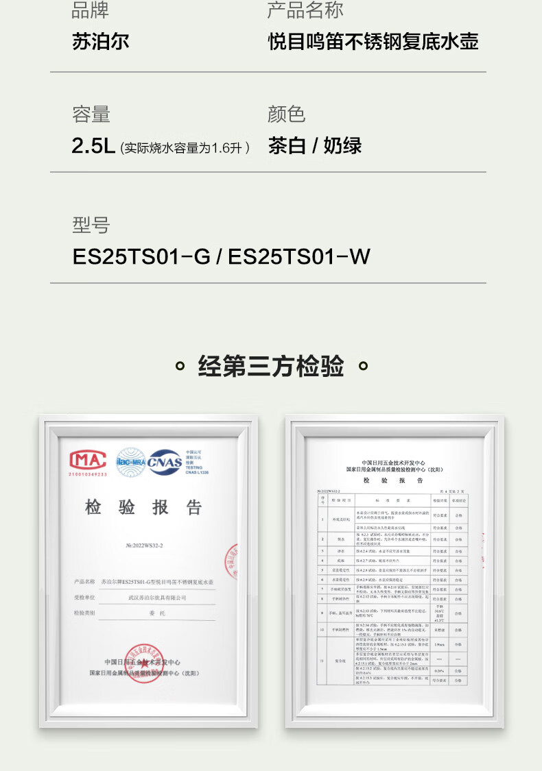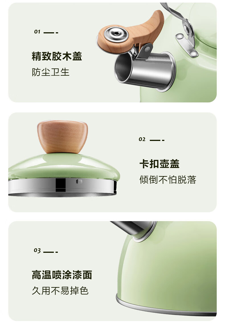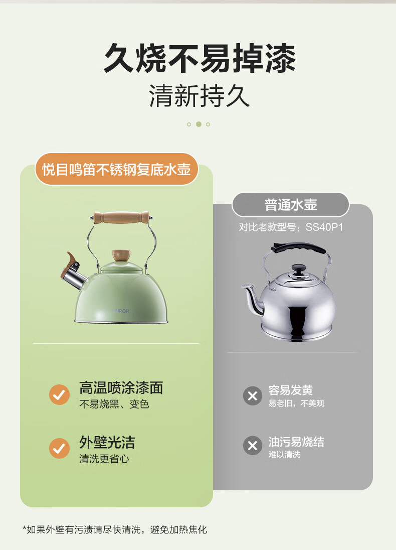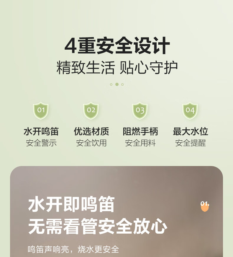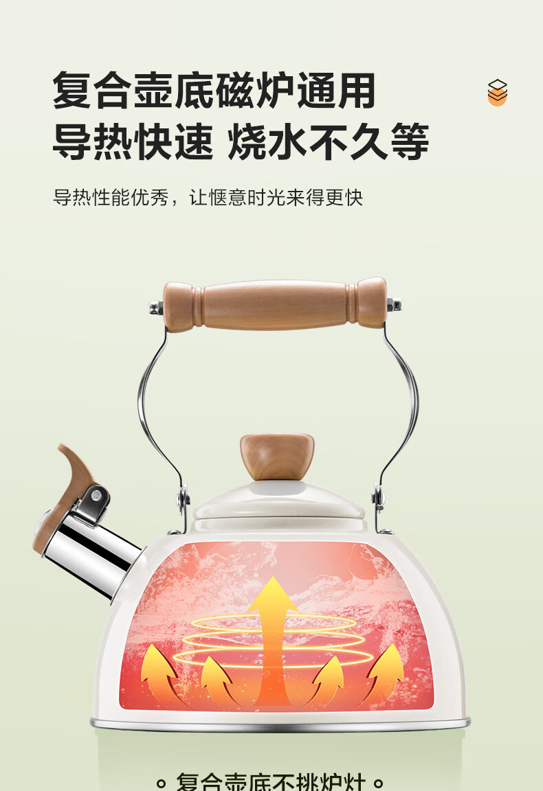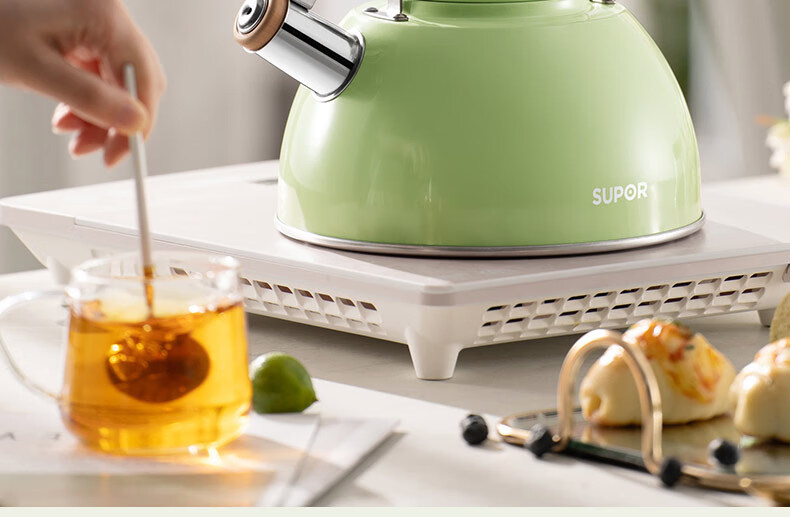 Supor kettle household 304 stainless steel large capacity thickened whistle hot kettle gas stove induction cooker universal white 2.5L