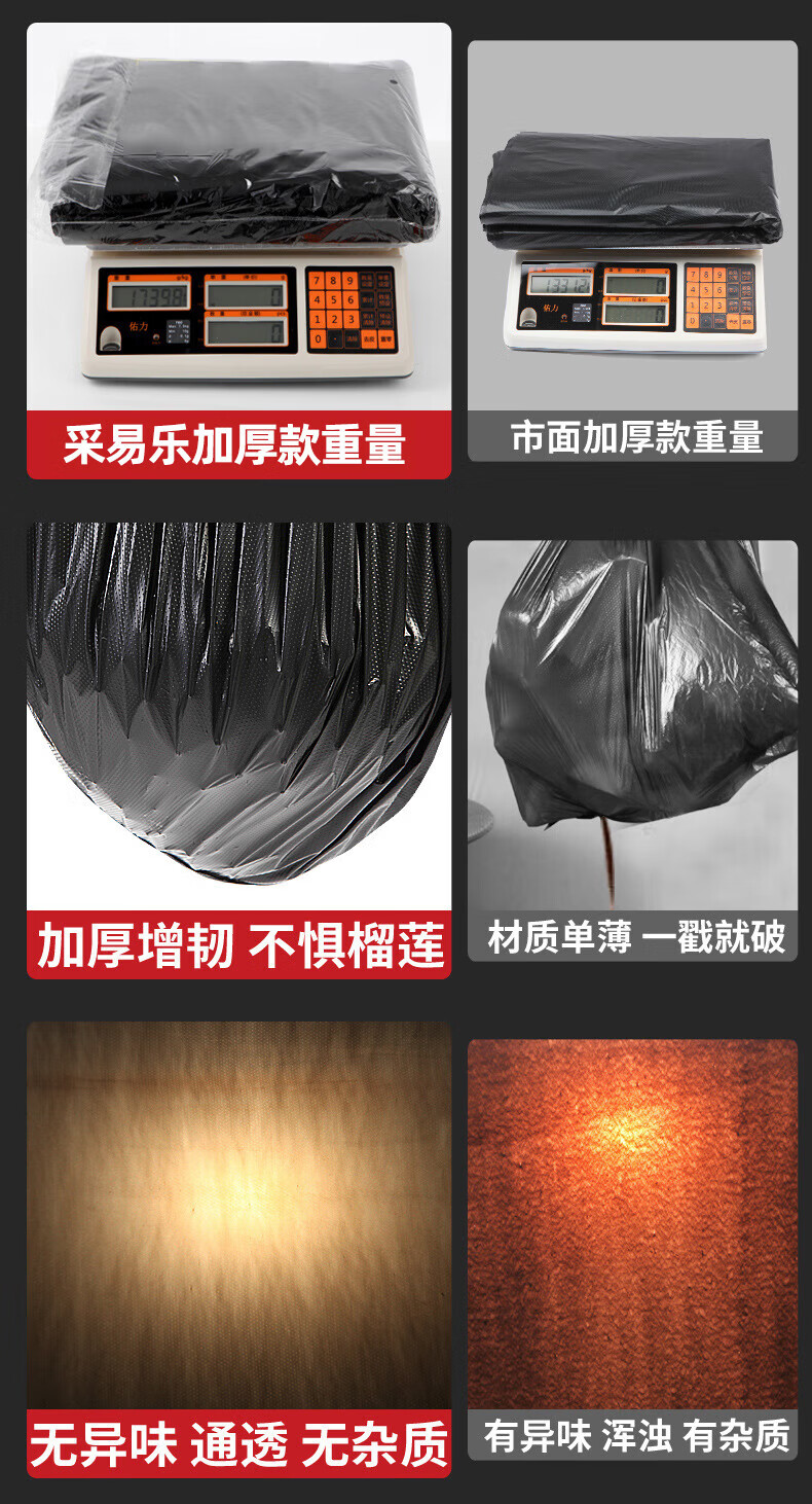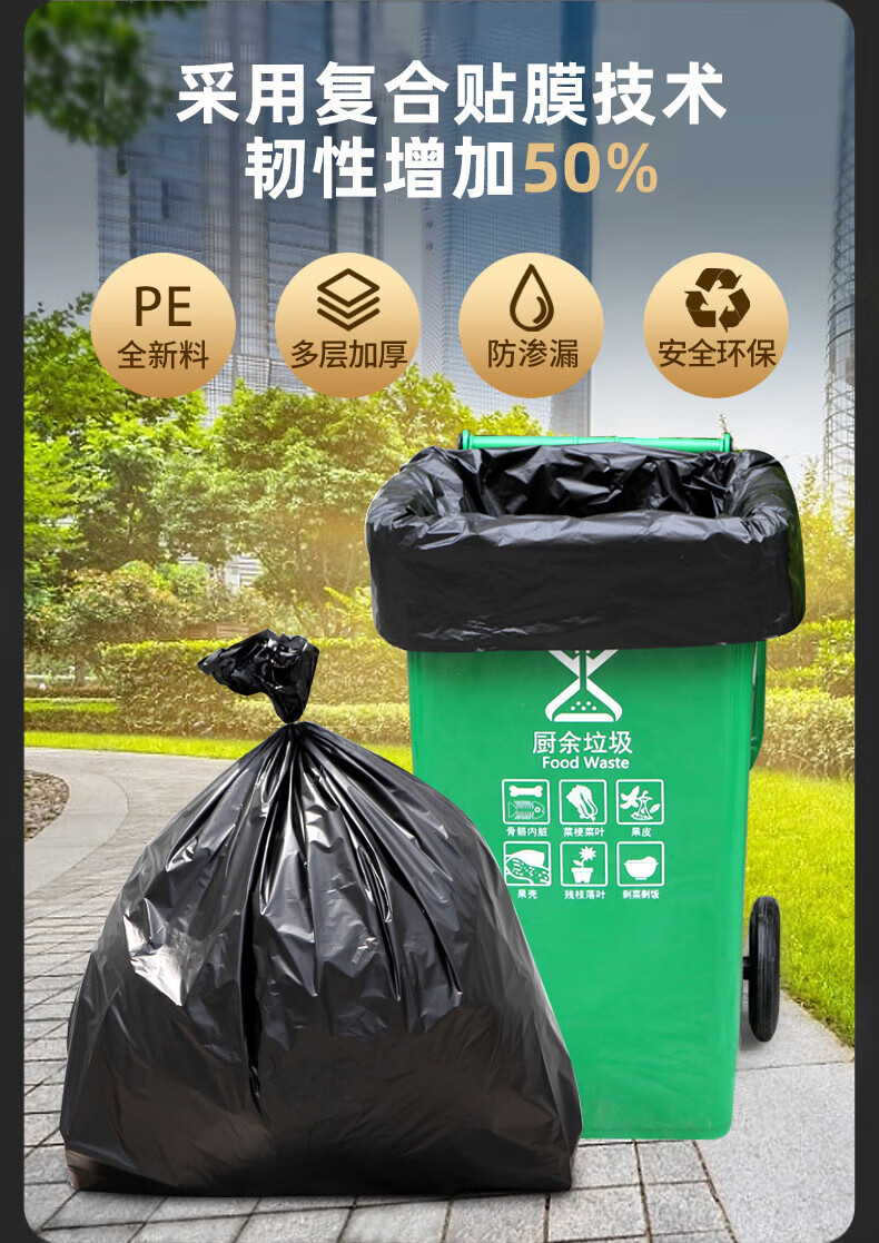 Yigongding extra large garbage bag commercial property hotel sanitation thickened black flat mouth large trash can bag 60*80cm*50 pieces (3.2 silk)