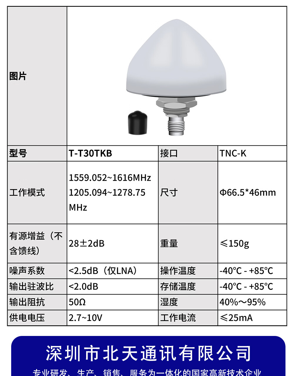 Beitian external GNSS antenna GPS Beidou robot instrument equipment base station timing positioning T-T30TKB T-T30TKB L1+L2 frequency band
