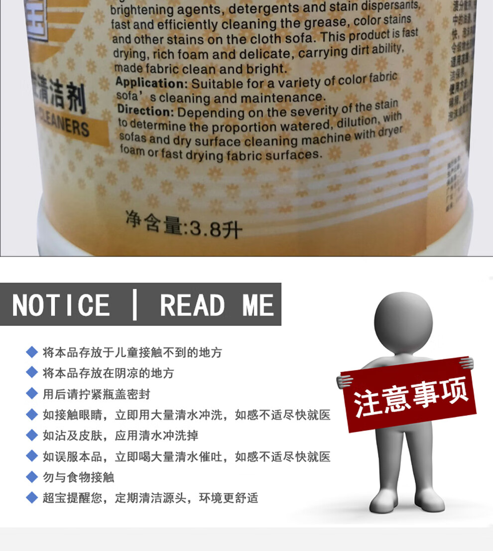 Chaobao Fabric Sofa Cleaner DFF033 Household Fabric Curtain Cleaner Hotel Shopping Mall Carpet Special Detergent 1 bottle of Chaobao Fabric Sofa Cleaner 3.8L