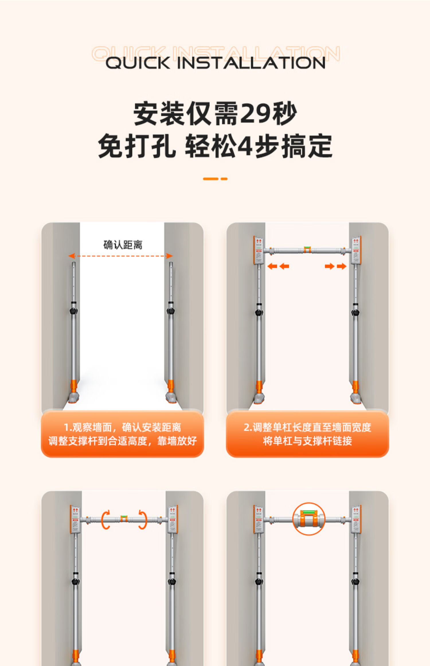 Mafeit suspension bar pull-up device indoor horizontal bar floor-to-ceiling door home fitness equipment punch-free boom 114-150cm wall distance installation-tenth generation