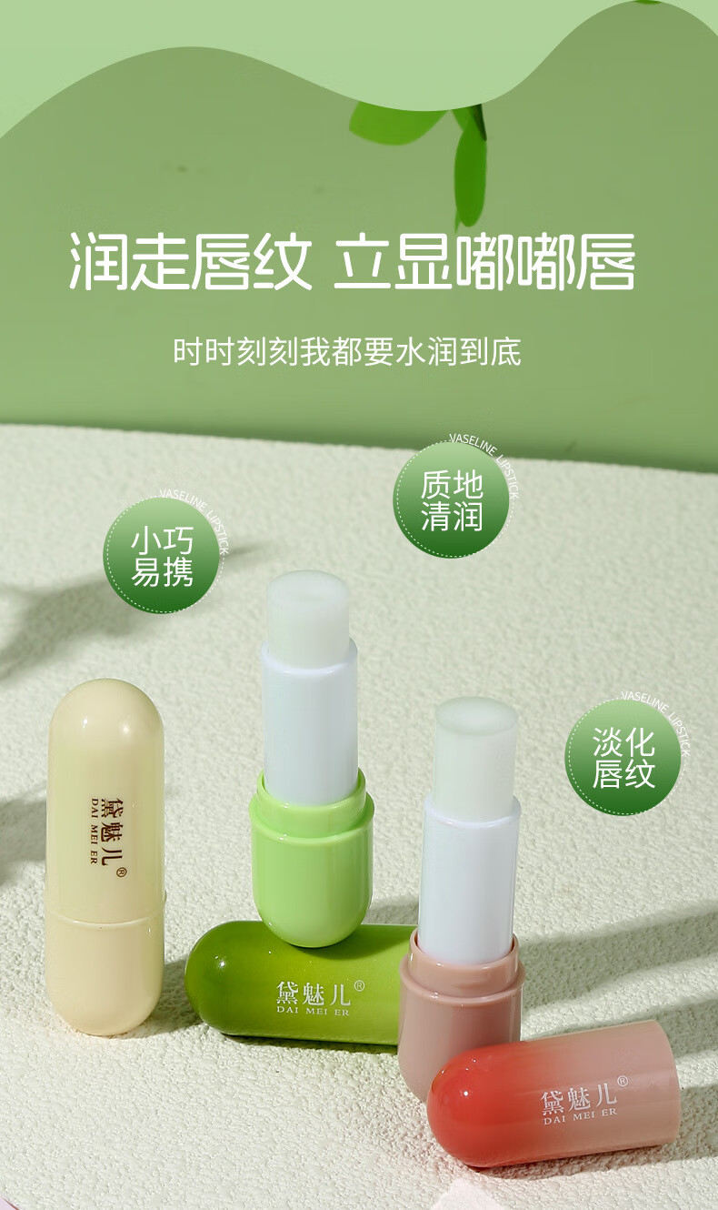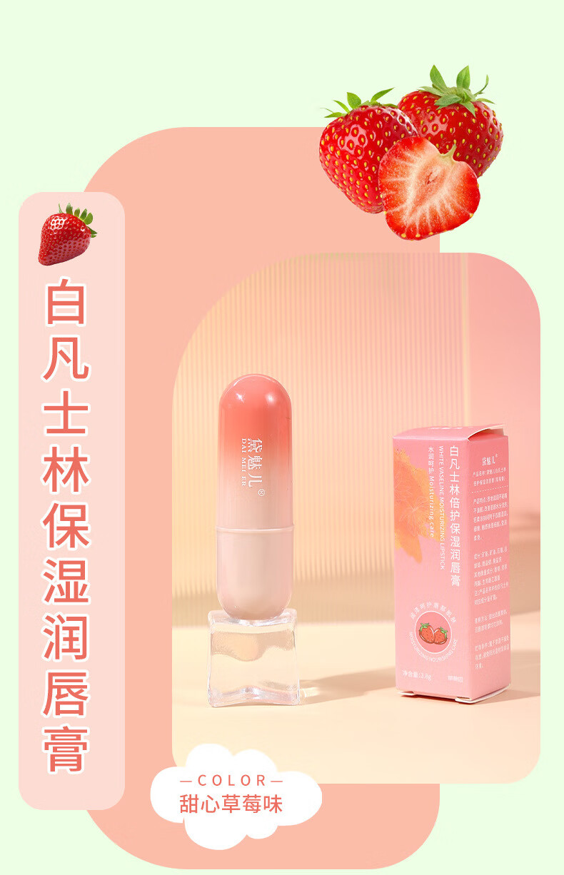 Daimeier Vaseline Hydrating Moisturizing Balm Women's Anti-chapped Peeling Exfoliation Light Lip Lines Colorless Lip Mask Link 1 Strawberry + Avocado Lipstick * 2 pieces Colorless + Fruity Fragrance