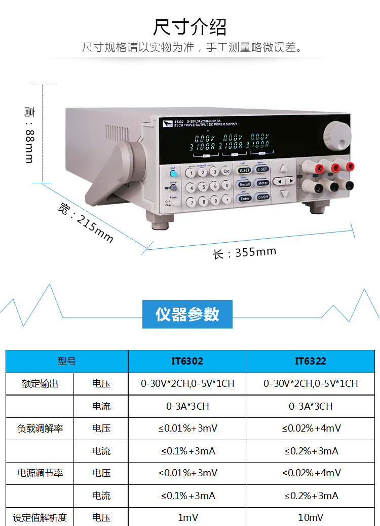 ITECH programmable DC regulated power supply three-channel adjustable program-controlled power supply three-channel independent channel IT6300 series IT6322 (30V/3A/90W)